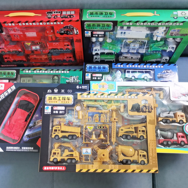 儿童工程车玩具套装回力消防车军事车环卫车模型礼盒地摊夜市批发