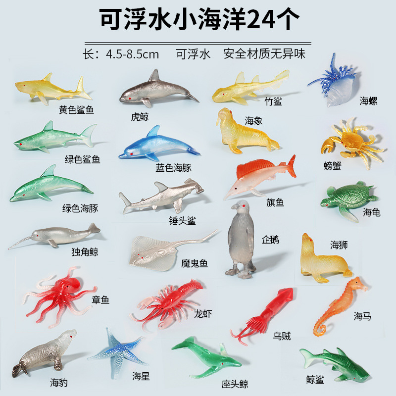 跨境仿真海洋动物玩具 鲨鱼乌龟螃蟹企鹅海洋馆模型 儿童科教配件