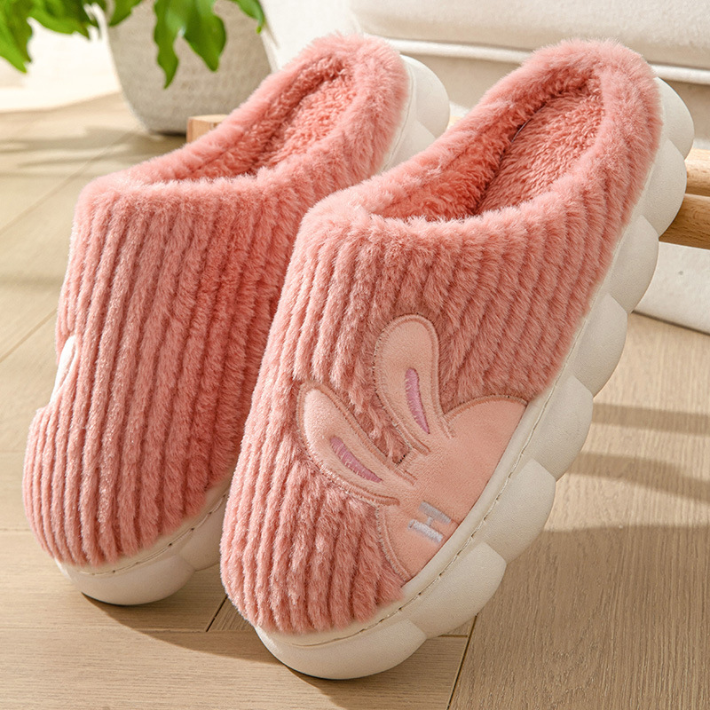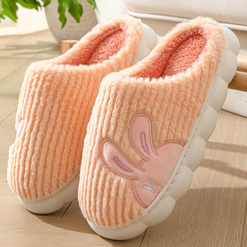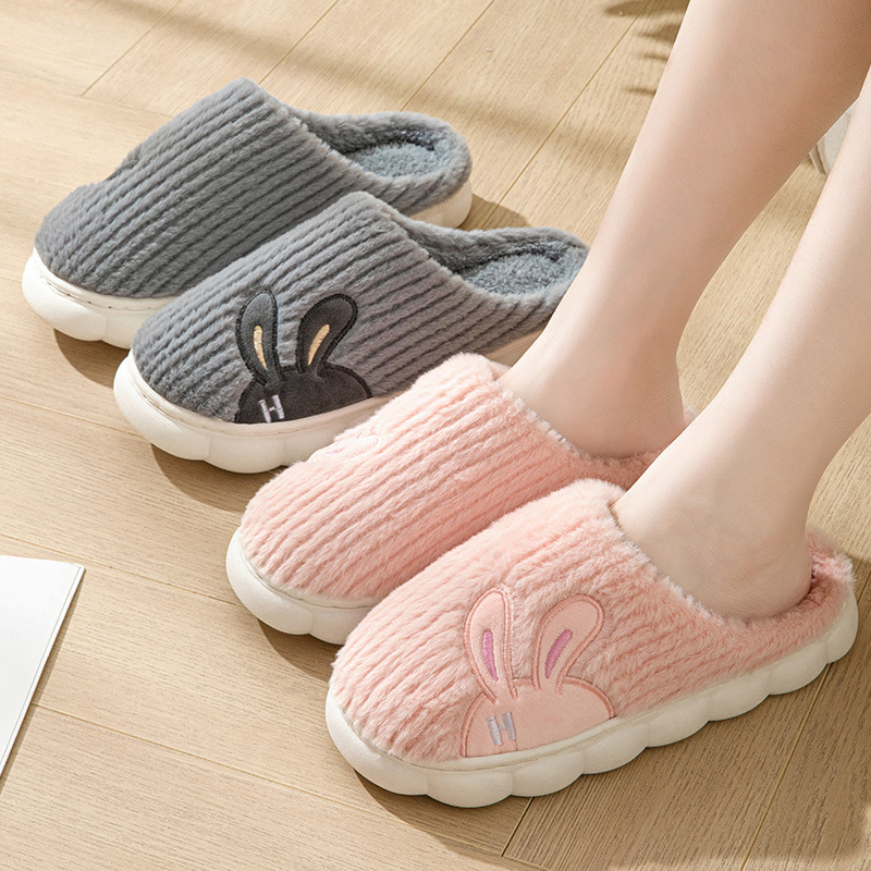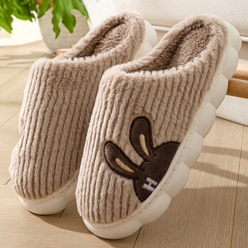 棉拖鞋女秋冬季月子室内家居家防滑厚底踩屎感毛毛绒保暖情侣男士