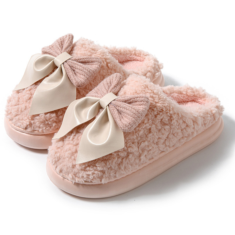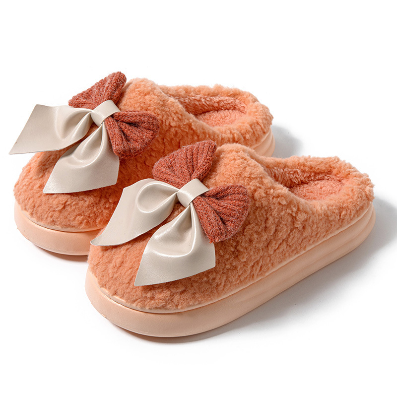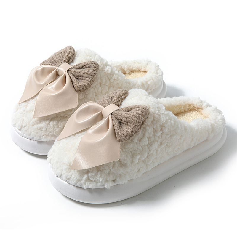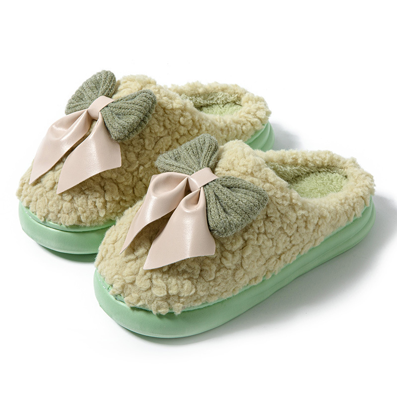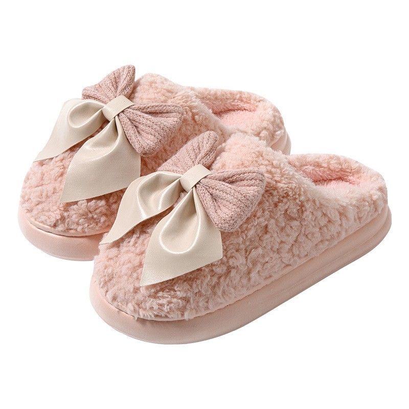 蝴蝶结踩屎感棉拖鞋女秋冬季厚底室内舒适轻便毛绒保暖毛托月子鞋