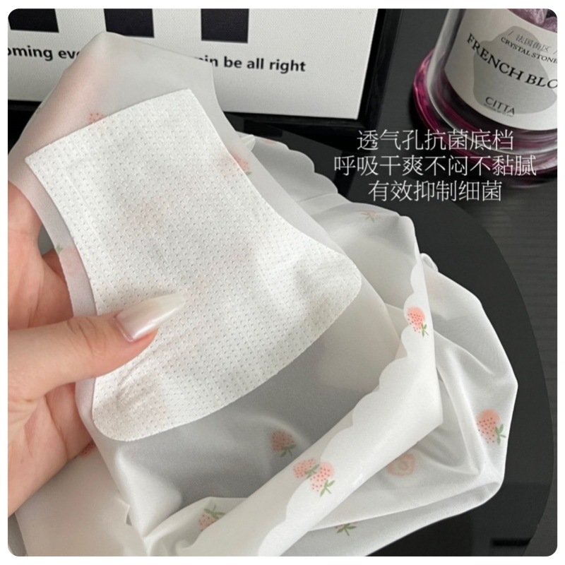 网红爆款冰丝超薄无痕一片式草莓内裤女士中腰舒适透气女生三角裤