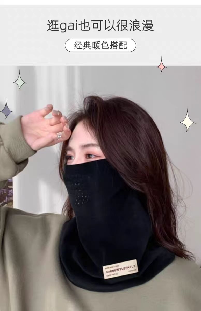 围脖女秋冬季围巾德绒保暖挂耳透气面罩一体骑行防寒护颈椎脖套男