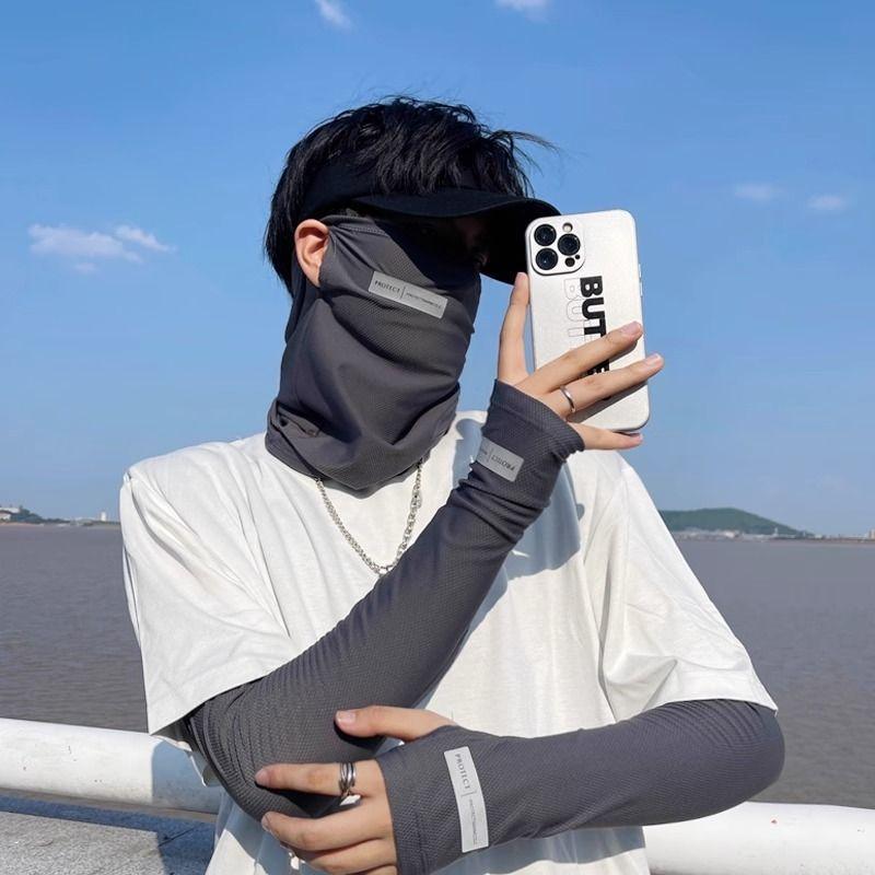 防晒面罩男夏遮全脸脖子男士口罩面纱骑行护颈男款冰丝围脖男遮阳