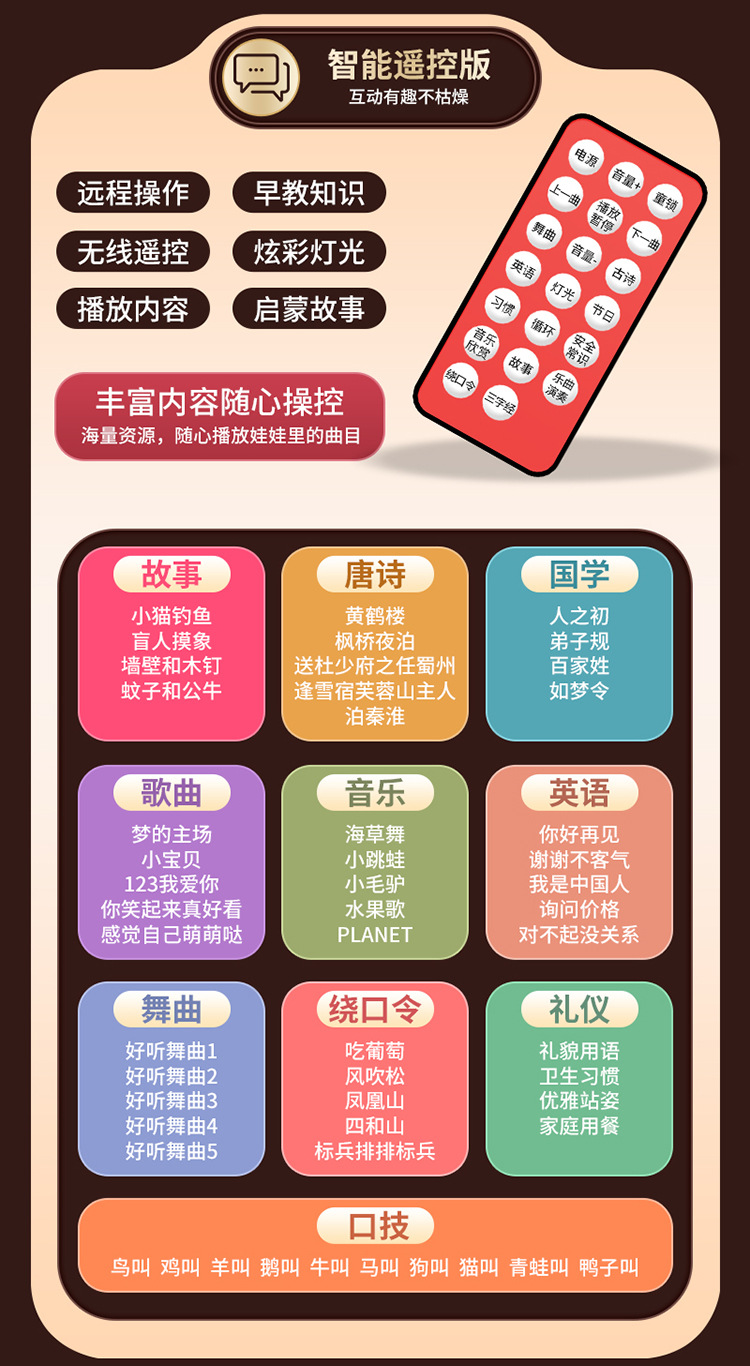 | music + remote control + blink + headdress + necklace + large gift box(音乐+遥控+眨眼+头饰+项链+大礼盒) | USD $11.65 | 99968 piece available |