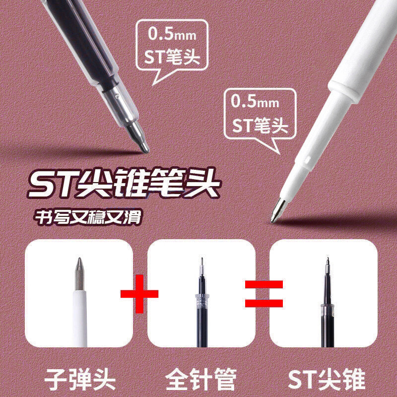 通用ST头笔芯刷题速干按动笔碳素黑杆葫芦头学生考试专用白杆批发