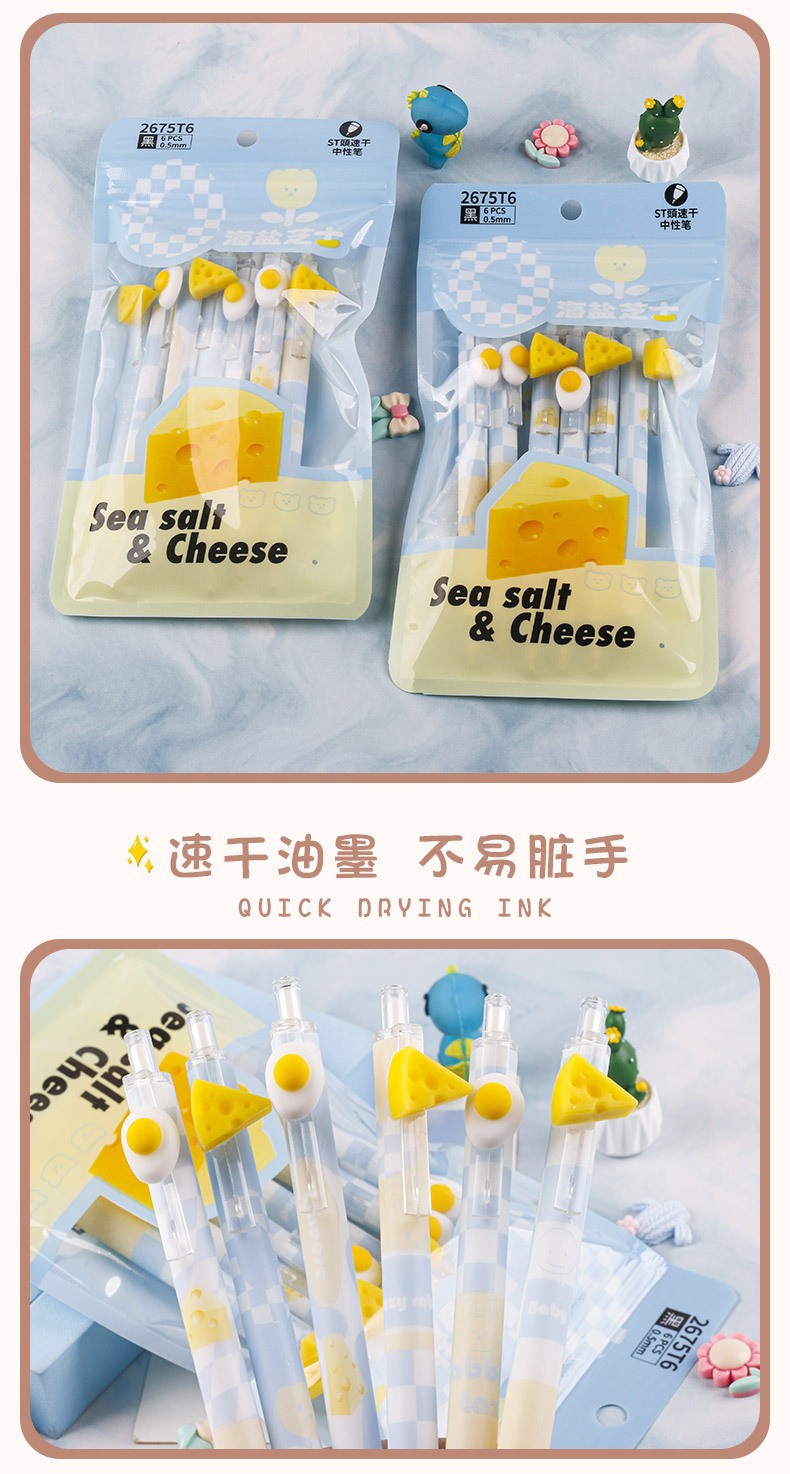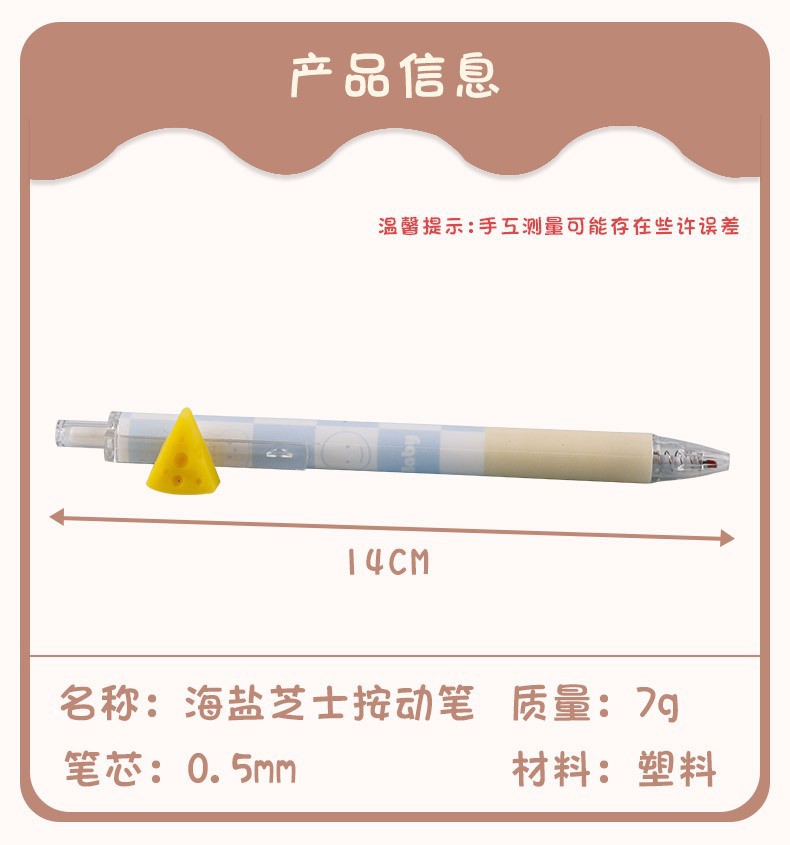 厂家直销海盐芝士奶酪按动中性笔学生可爱少女心女生网红ST笔尖