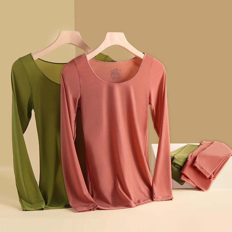 肌底美肤衣秋衣秋裤保暖套装女士打底衫超薄无痕修身外穿长袖长裤