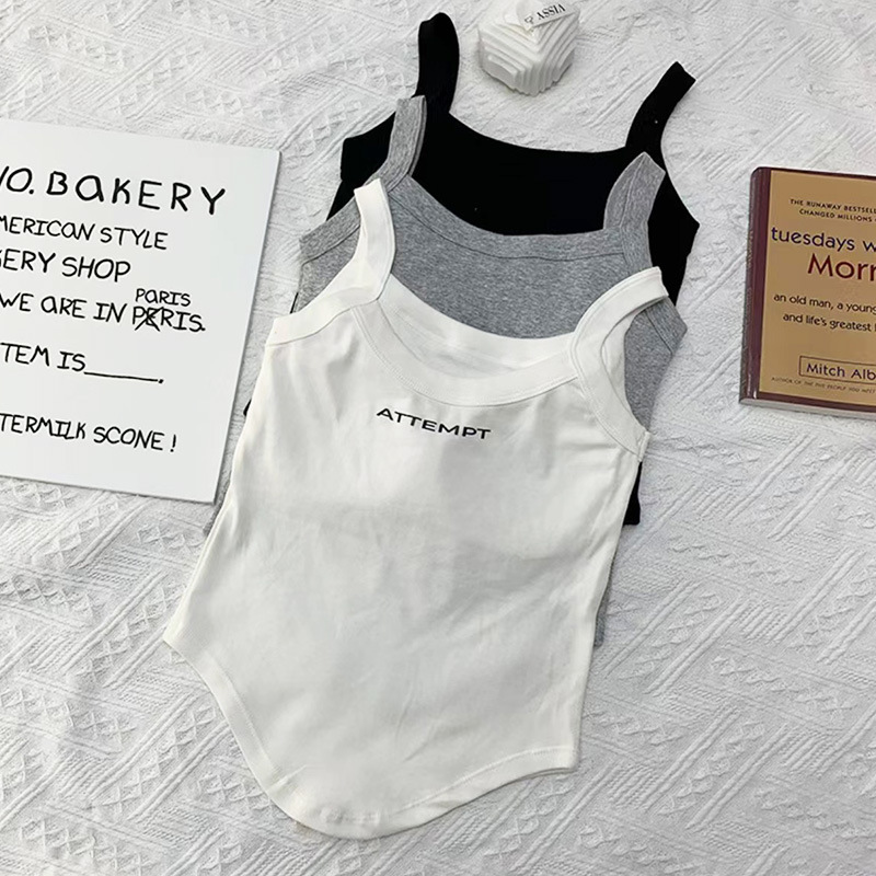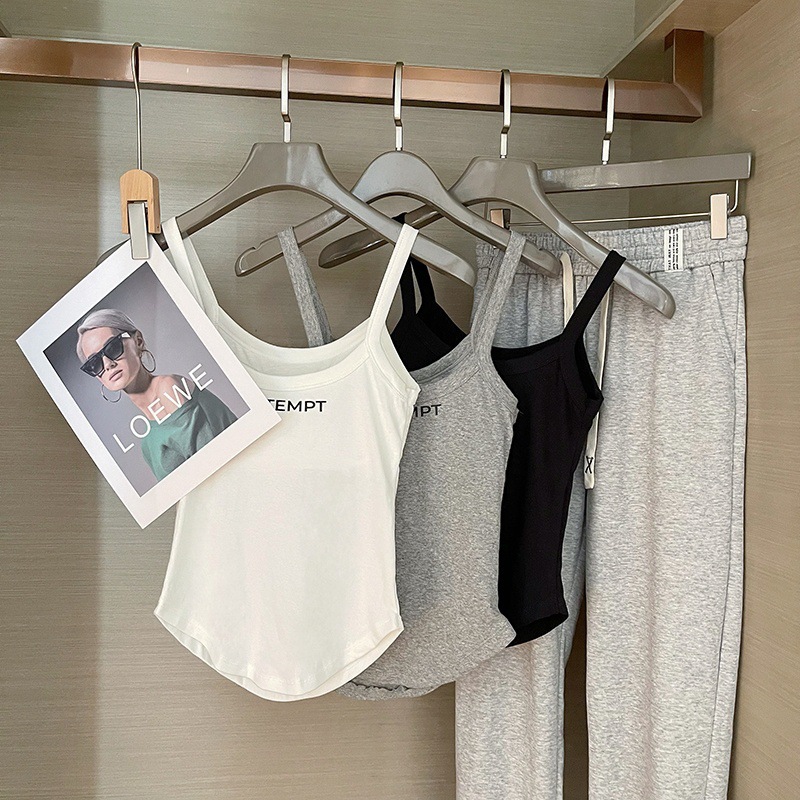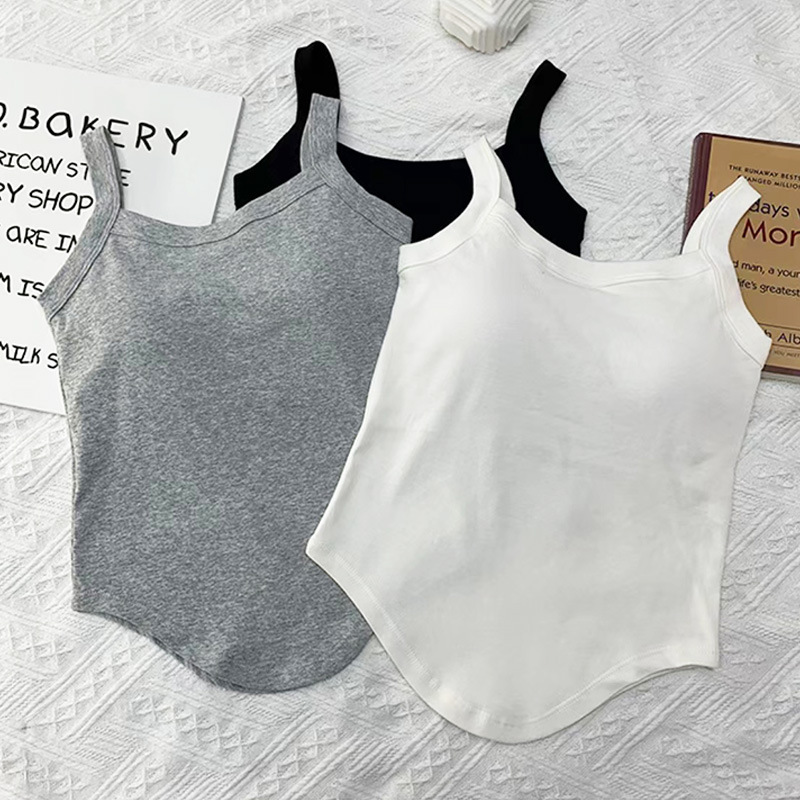 ins辣妹纯棉吊带美背印花背心一体式带胸垫外穿打底显瘦短款上衣