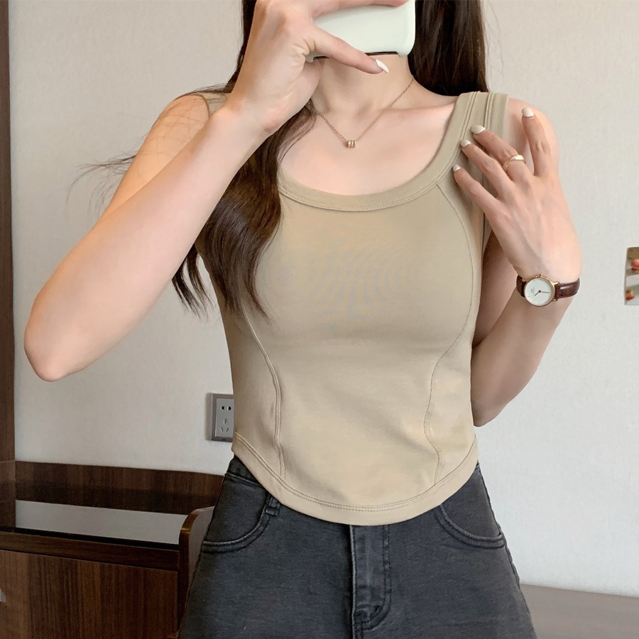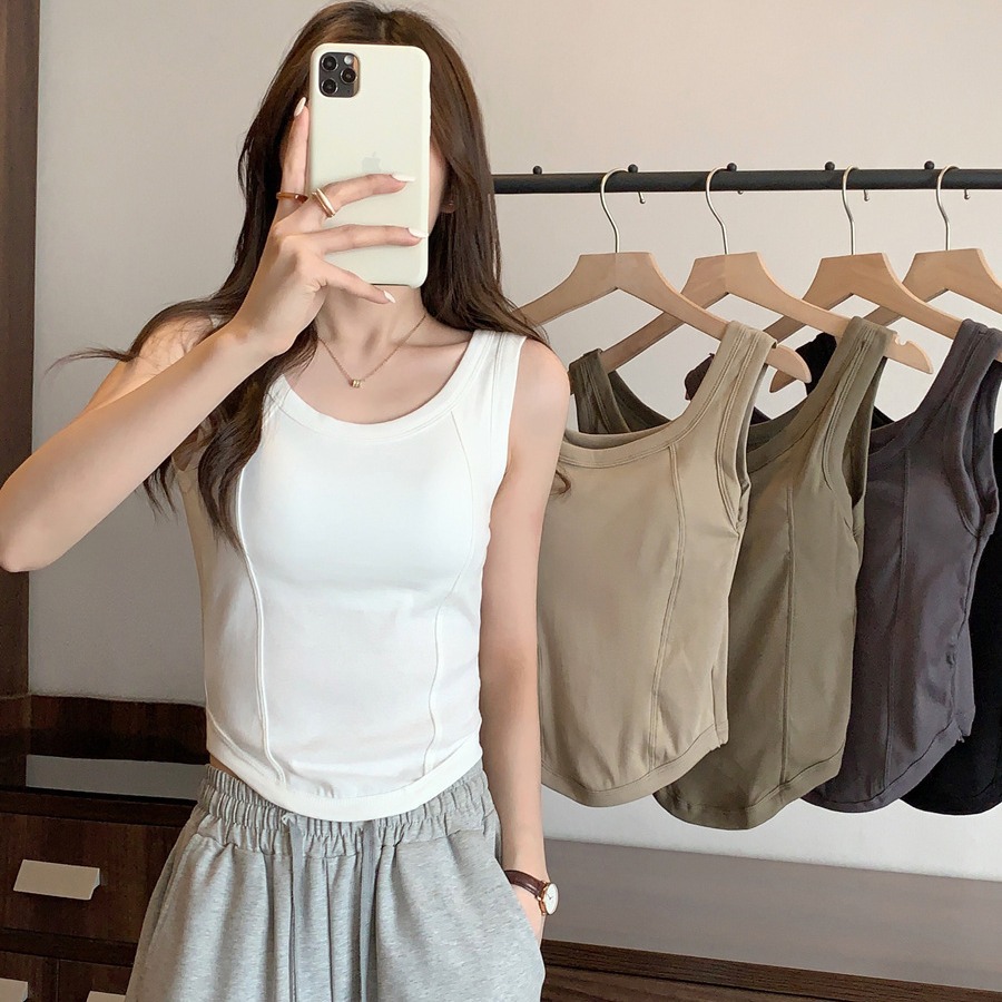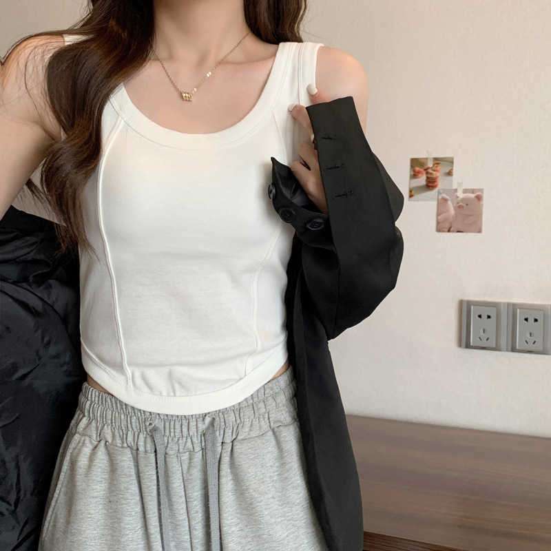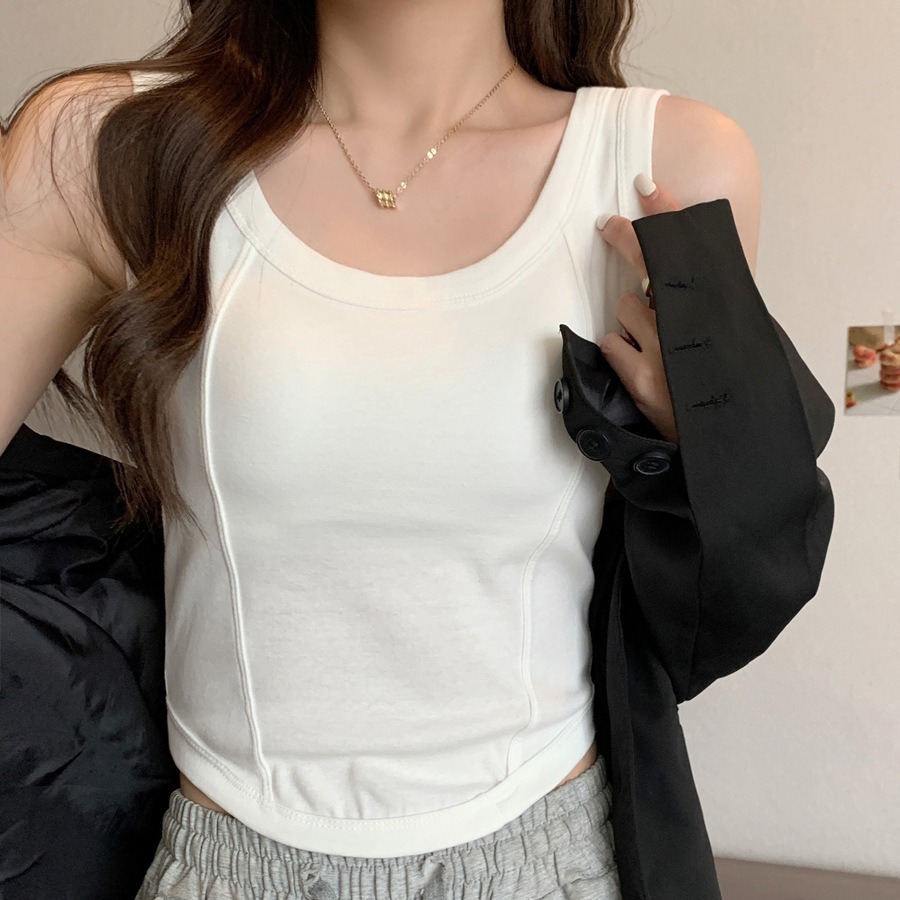 爆款韩版辣妹纯棉吊带美背背心一体式带胸垫裹胸纯色外穿打底上衣