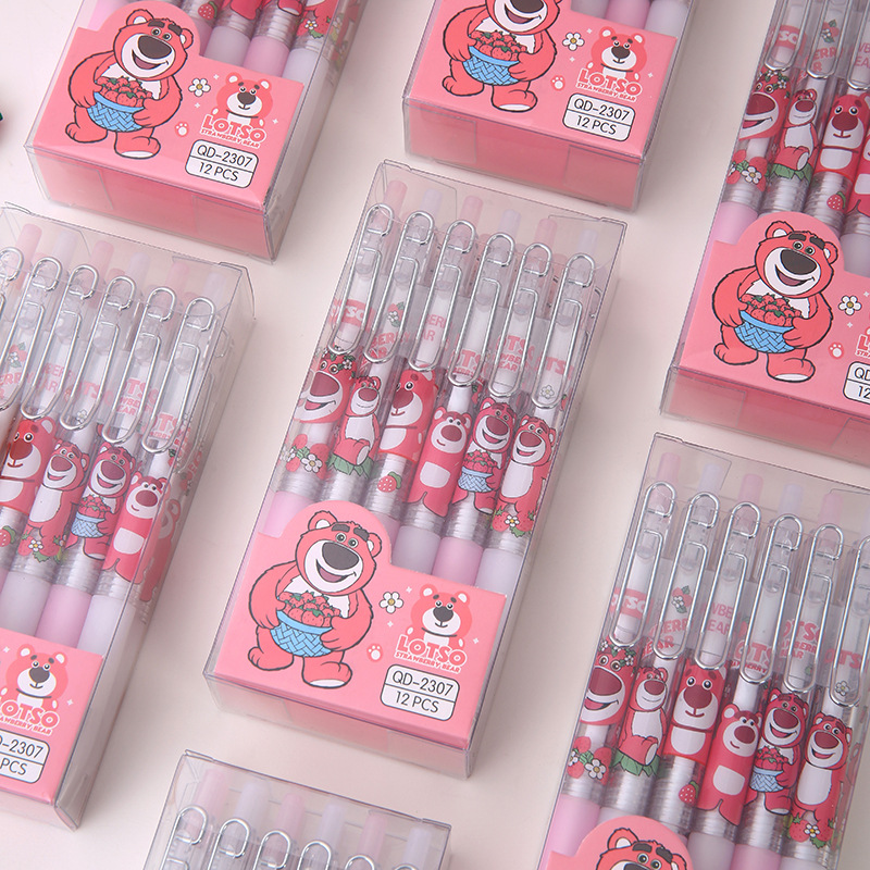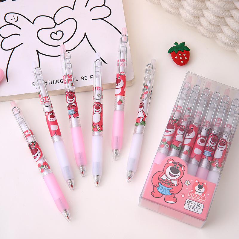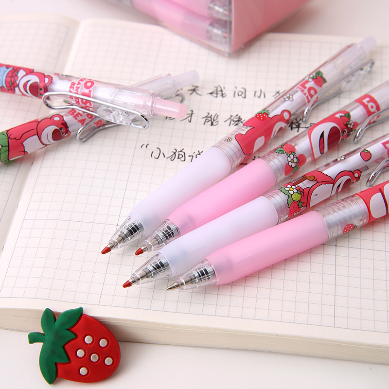 YQiDuo卡通粉色小熊金属笔夹按动笔盒装按压中性笔学生可爱签字笔