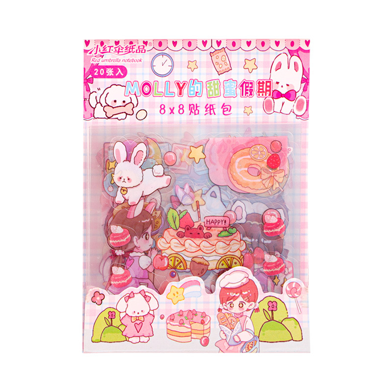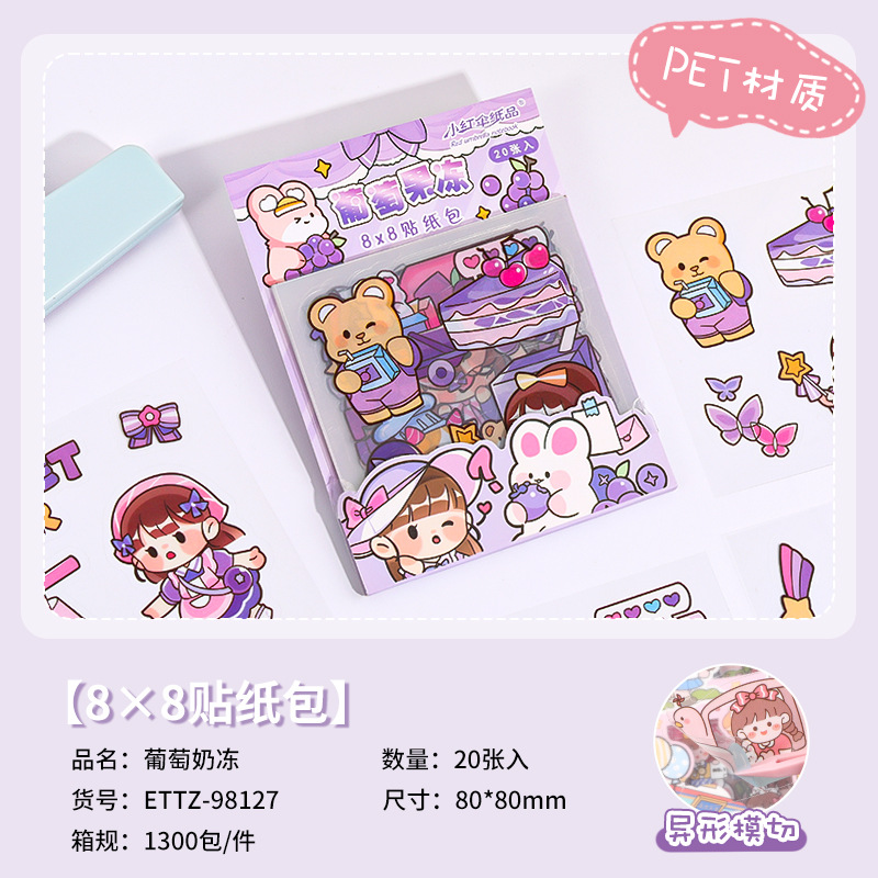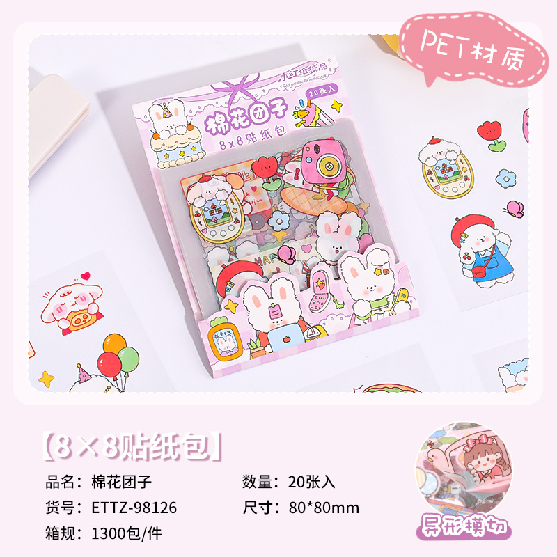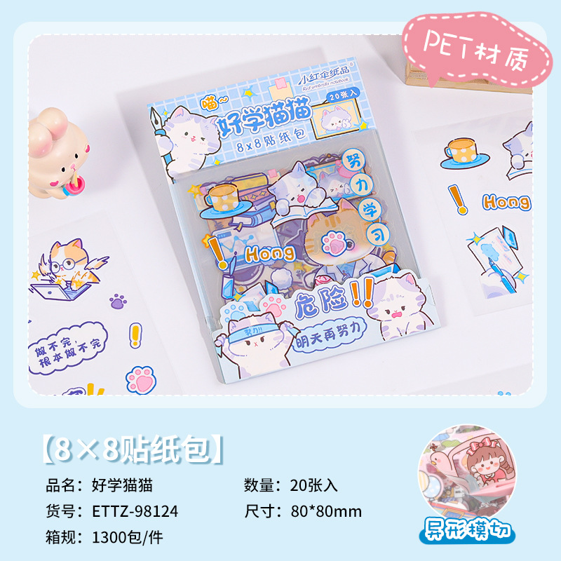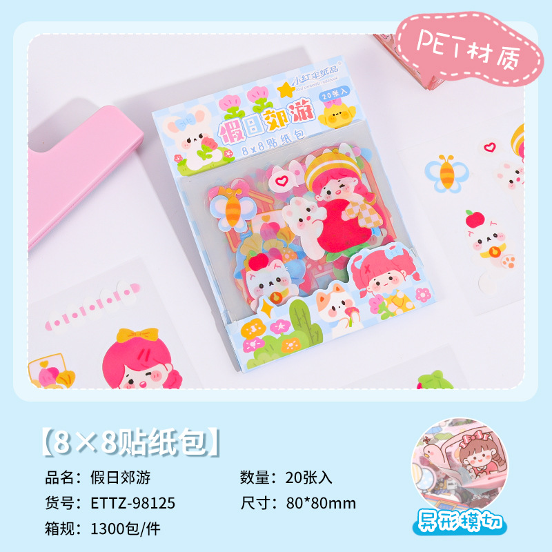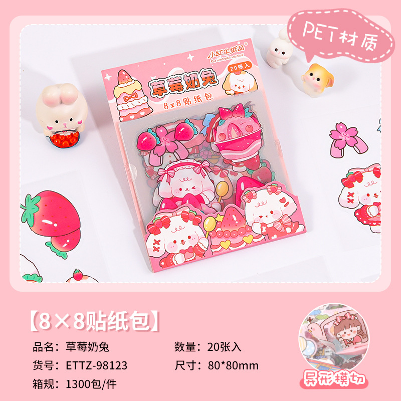小红伞20张pet手帐贴纸包贴画ins卡通可爱手账素材文具贴纸批发