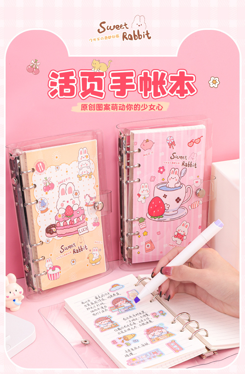透明pvc活页本卡通手账本学生文创日记本可爱笔记本批发文具本子