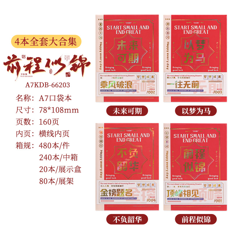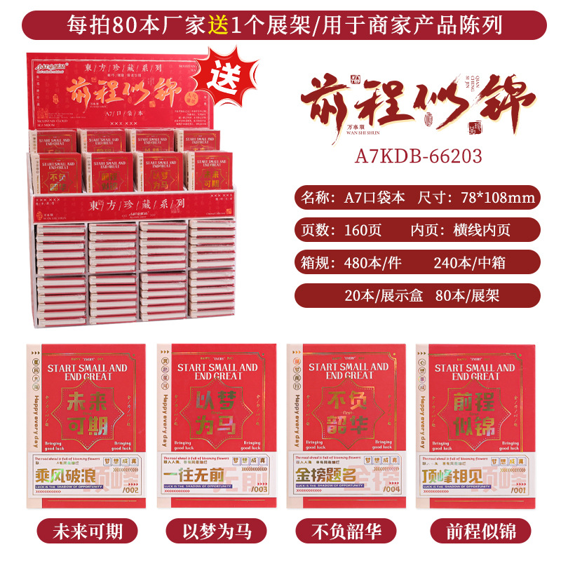 励志国风A7口袋本加厚迷你笔记本学生礼物学习用品本子批发送展架