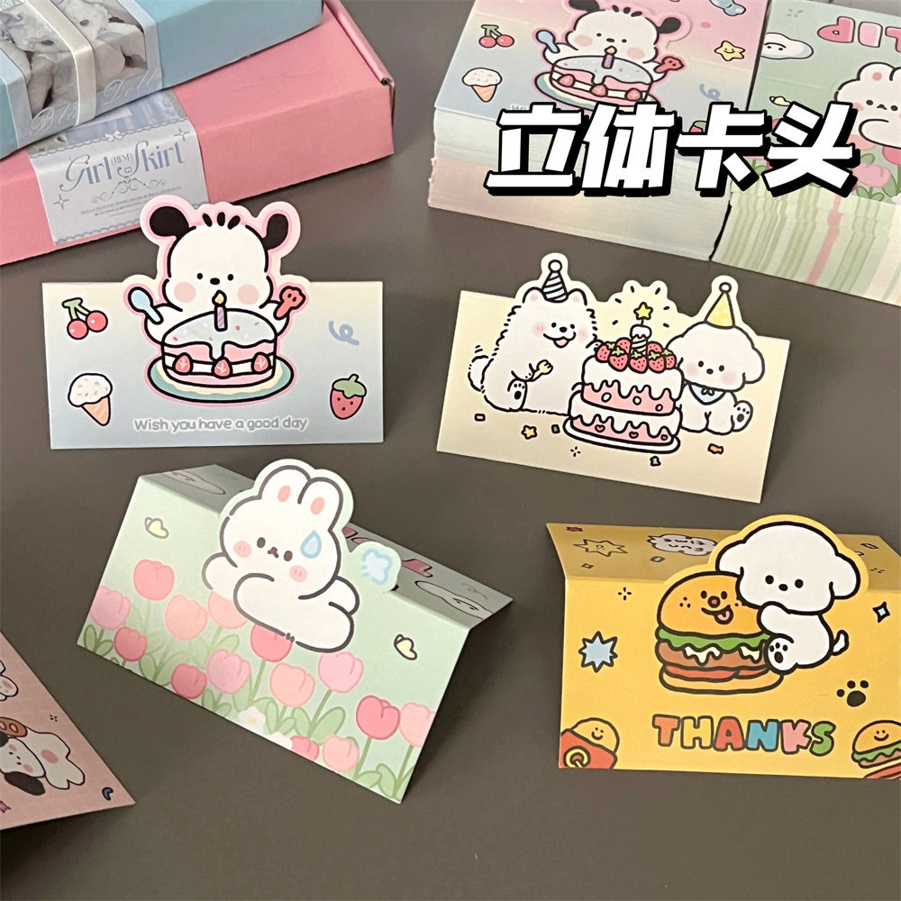 原创小狗卡头背卡打包卡片套装出卡发货饰品礼物烘焙饼干包装卡片