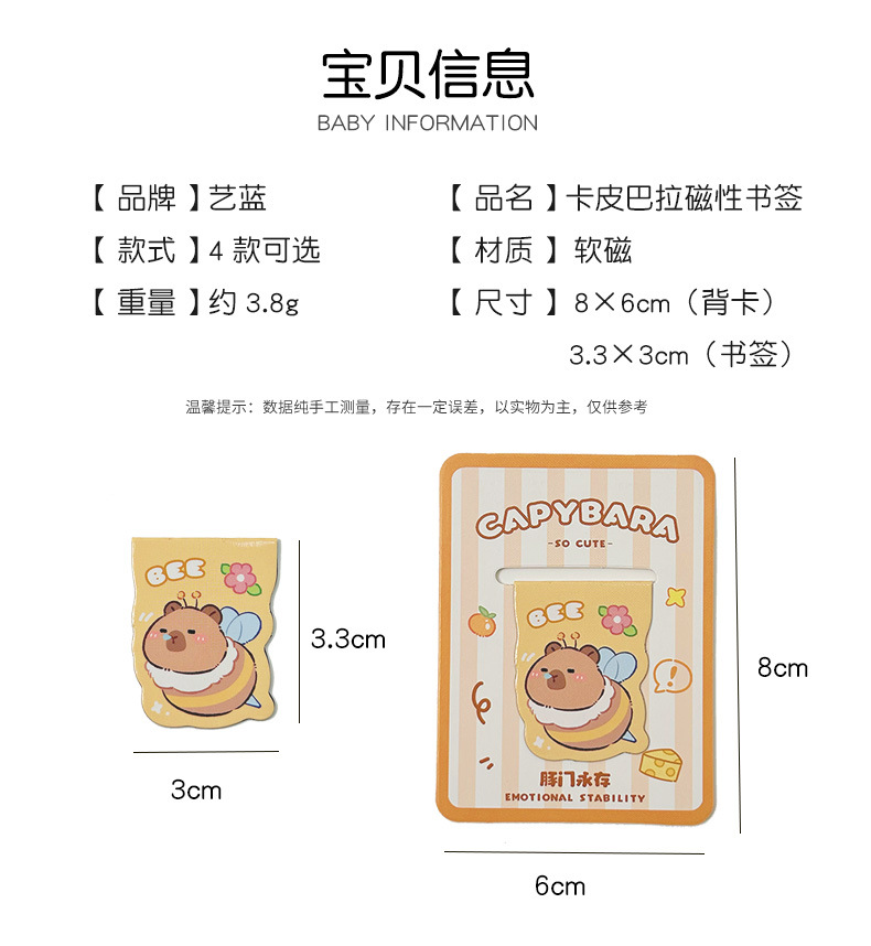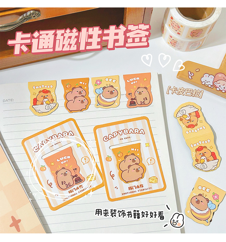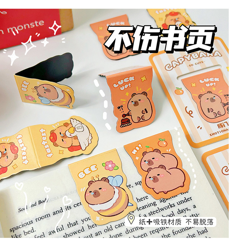 卡皮巴拉异型磁性书签可爱磁吸书签学生双面阅读书页夹书本夹子