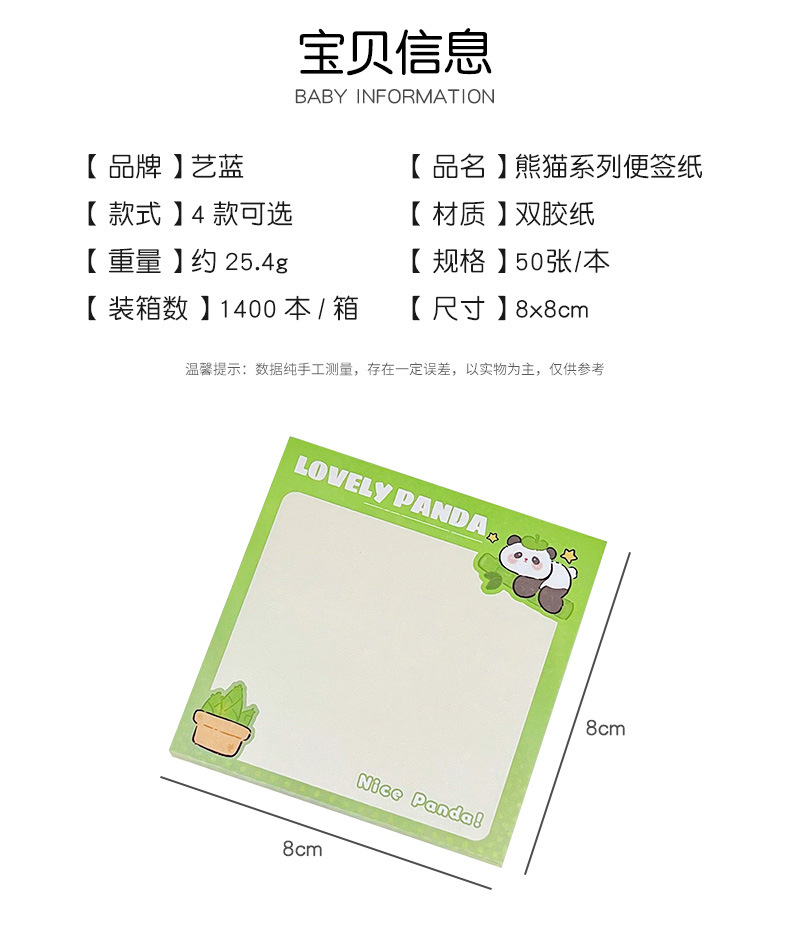 熊猫便签本可爱无粘性便利贴高颜值可撕便签纸学生便携留言小本子