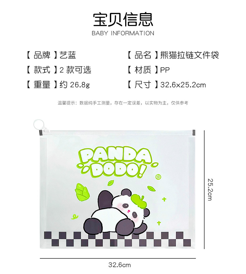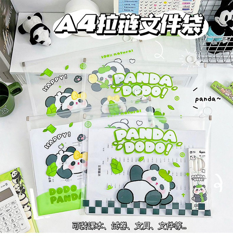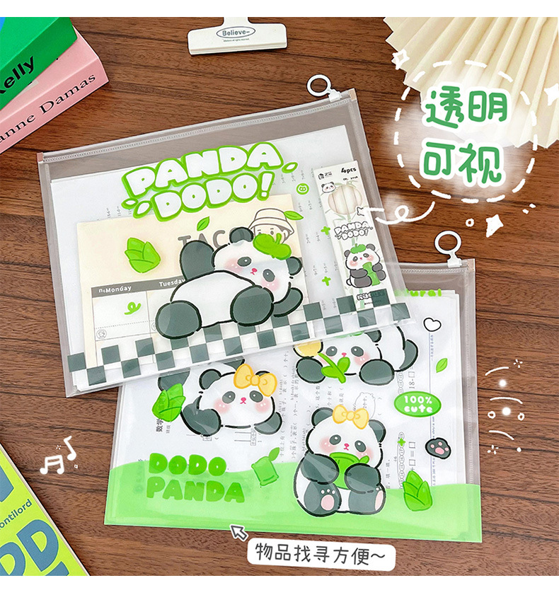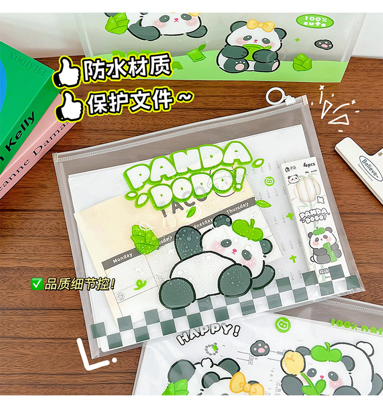 熊猫a4文件袋拉链式学生透明资料科目分类防水试卷孕妇产检档案袋