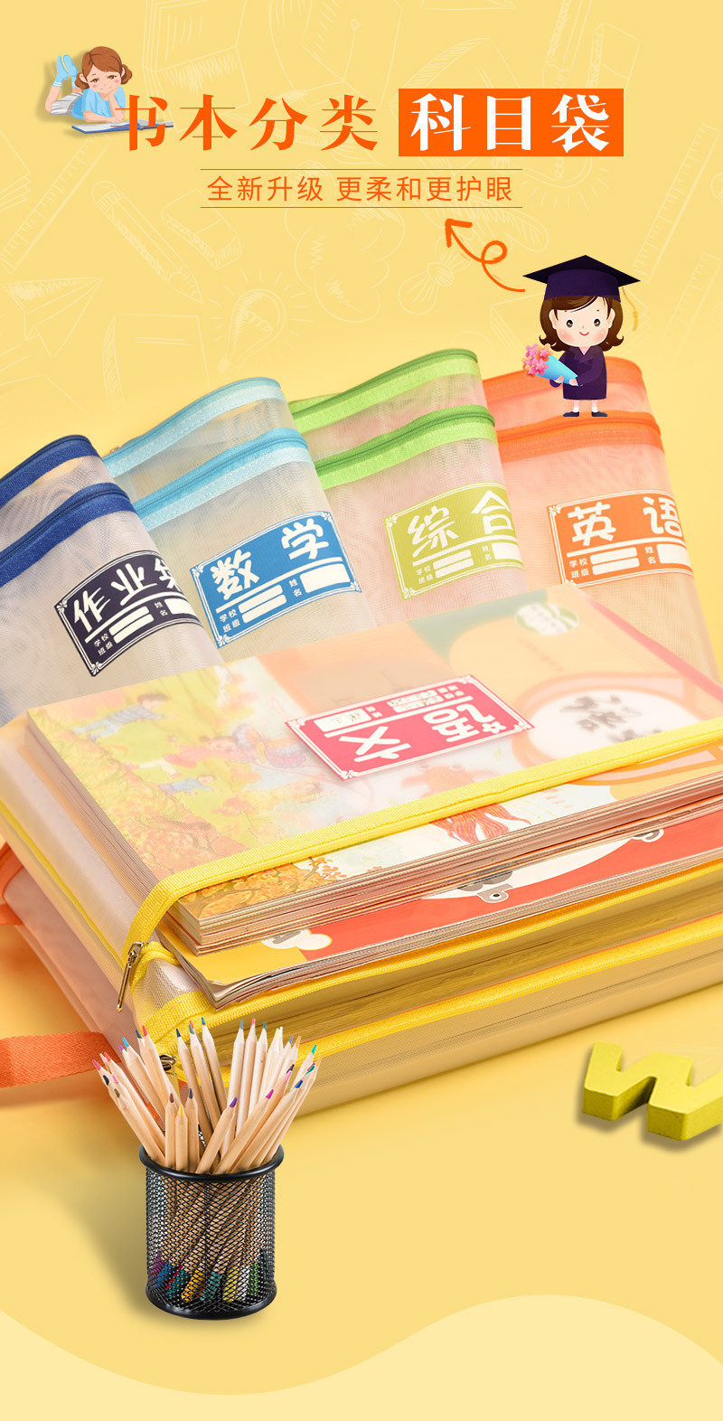 网纱文件袋A4单双层学生试卷袋文化文具用品分科收纳袋科目袋批发
