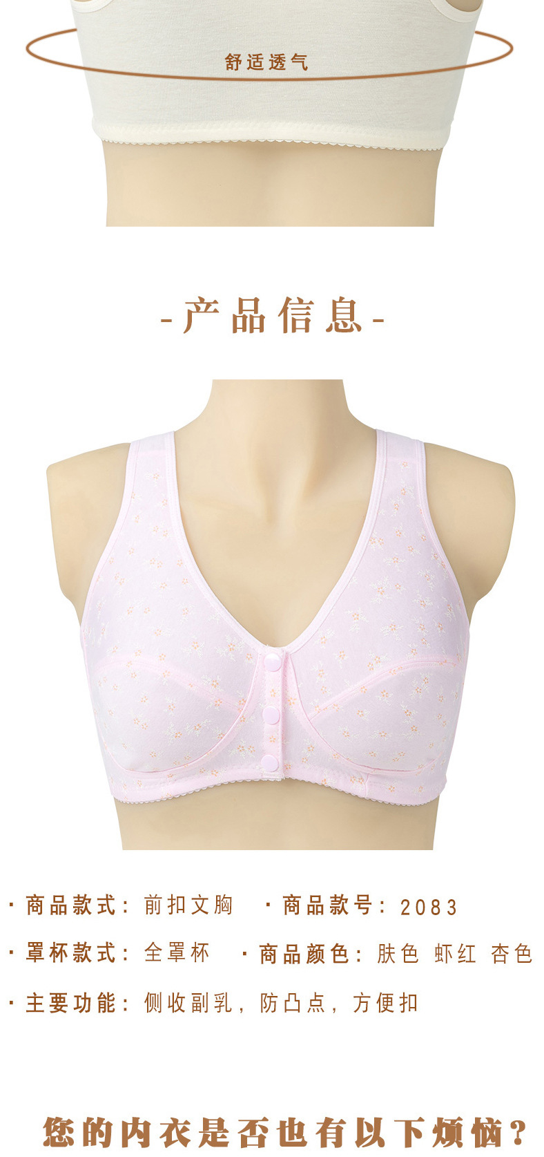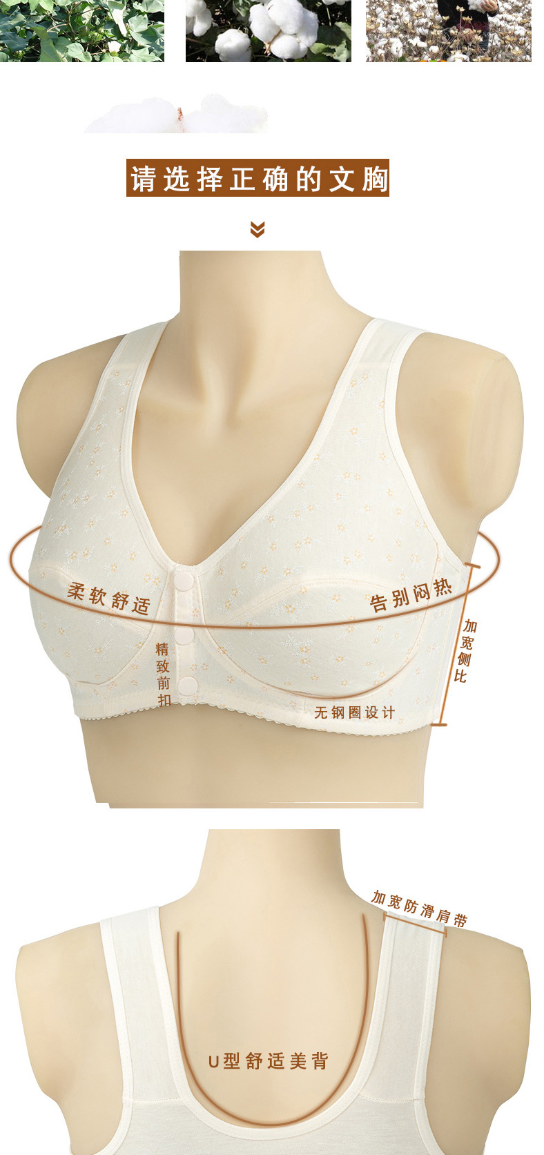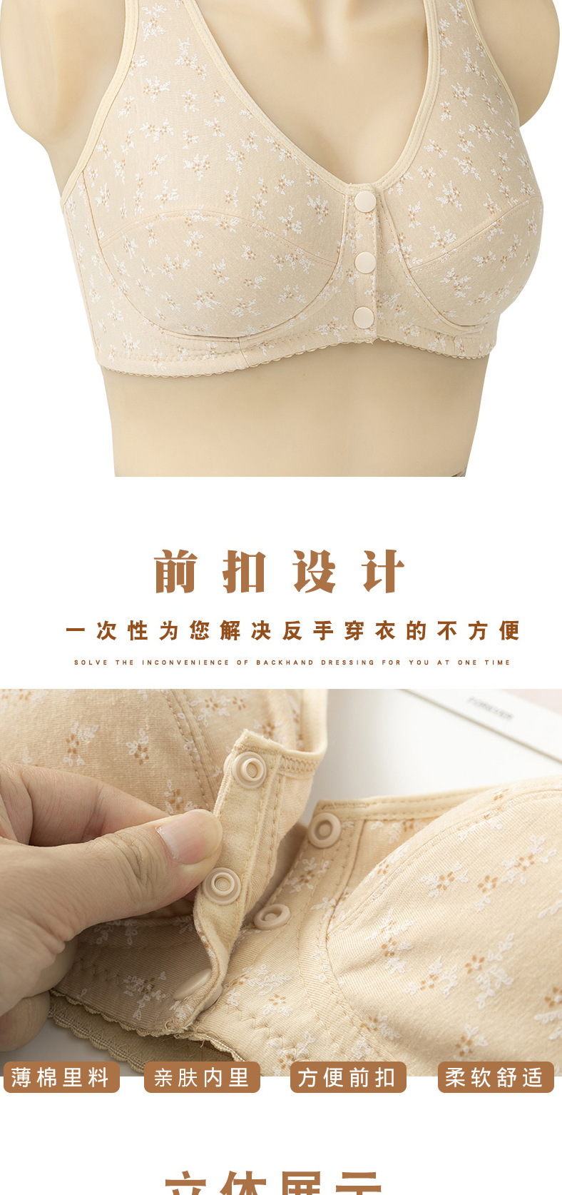 新品文胸女软棉薄款运动哺乳中老年前扣背心式无钢圈简约舒适胸罩