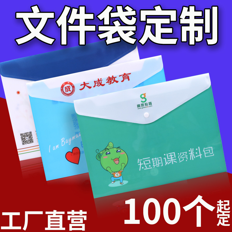 长禾定制按扣a4透明文件袋 加厚pp塑料a5证件票据资料收纳档案袋
