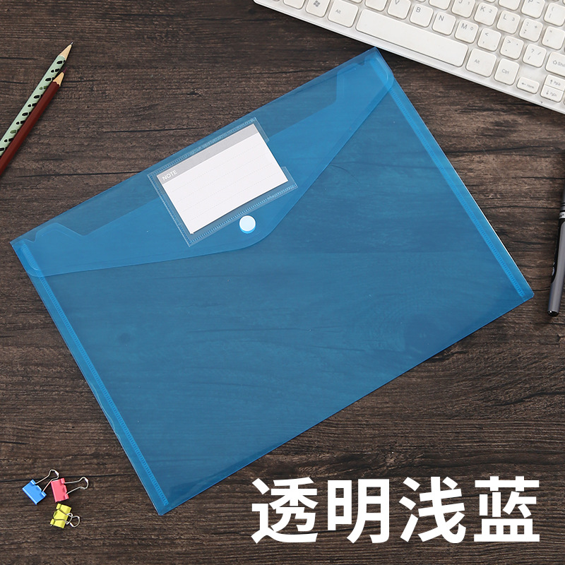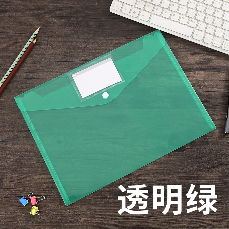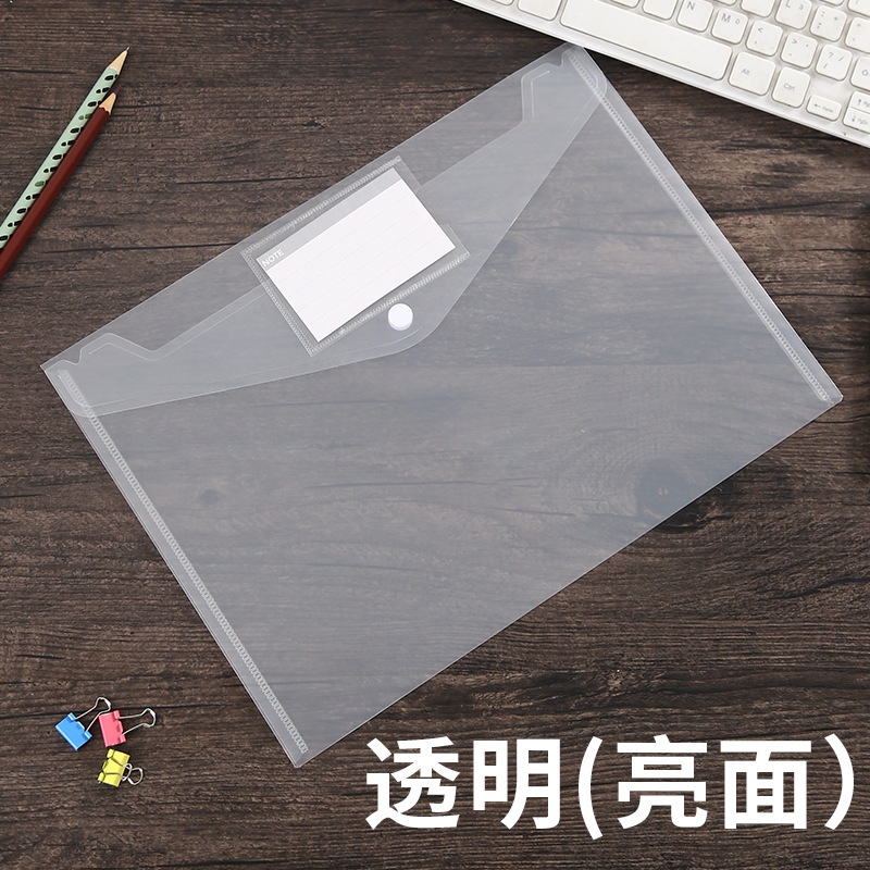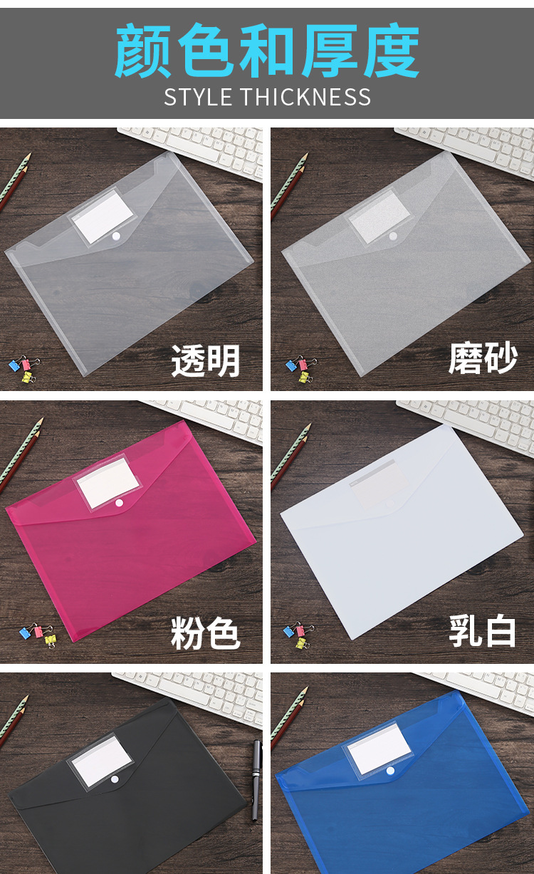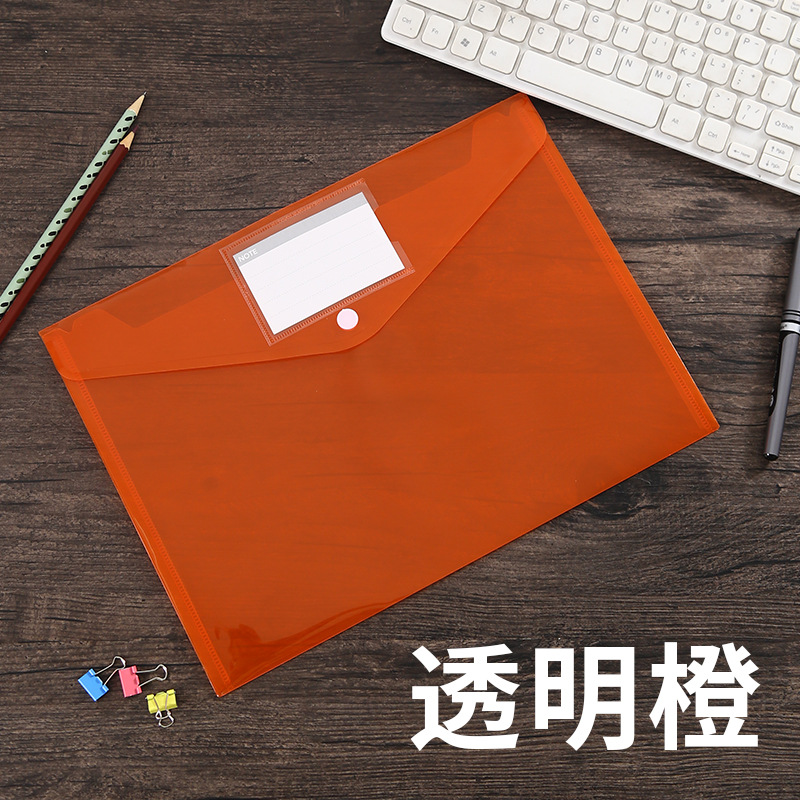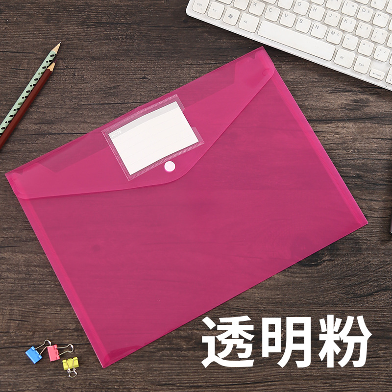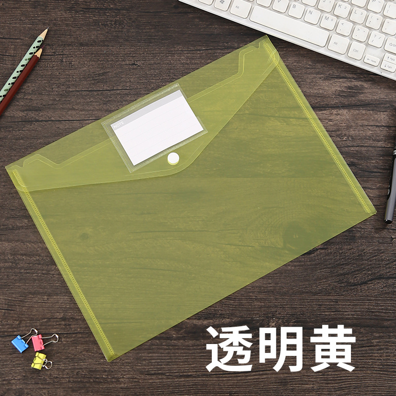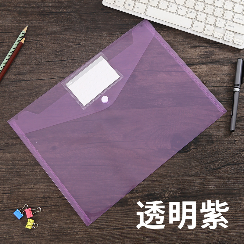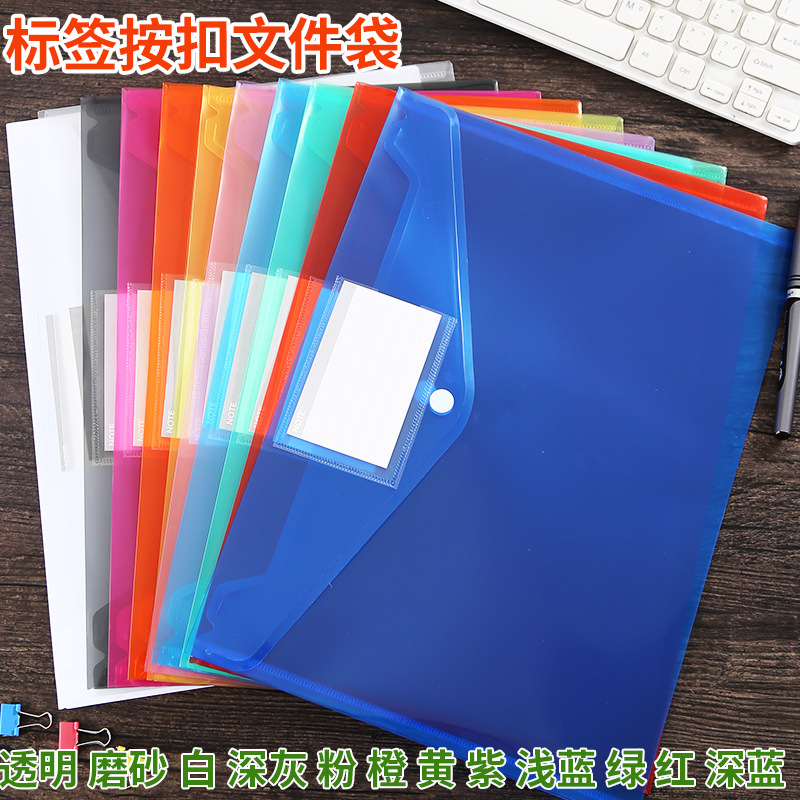 现货批发A4透明标签按扣文件袋 加厚彩色定制学生收纳档案资料袋