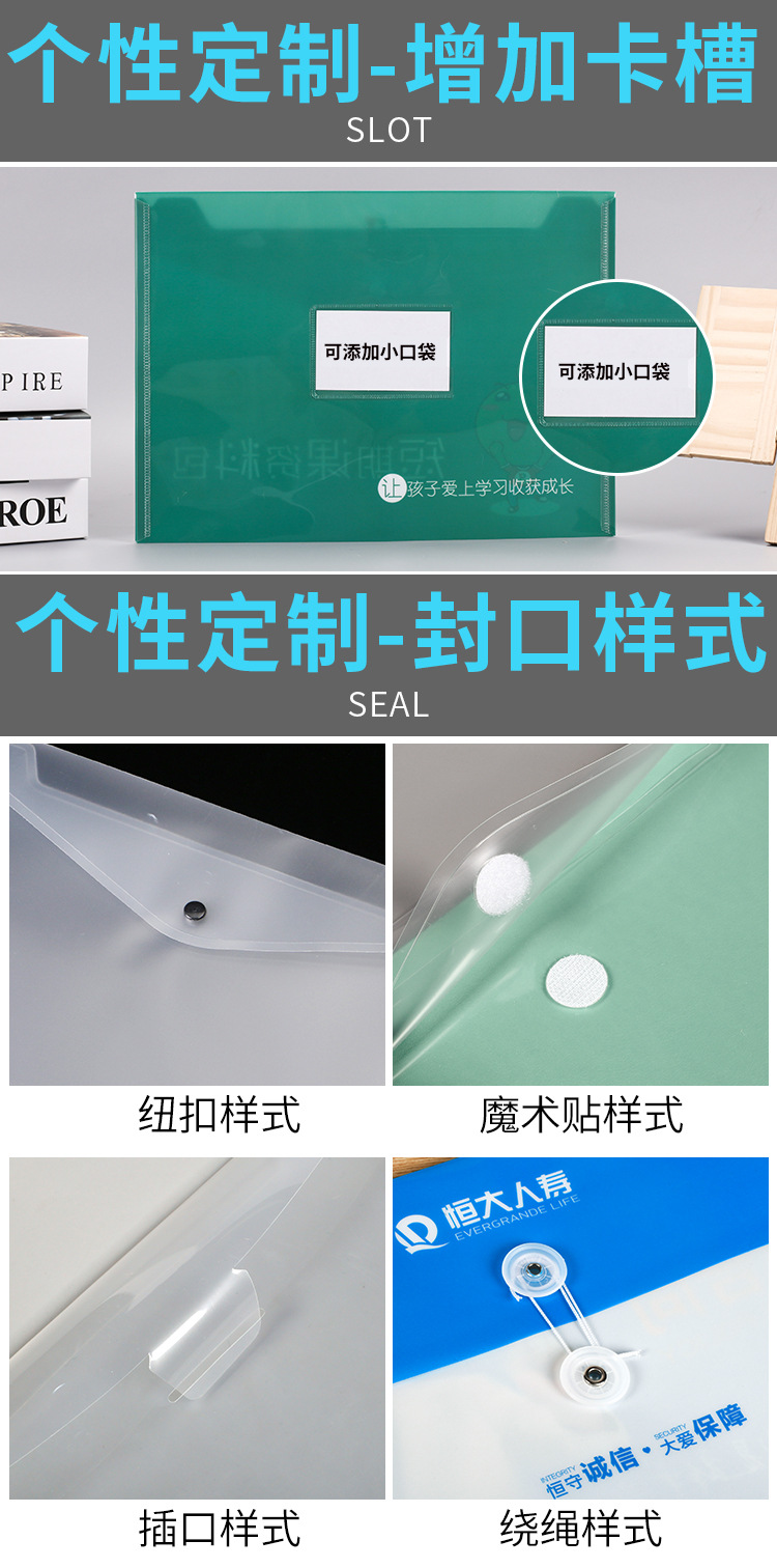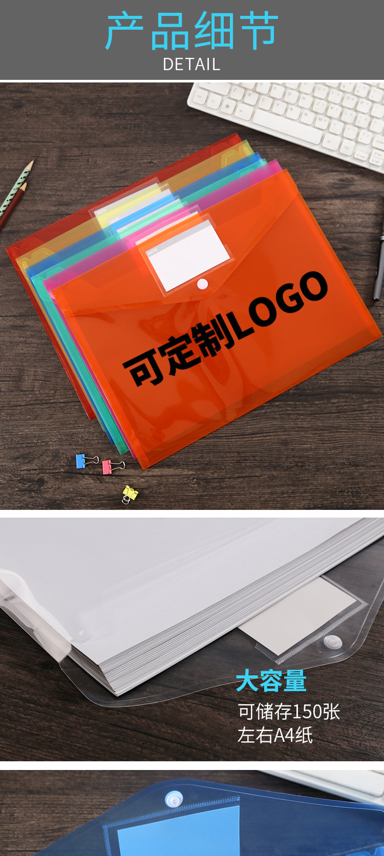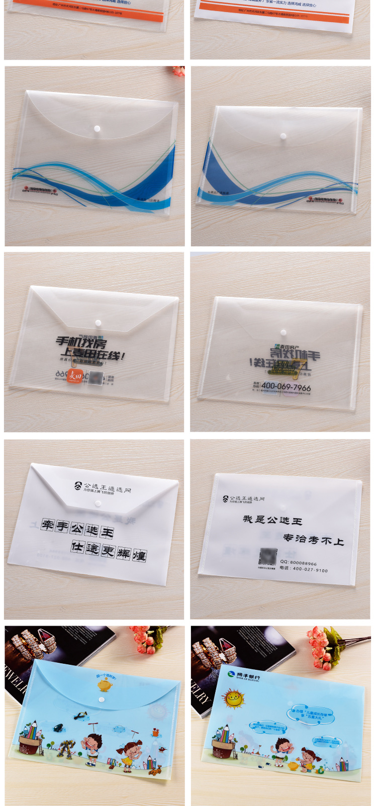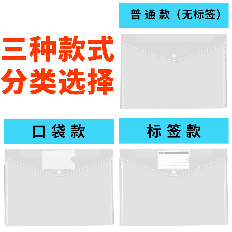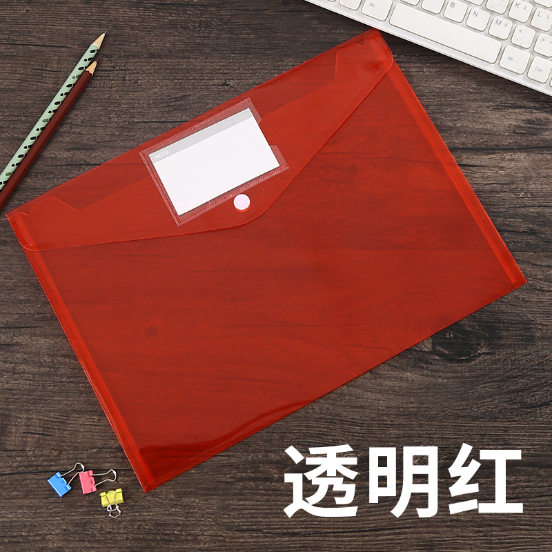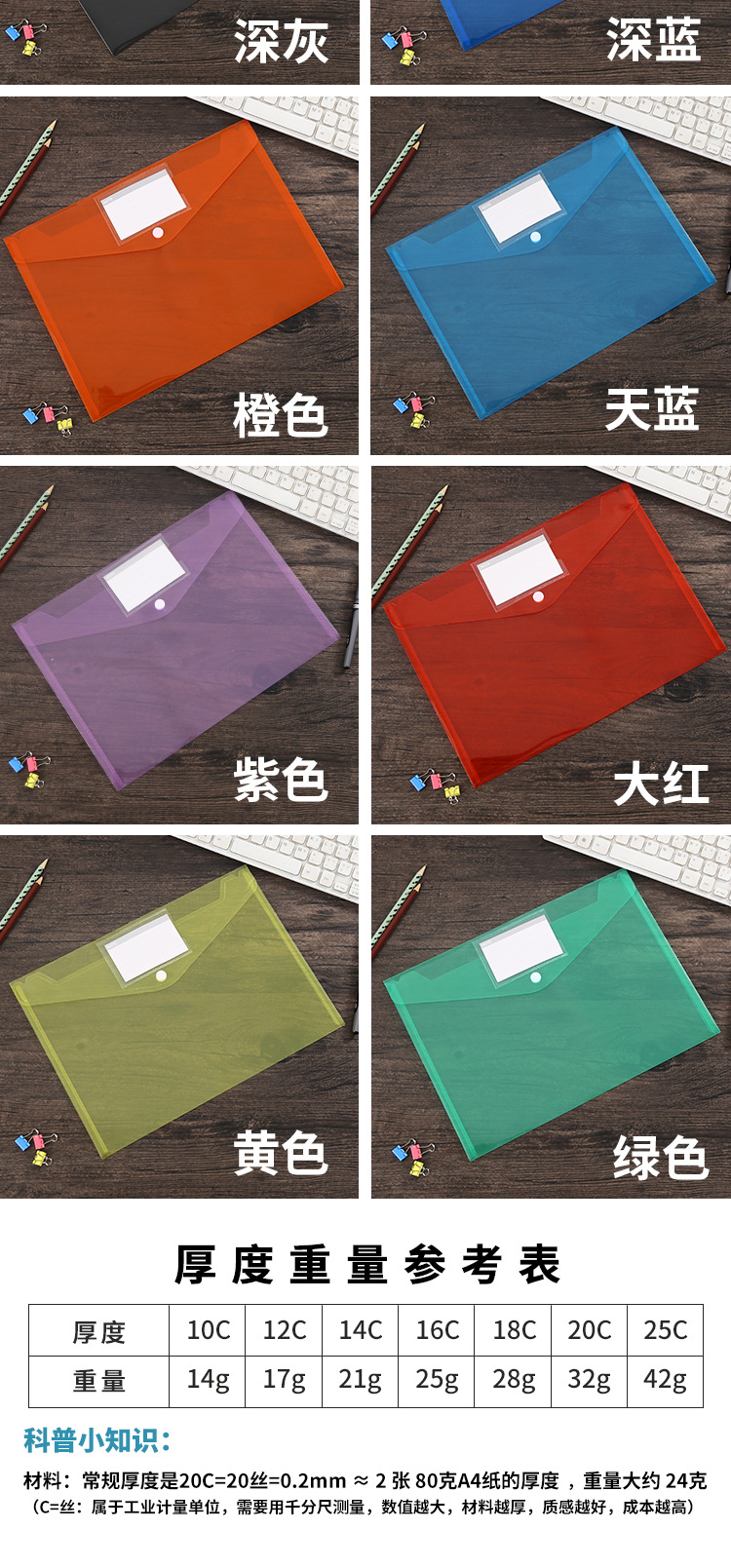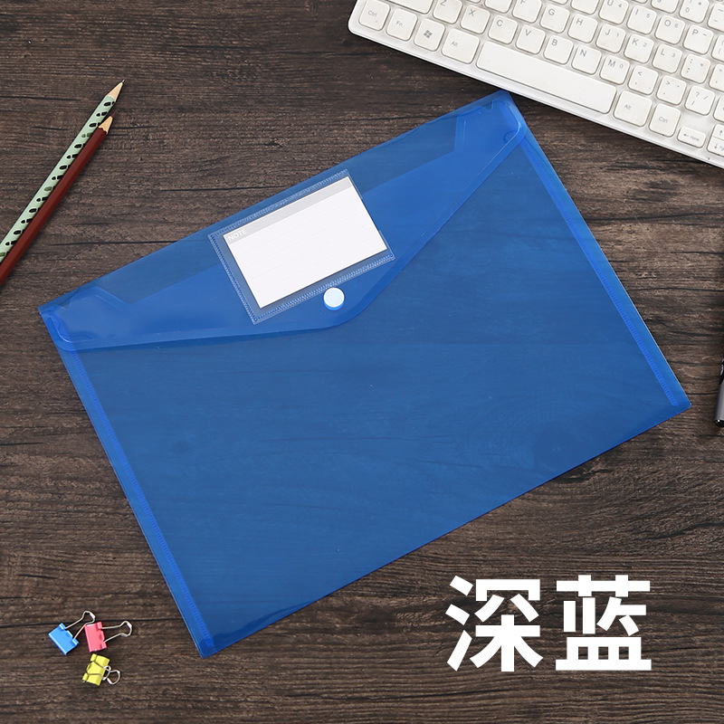 现货批发A4透明标签按扣文件袋 加厚彩色定制学生收纳档案资料袋
