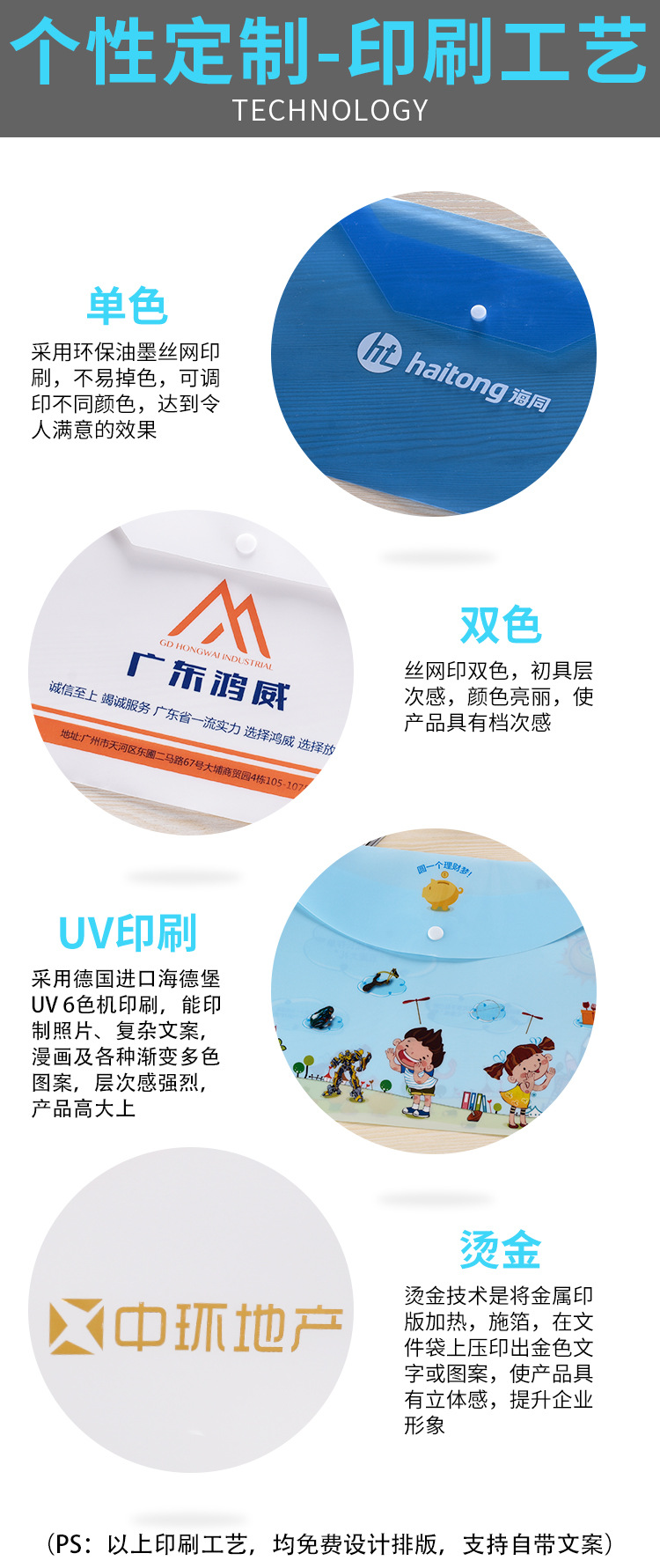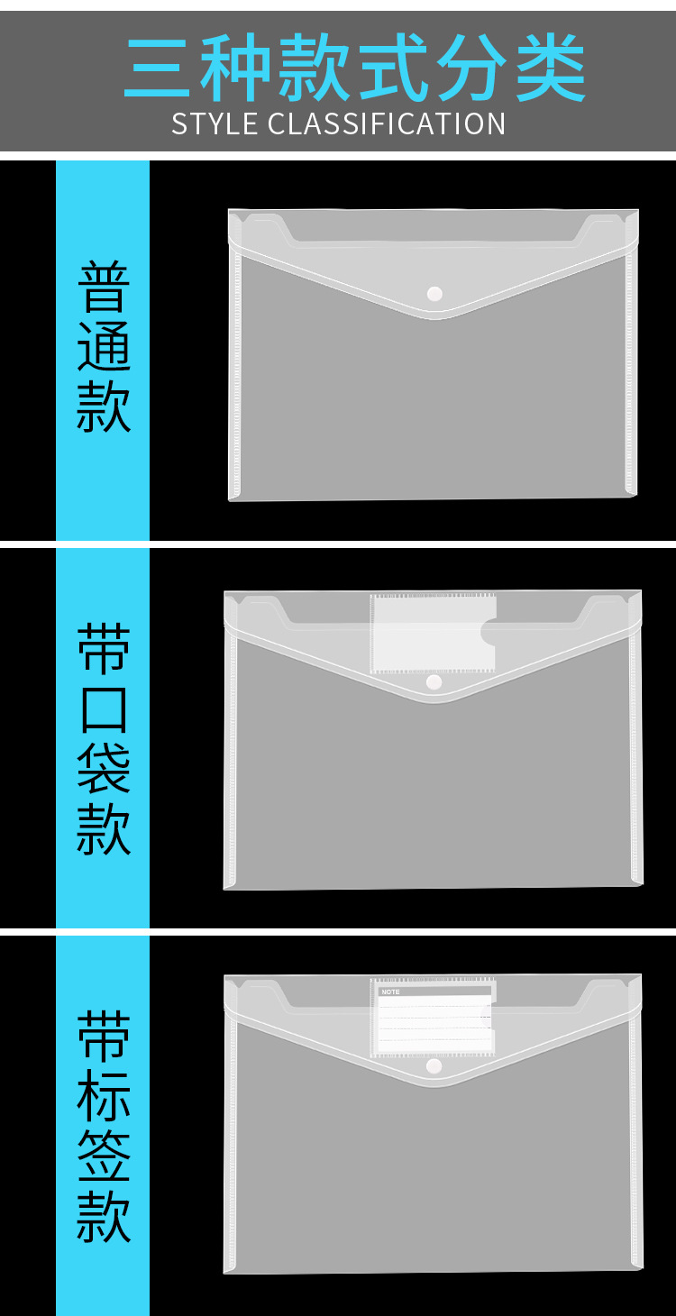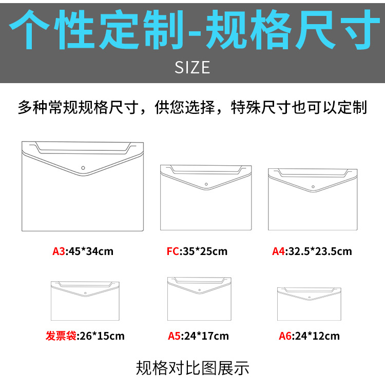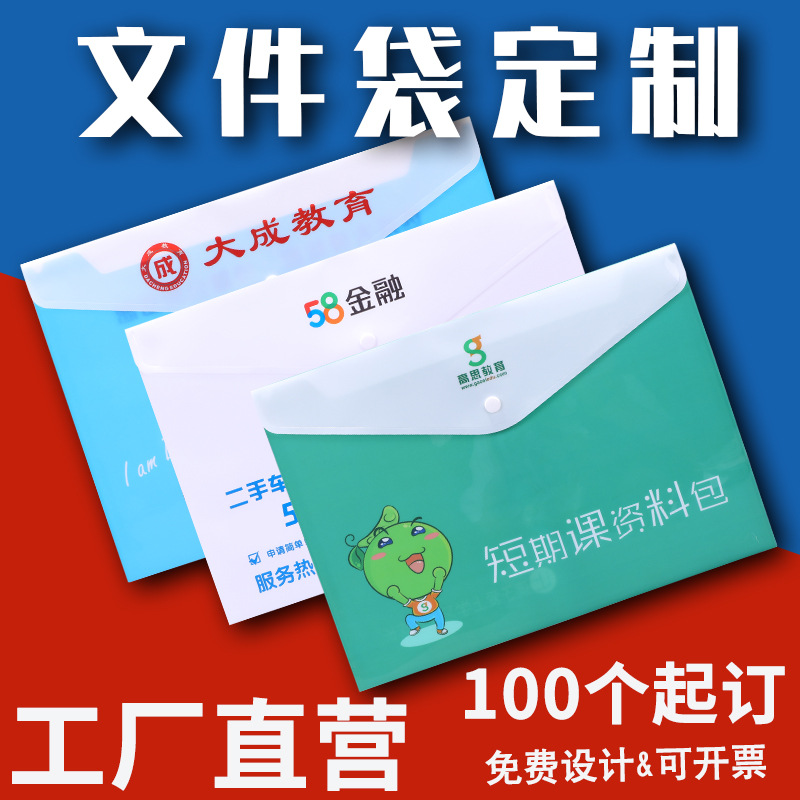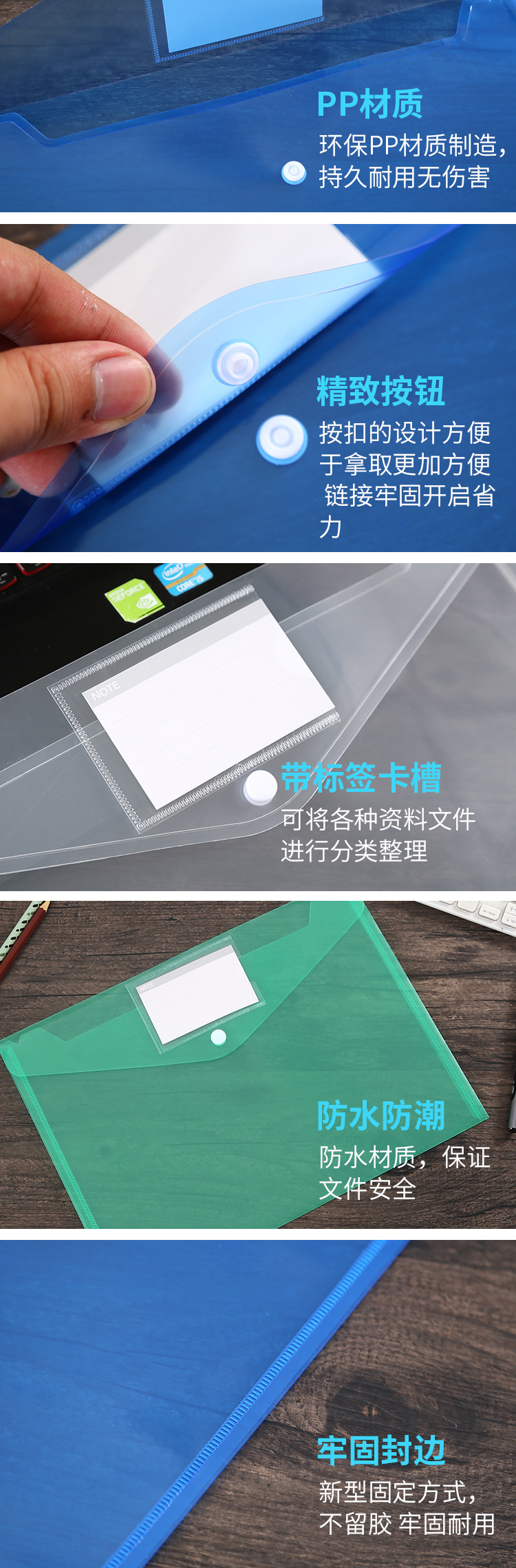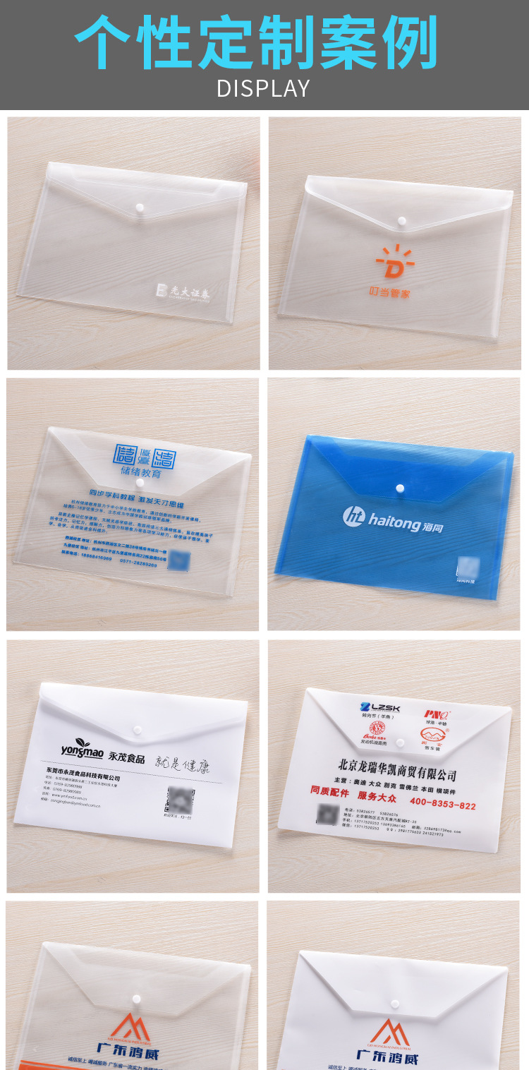现货批发A4透明标签按扣文件袋 加厚彩色定制学生收纳档案资料袋