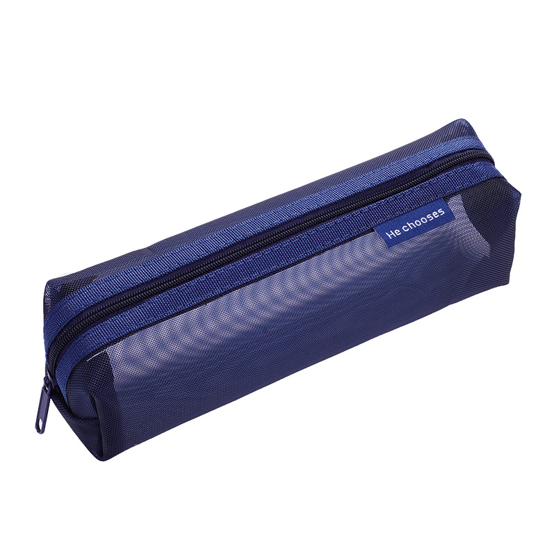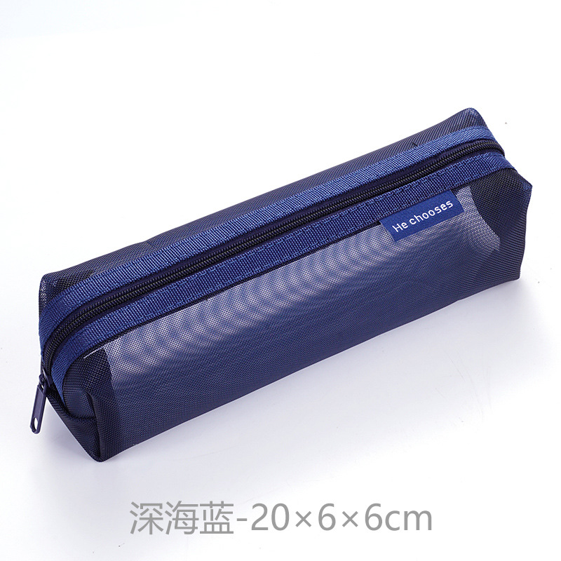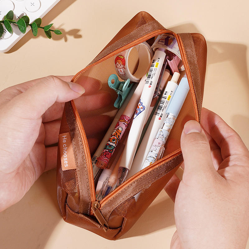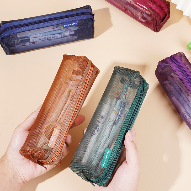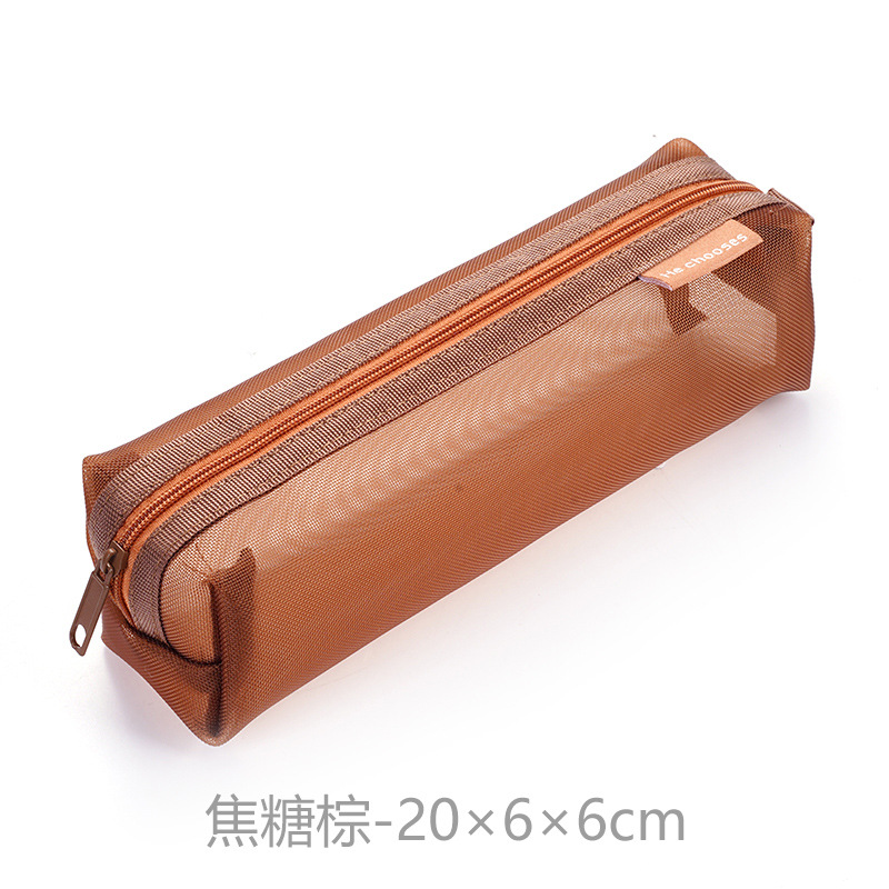 复古色大容量网纱笔袋学生考试学习透明袋文具简约便携收纳铅笔袋