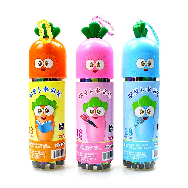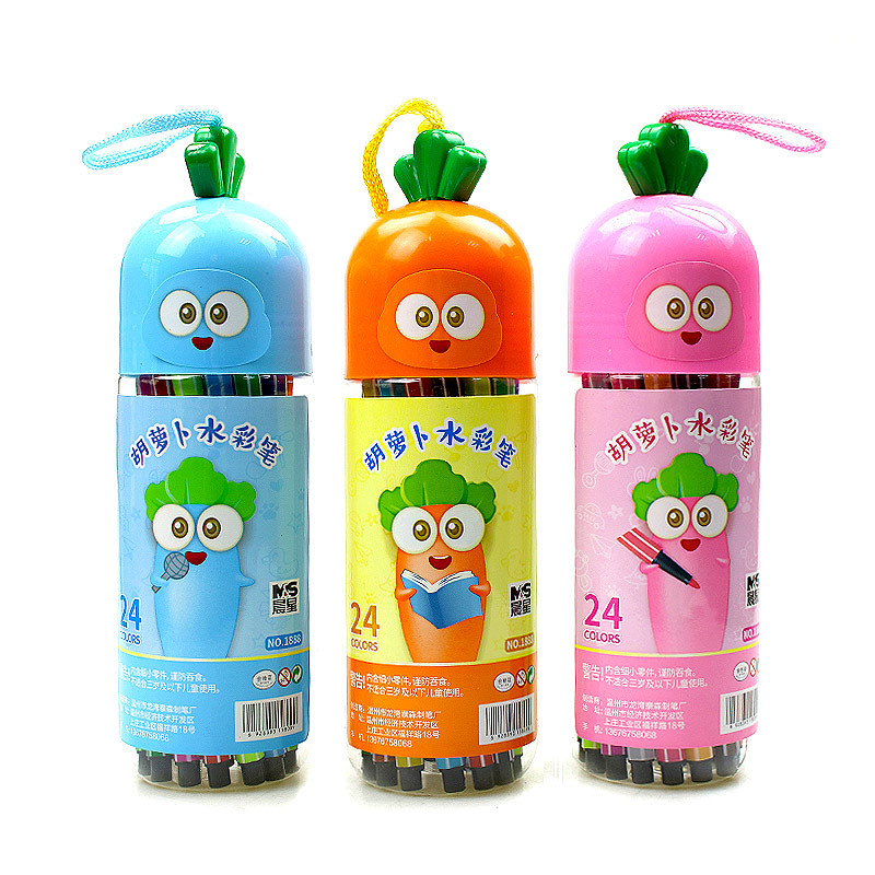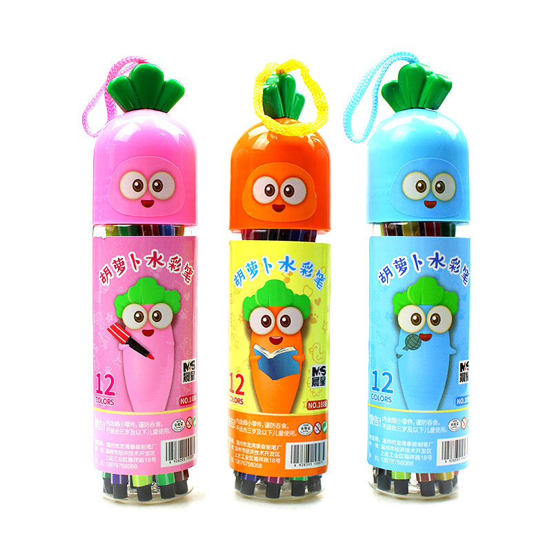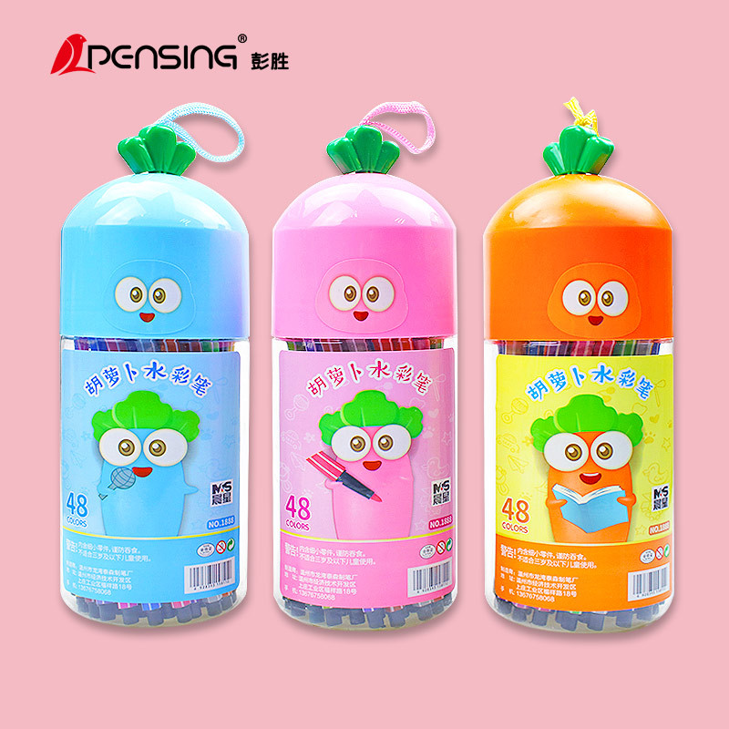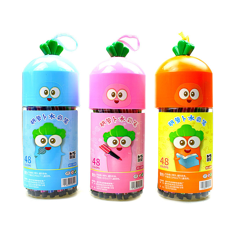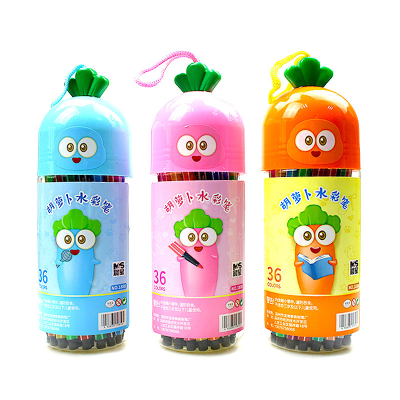 胡萝卜水彩笔卡通桶装48色36儿童18绘画24涂鸦12学习用品文具彩笔