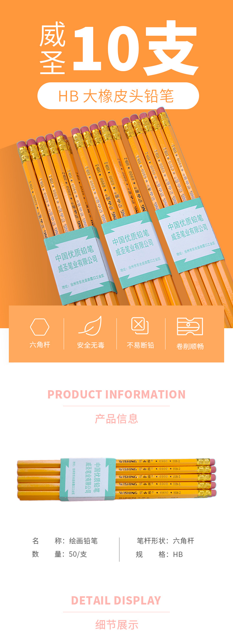 工厂推荐威圣6900黄杆皮头HB铅笔六角铅笔现货批发
