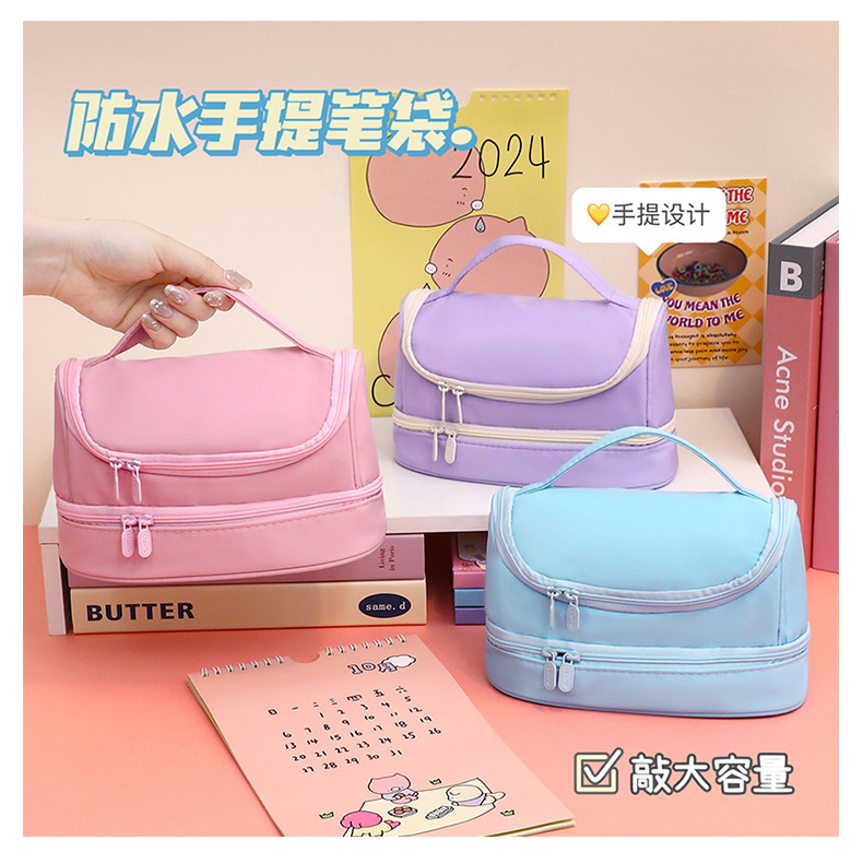 大容量笔袋义乌文具双层diy少女心收纳化妆包中学生文具盒铅笔盒