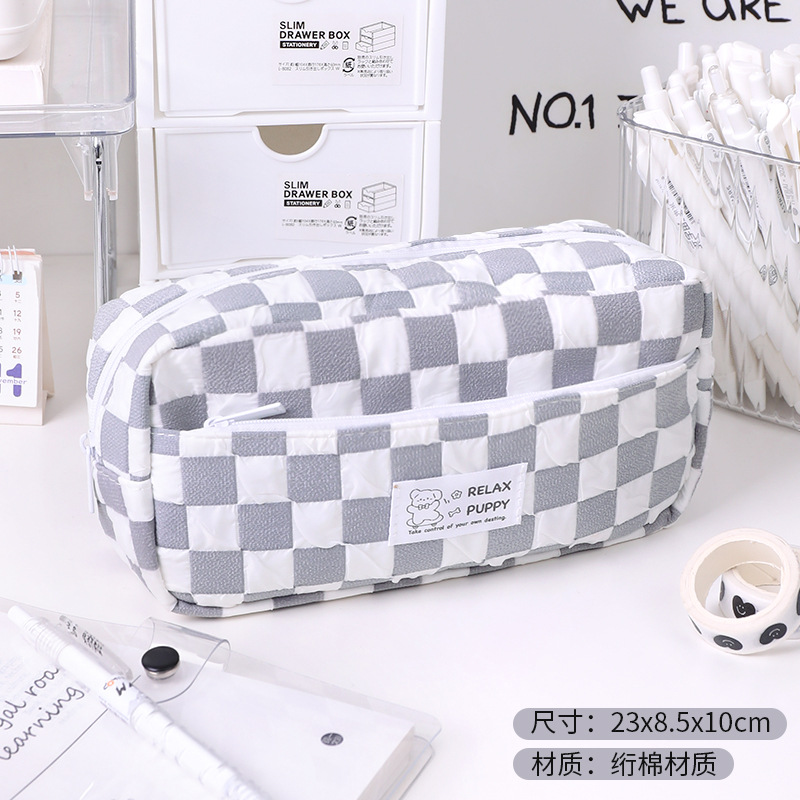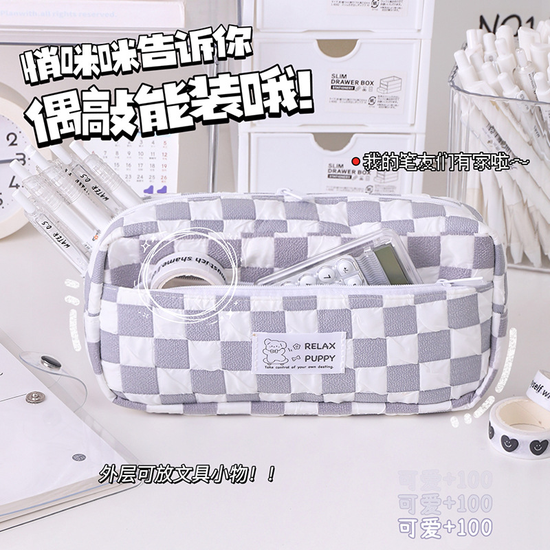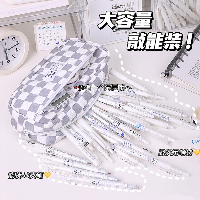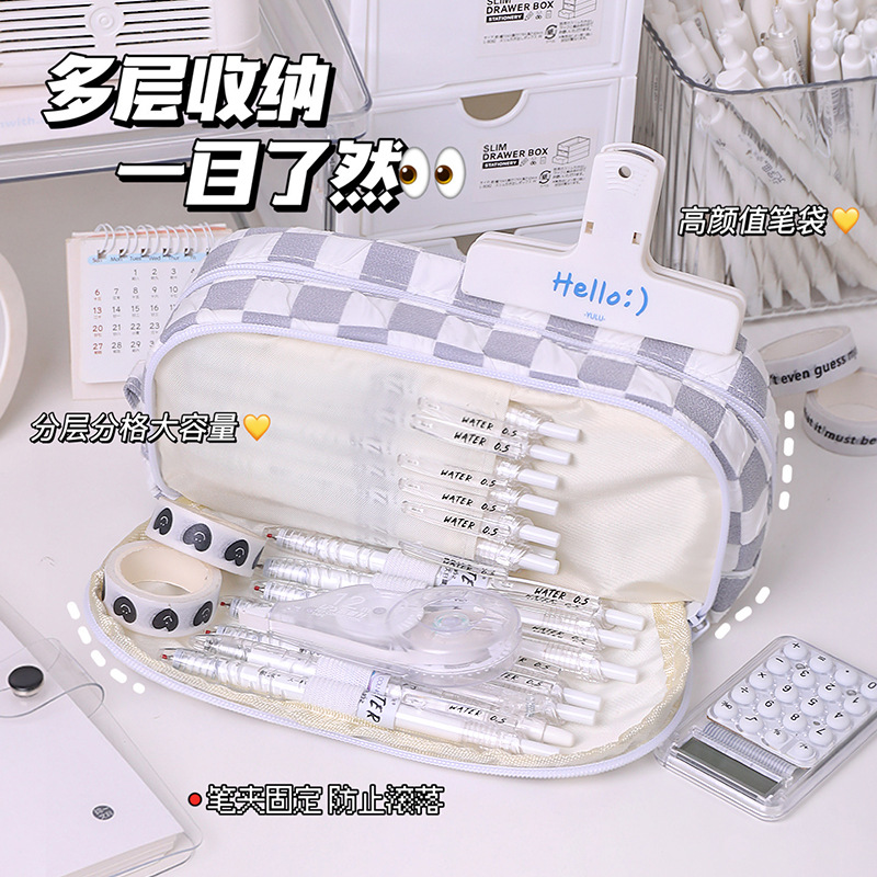 2024棋盘格大容量笔袋学生多功能铅笔袋收纳袋高颜值简约ins文具