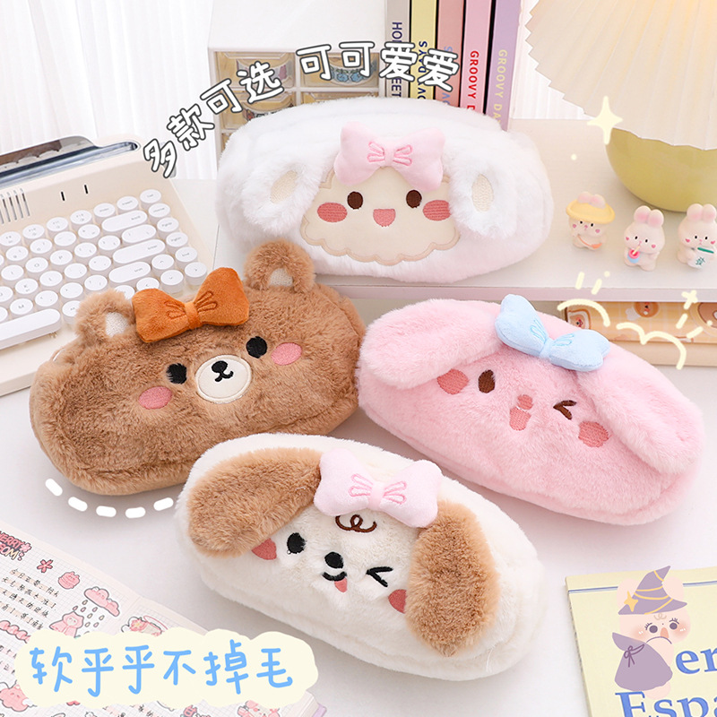 可爱卡通毛绒笔袋 大容量学生笔盒铅笔袋 立体少女心文具盒批发