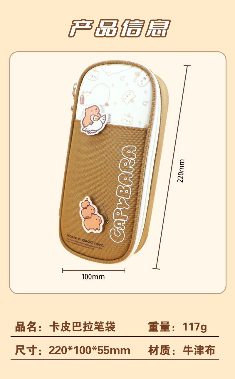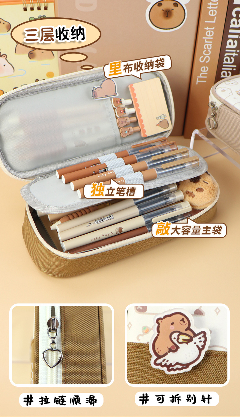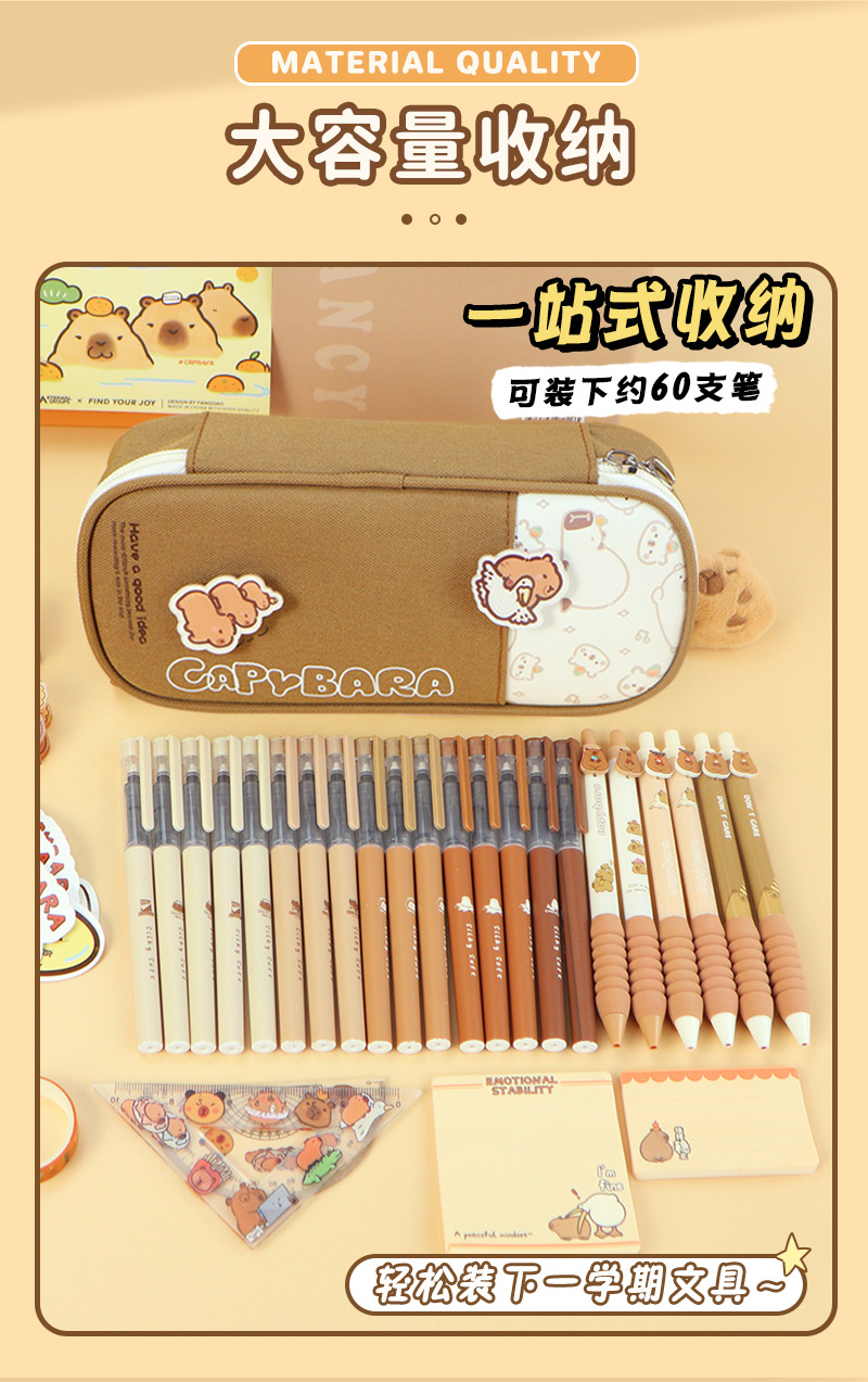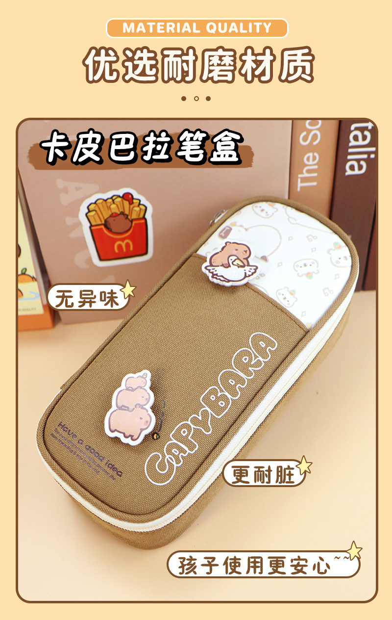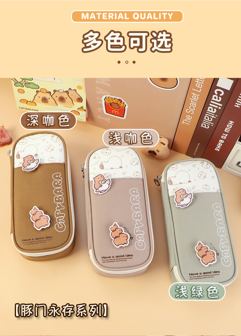 新款卡皮巴拉大容量笔袋高颜值女小学生文具盒初中女孩可爱铅笔盒
