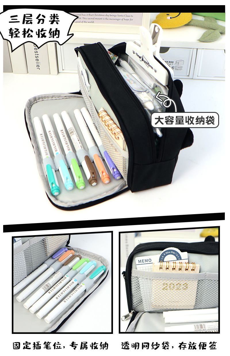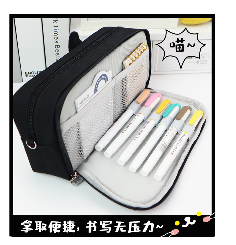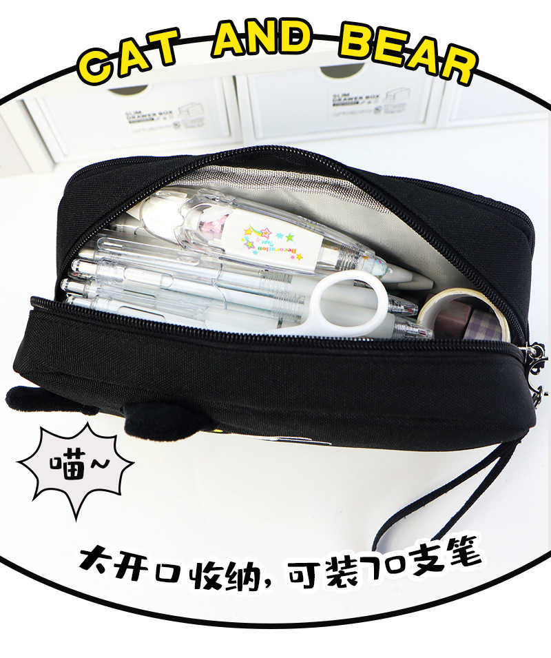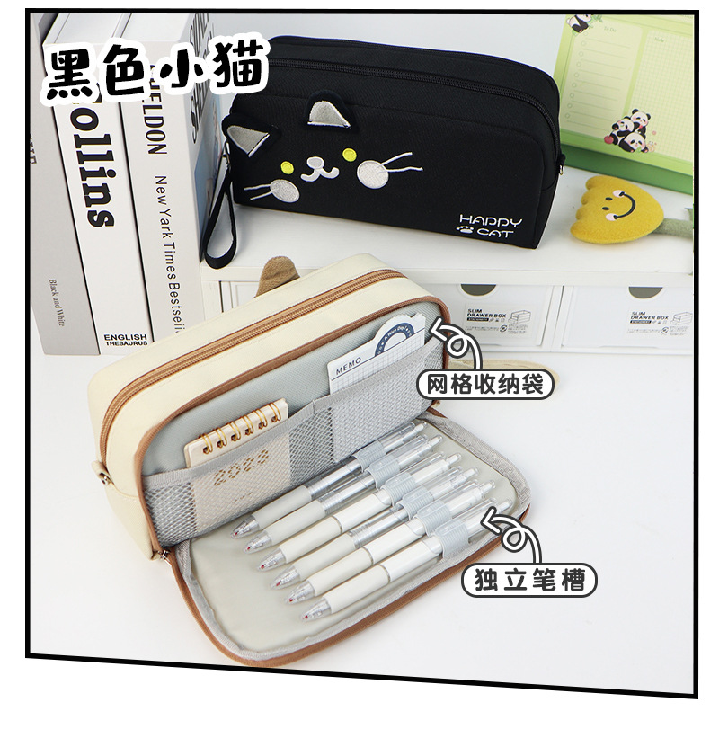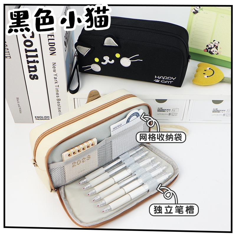 大容量笔袋初中生女生文具盒网红新款猫咪高颜值文具袋小众ins风