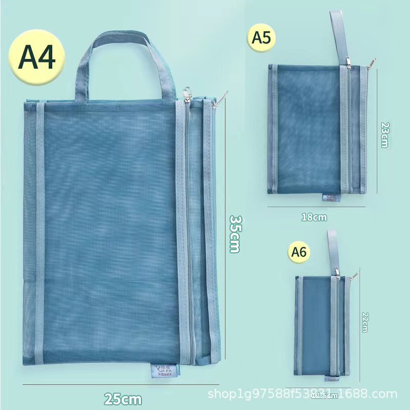 莫兰迪手提文件袋尼龙网纱袋拎书袋双层透明笔袋分类票据袋文件袋