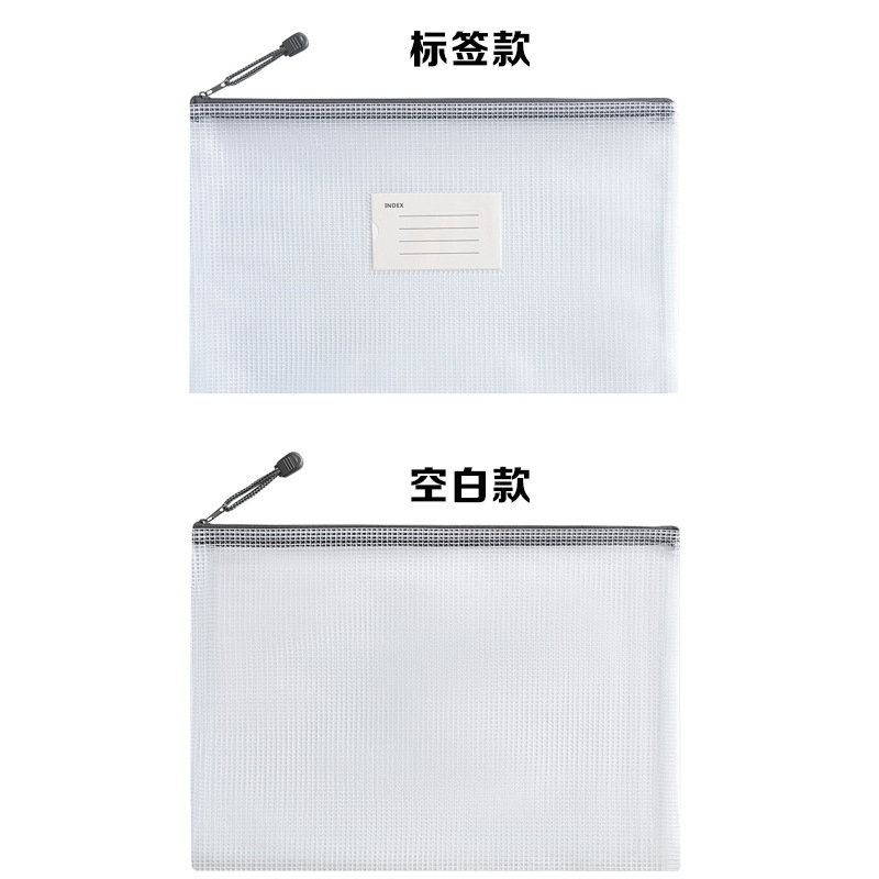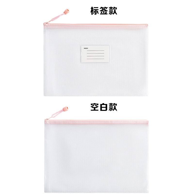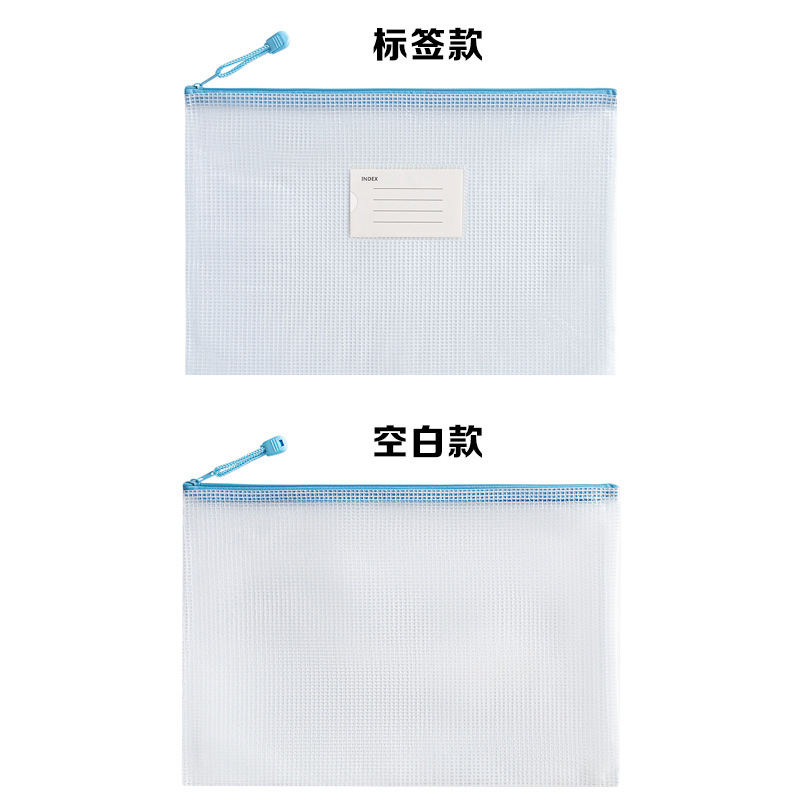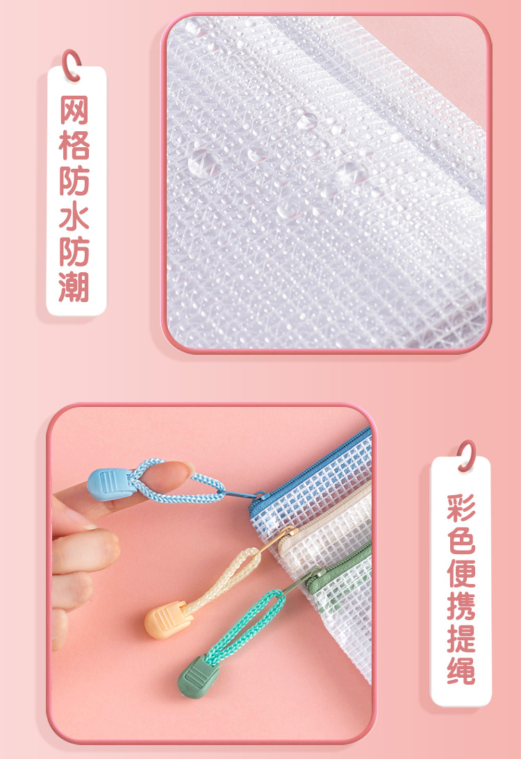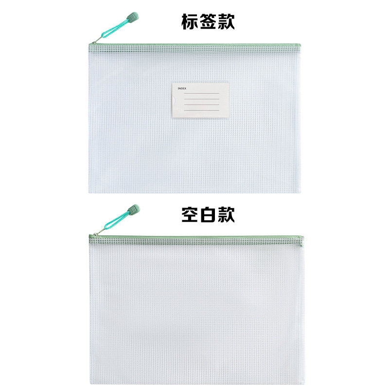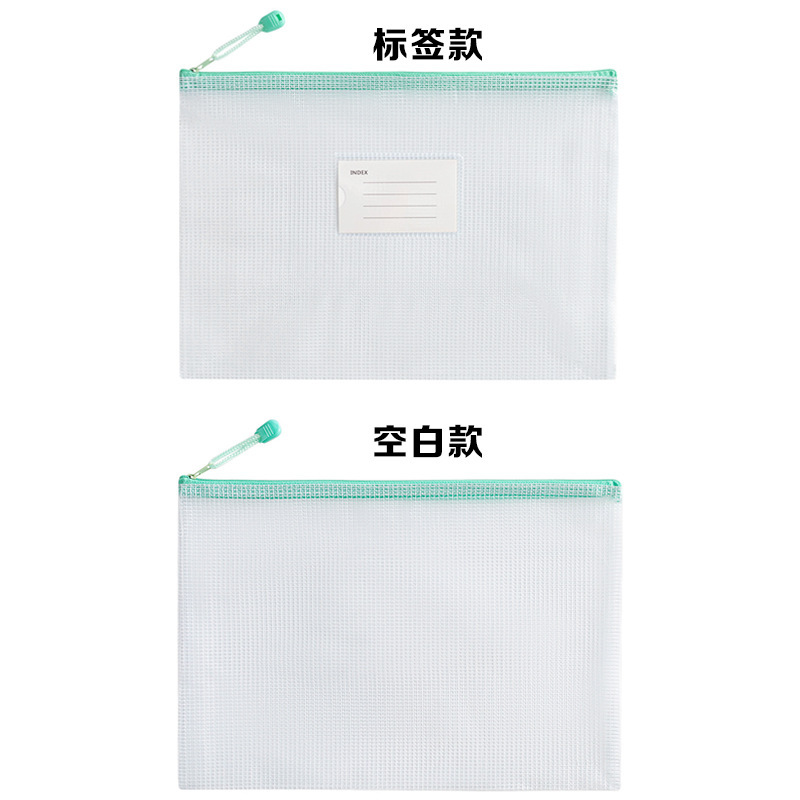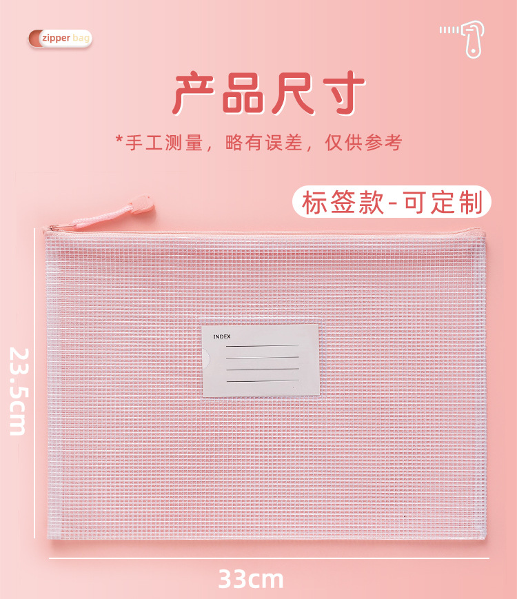 莫兰迪网格拉链袋防水透明办公资料袋学生课本分类收纳袋A4文件袋