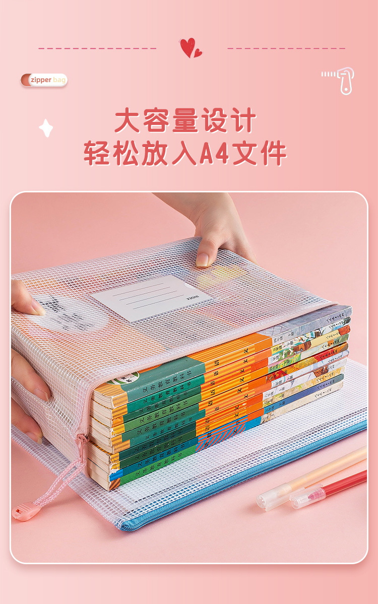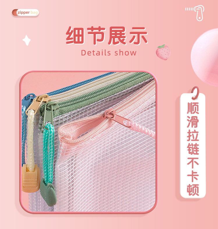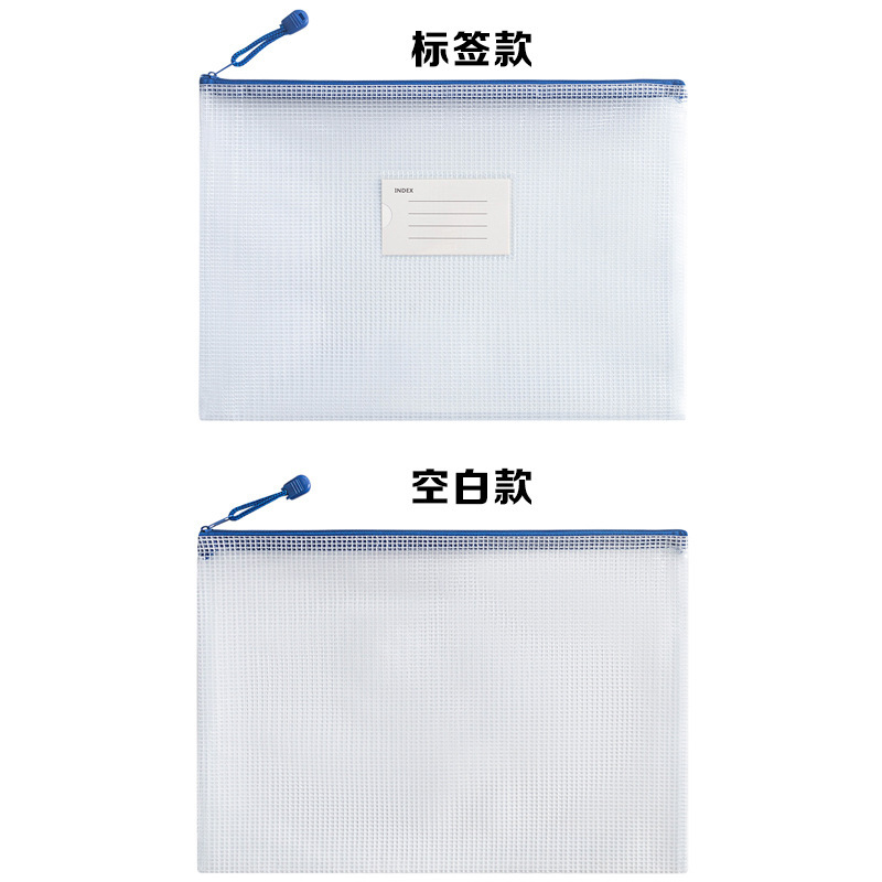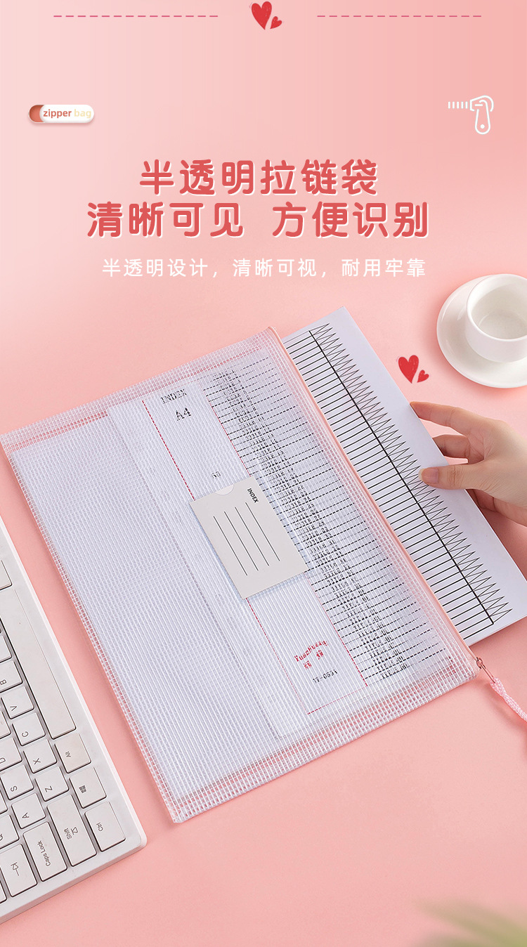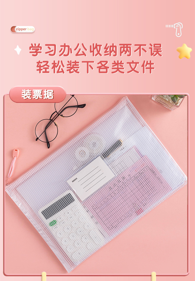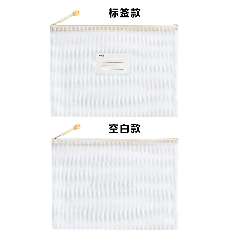 莫兰迪网格拉链袋防水透明办公资料袋学生课本分类收纳袋A4文件袋