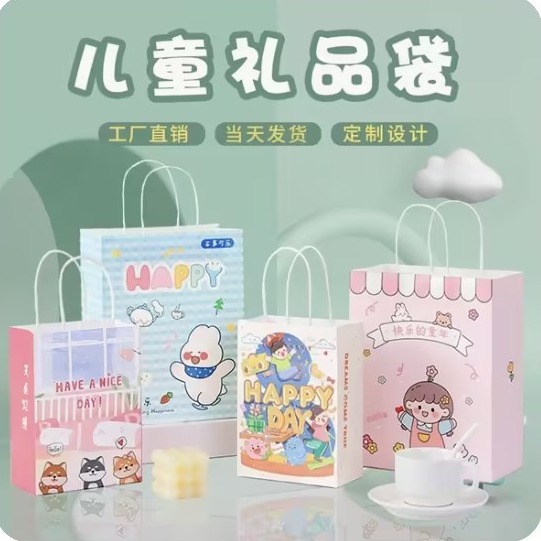 动漫时尚精美图案幼儿园礼物袋子牛皮纸袋宝宝满月回礼手拎袋订制