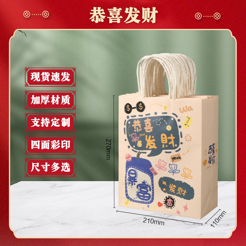 节日礼品袋新年款伴手礼袋牛皮纸手提袋定制眼镜包装纸袋现货加厚