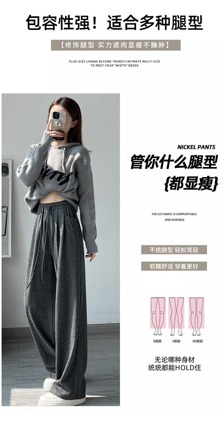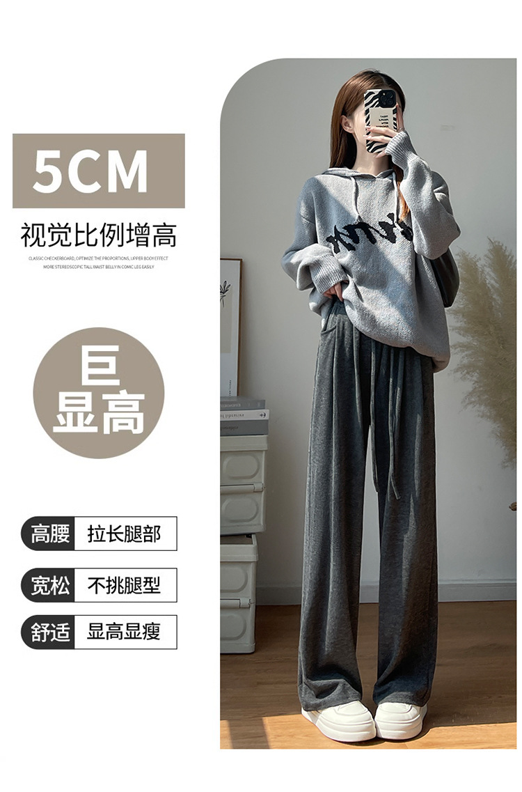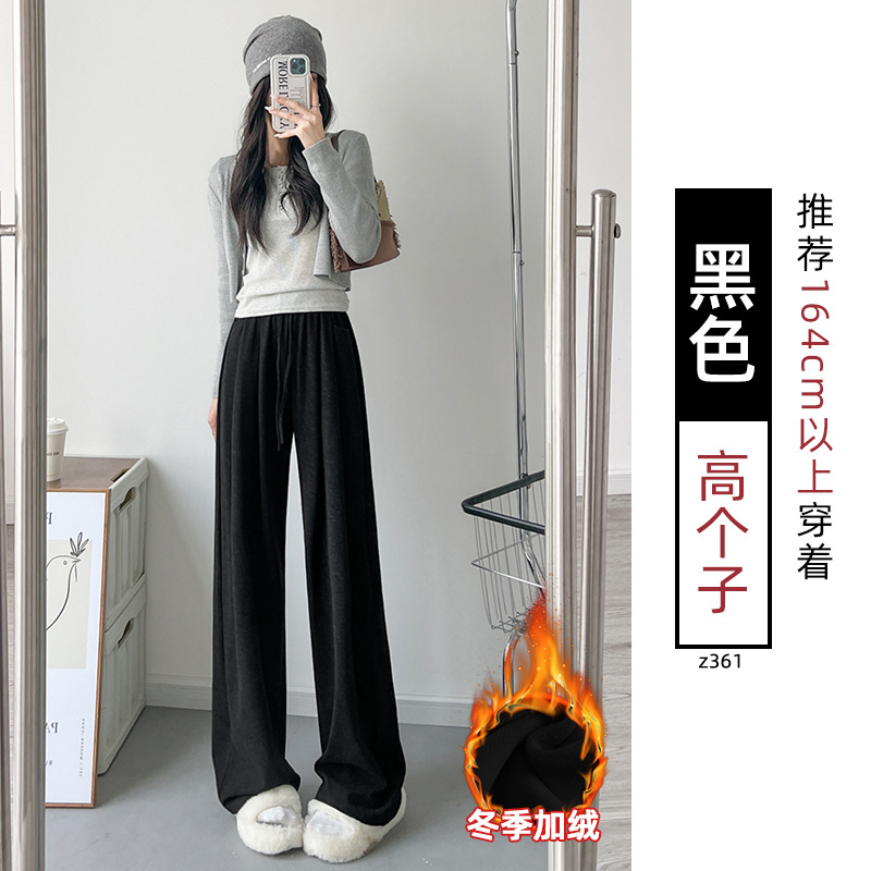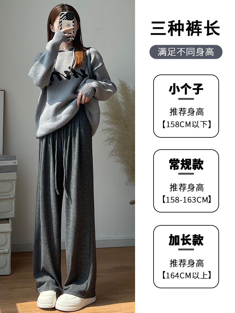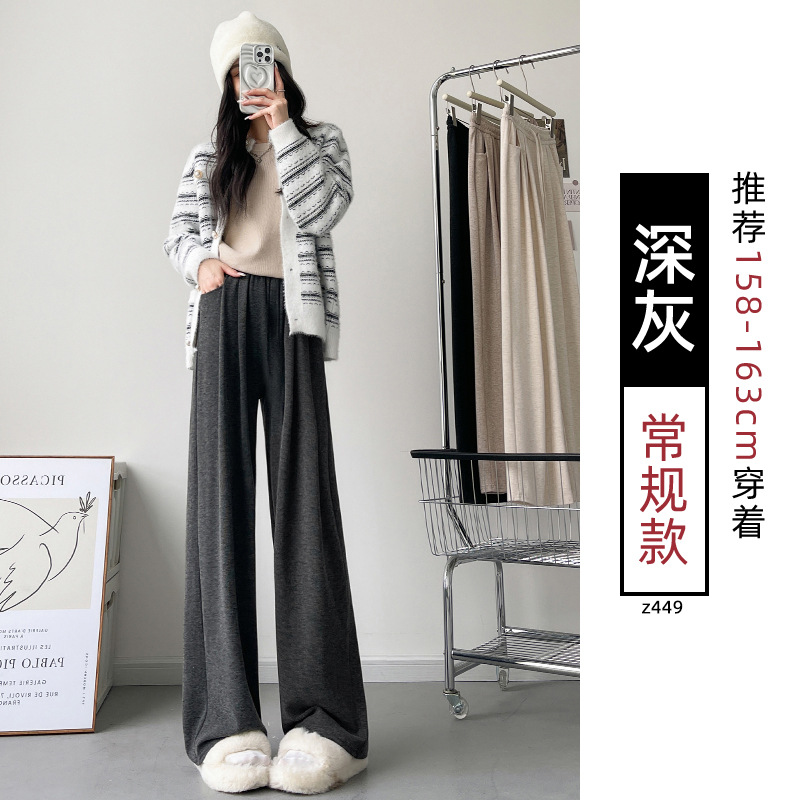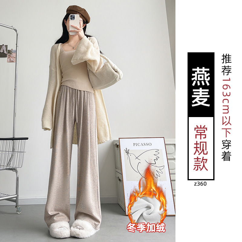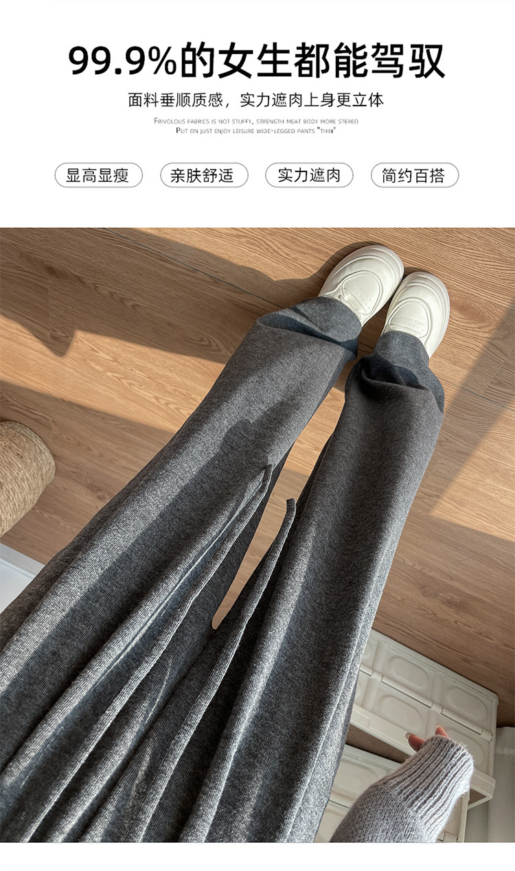 灰色糯米裤女春秋2024新款高腰显瘦小个子直筒休闲慵懒加绒阔腿裤