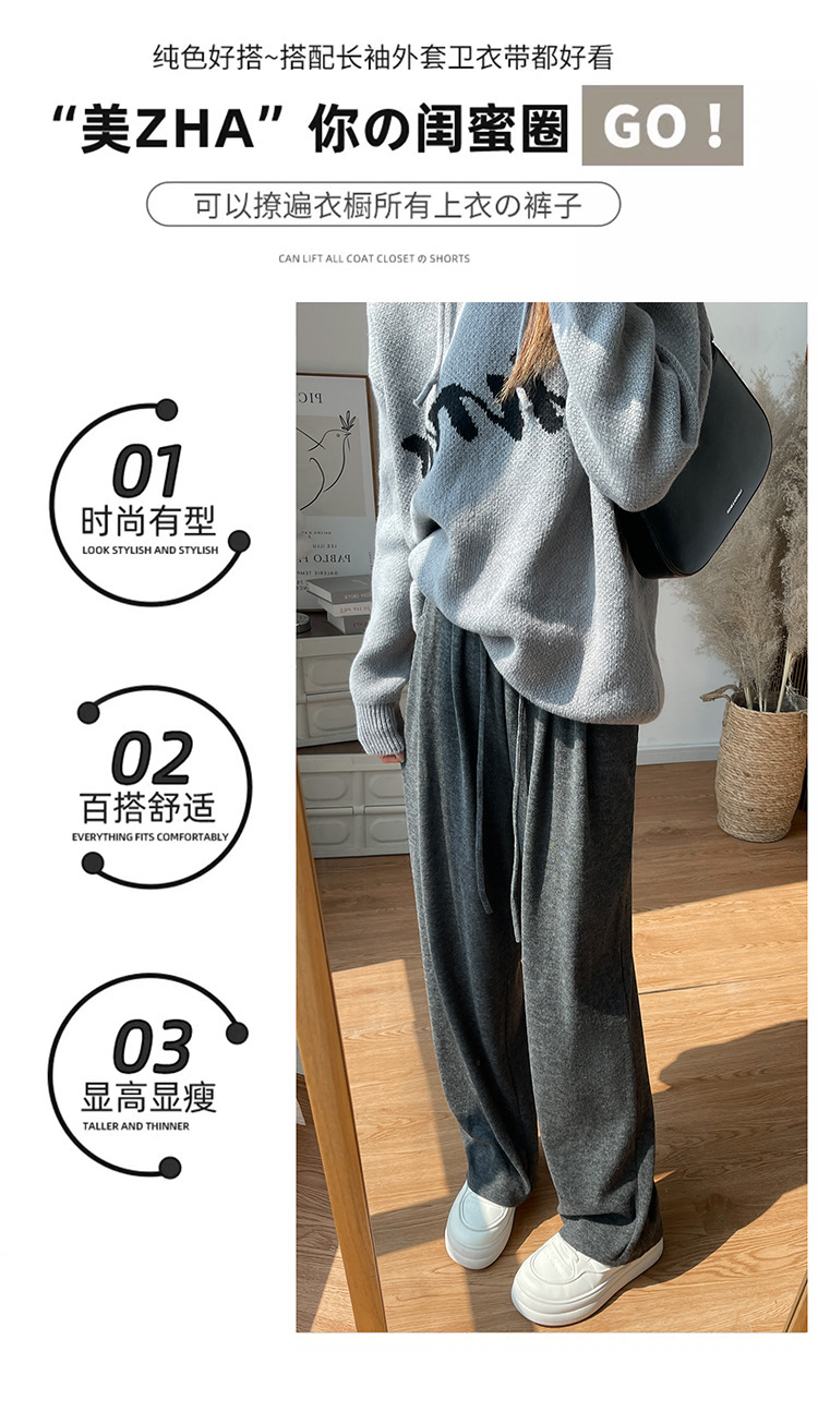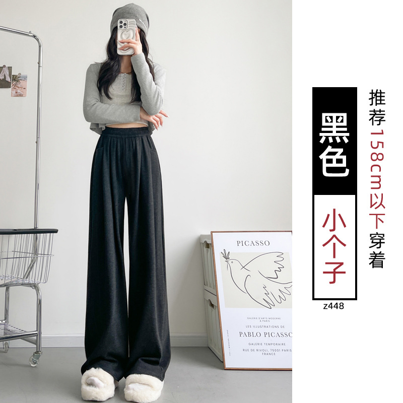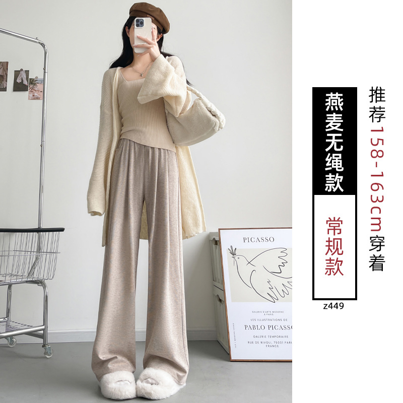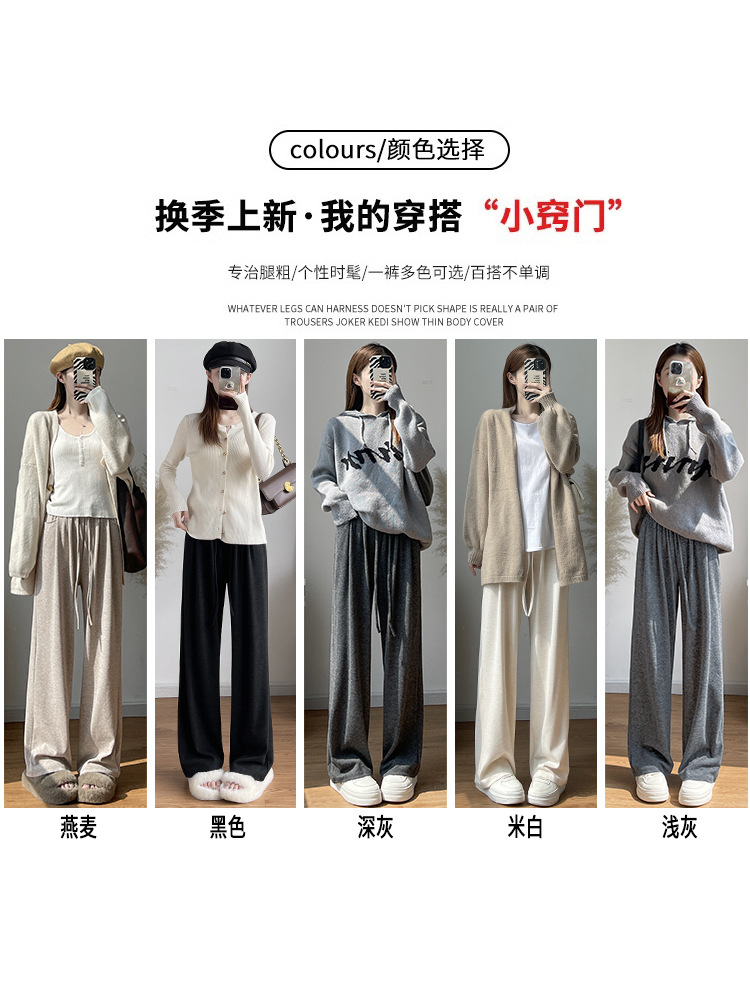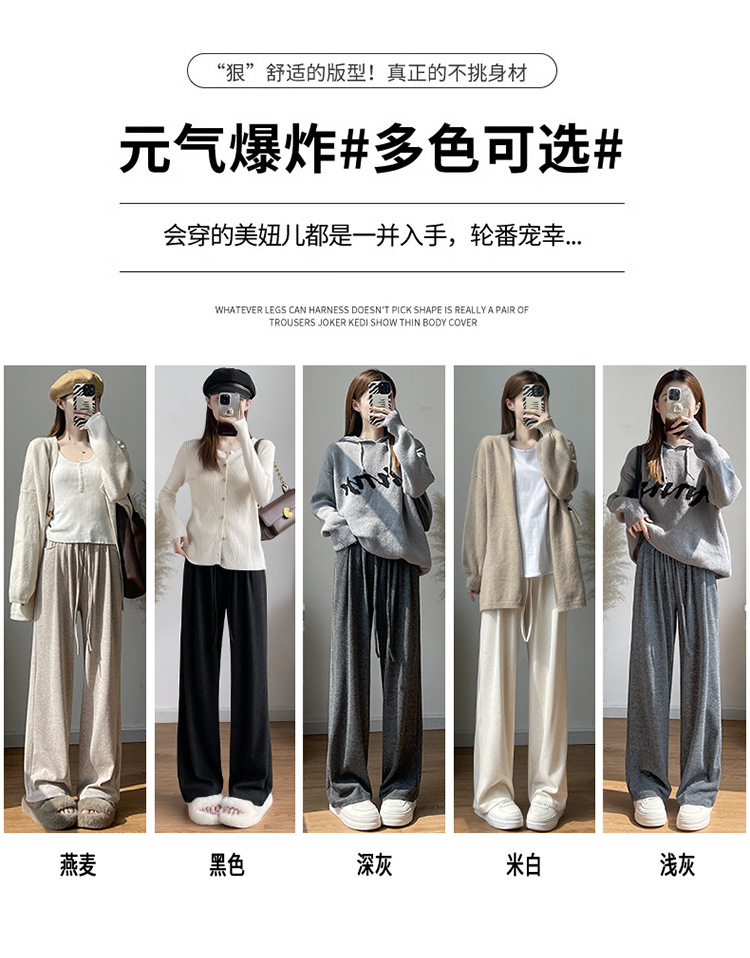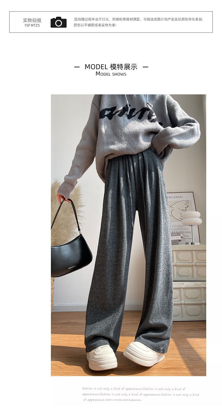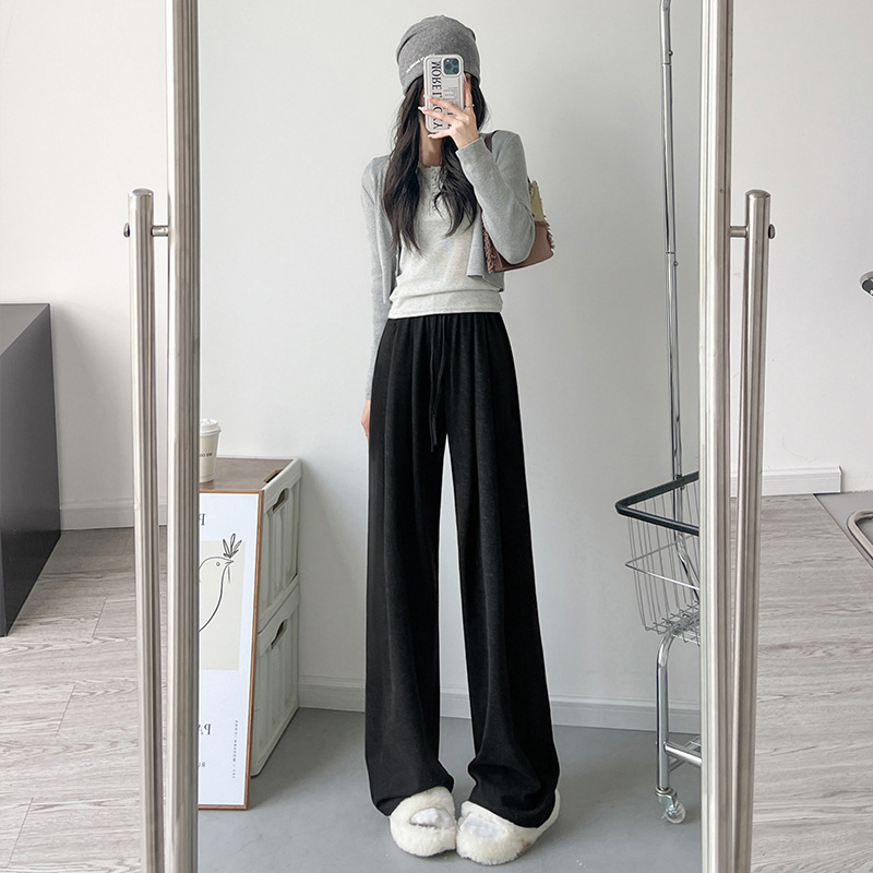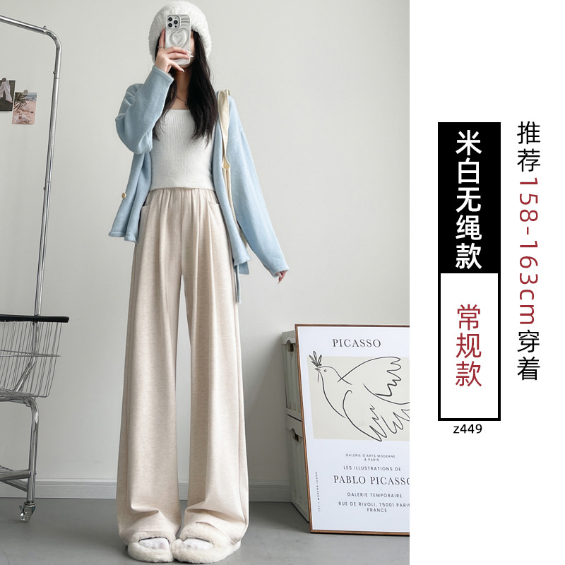 灰色糯米裤女春秋2024新款高腰显瘦小个子直筒休闲慵懒加绒阔腿裤