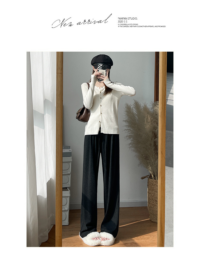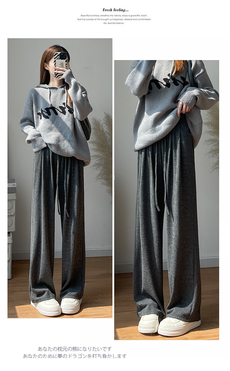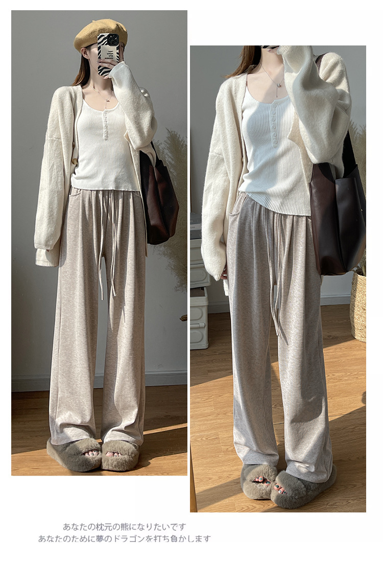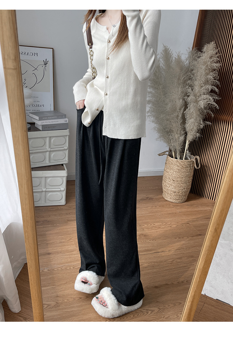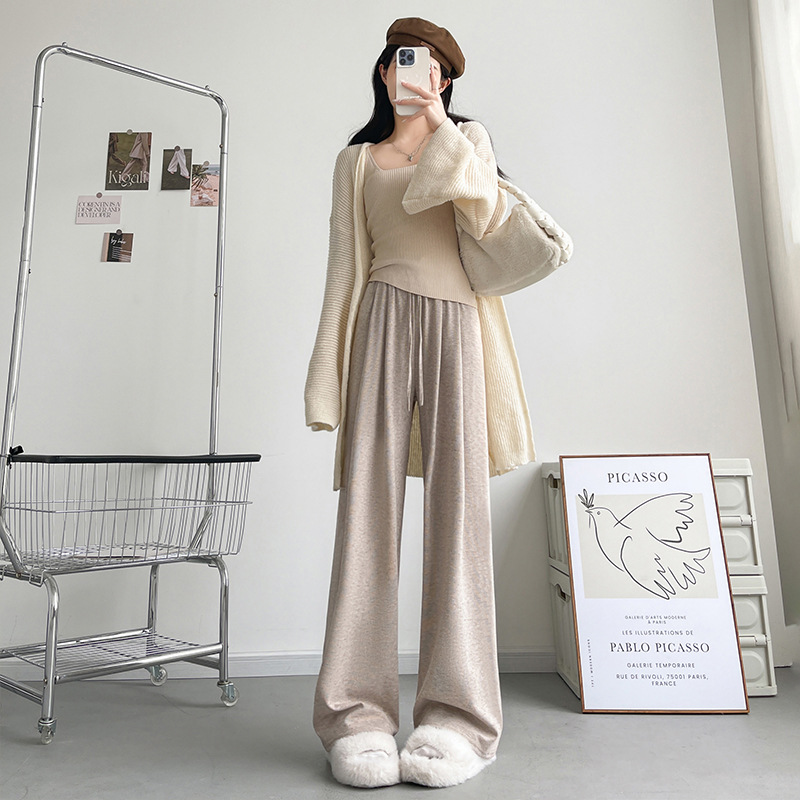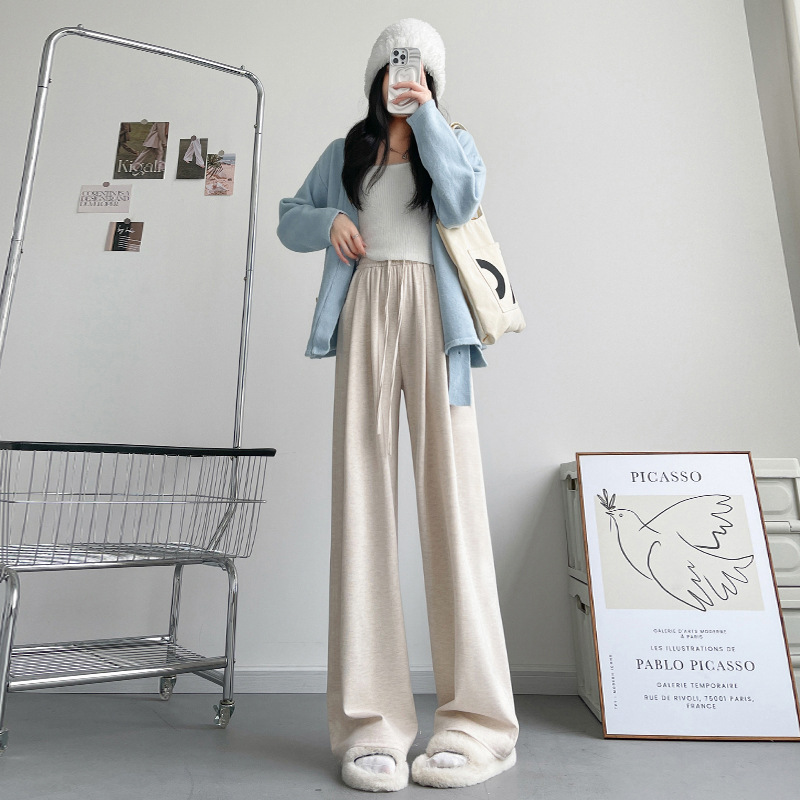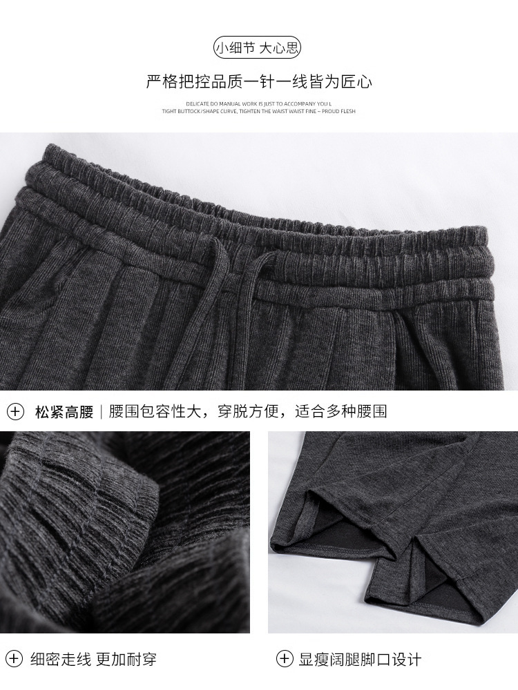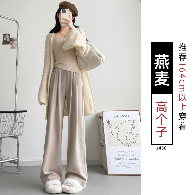灰色糯米裤女春秋2024新款高腰显瘦小个子直筒休闲慵懒加绒阔腿裤