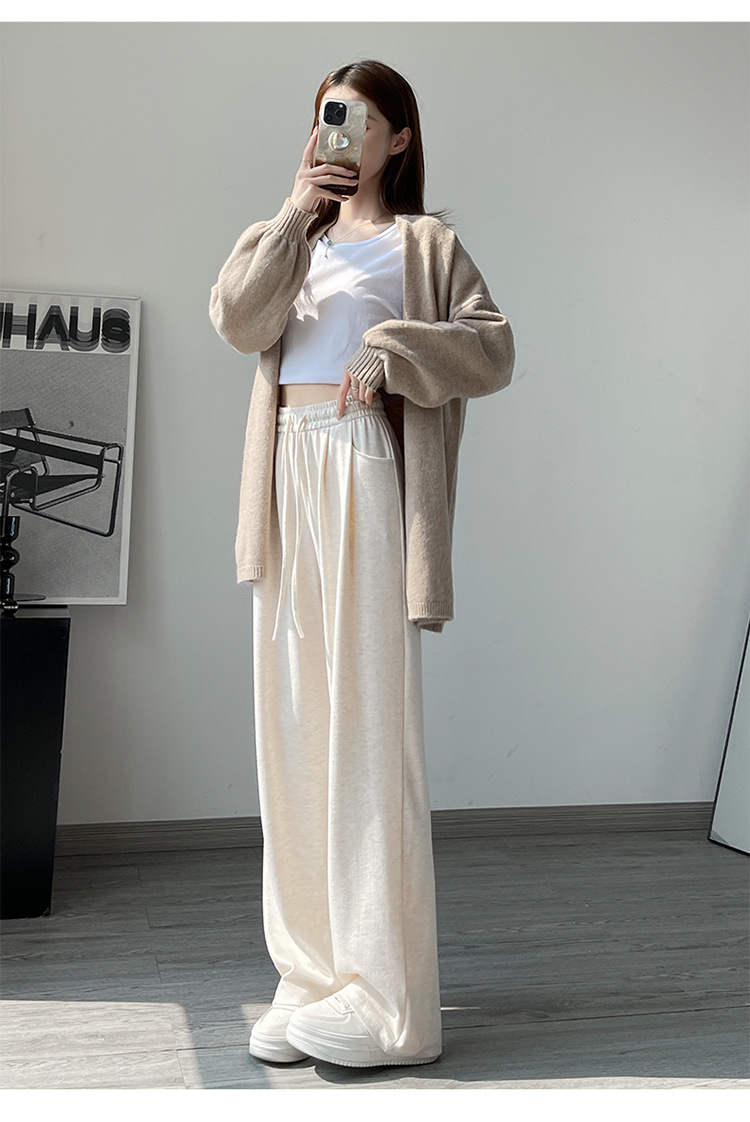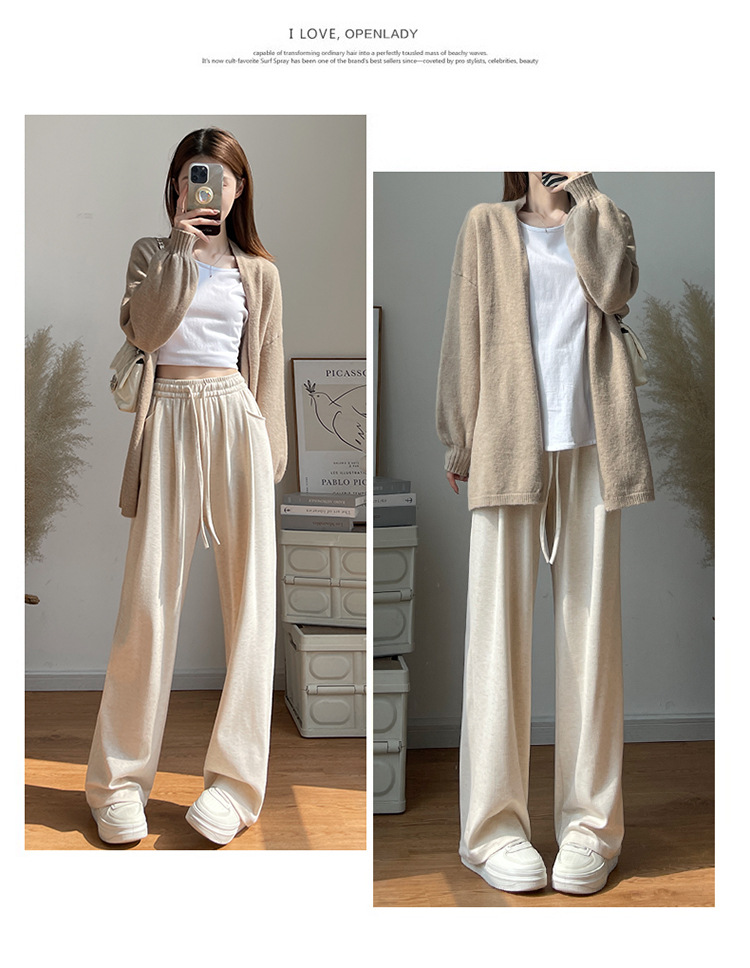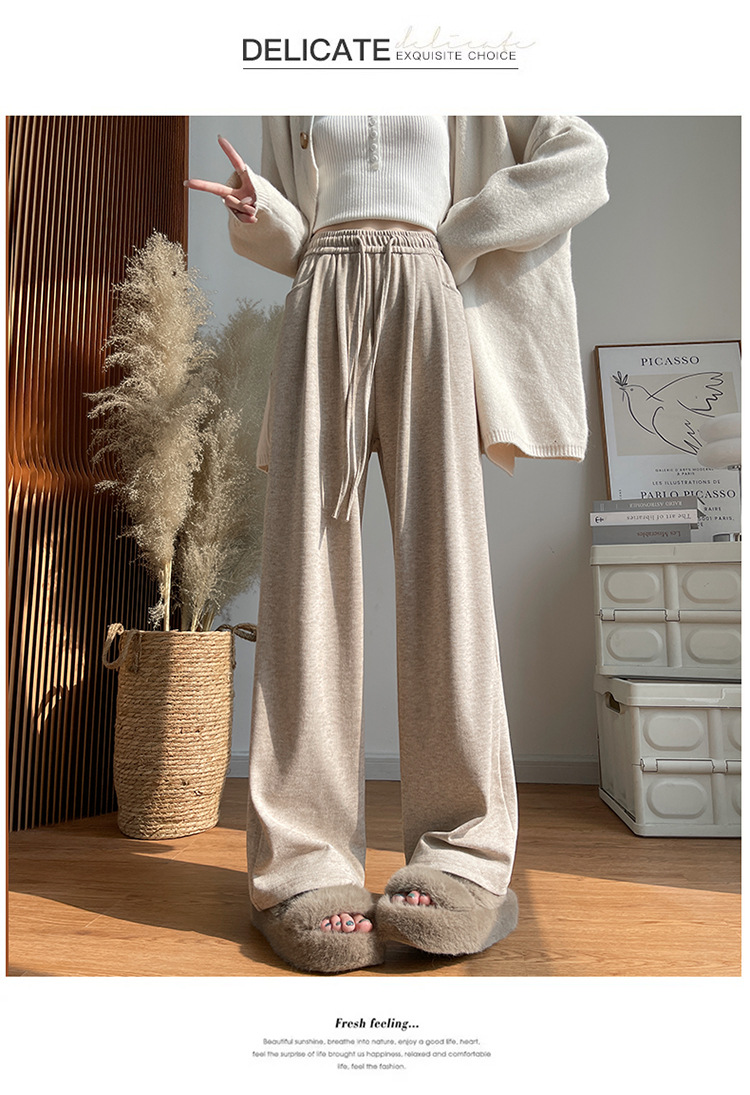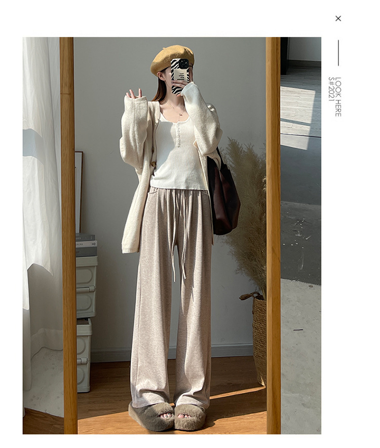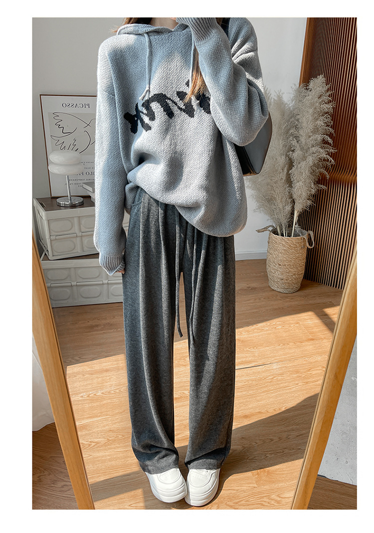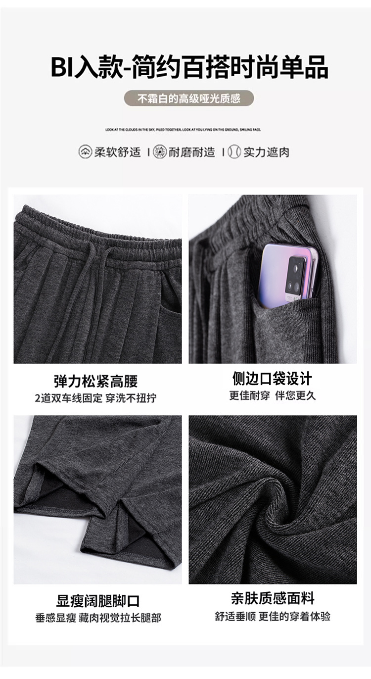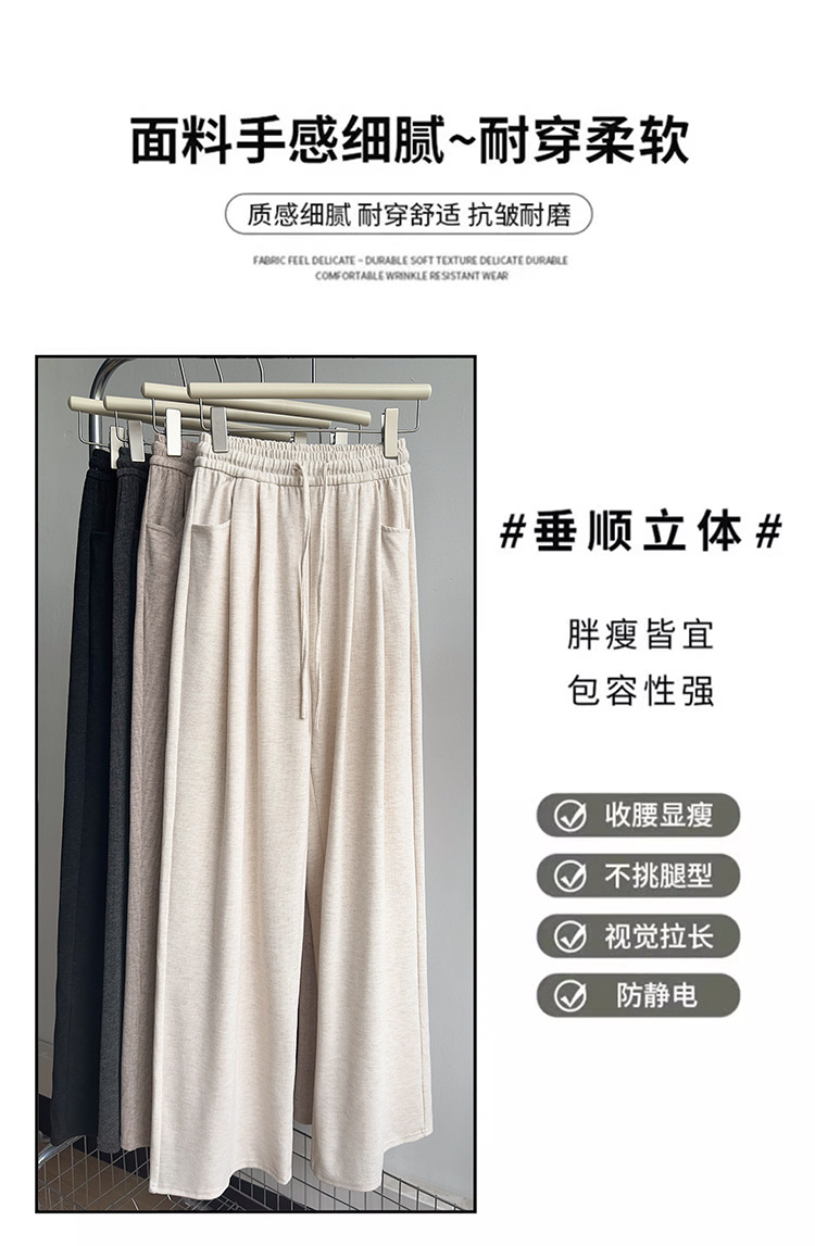 灰色糯米裤女春秋2024新款高腰显瘦小个子直筒休闲慵懒加绒阔腿裤