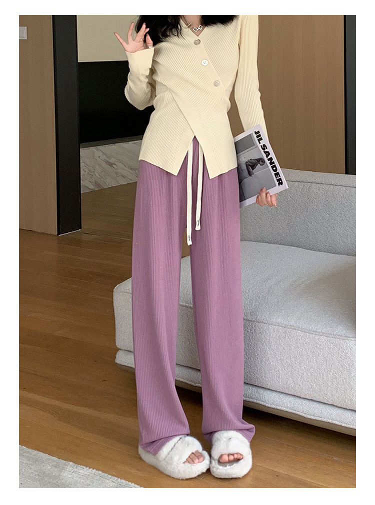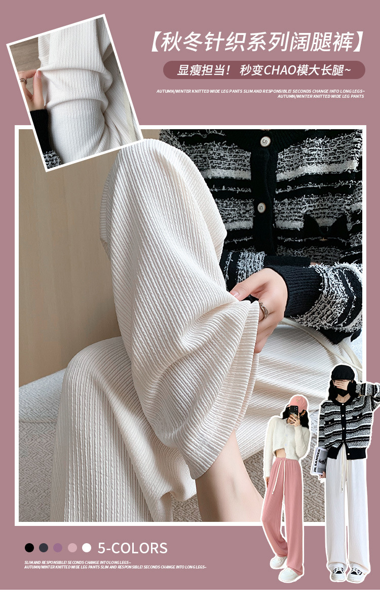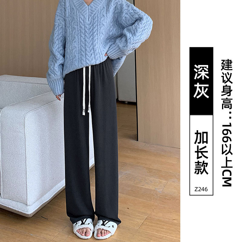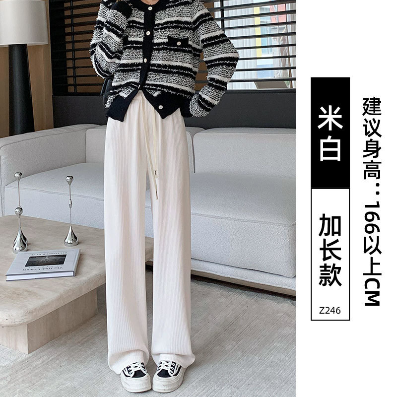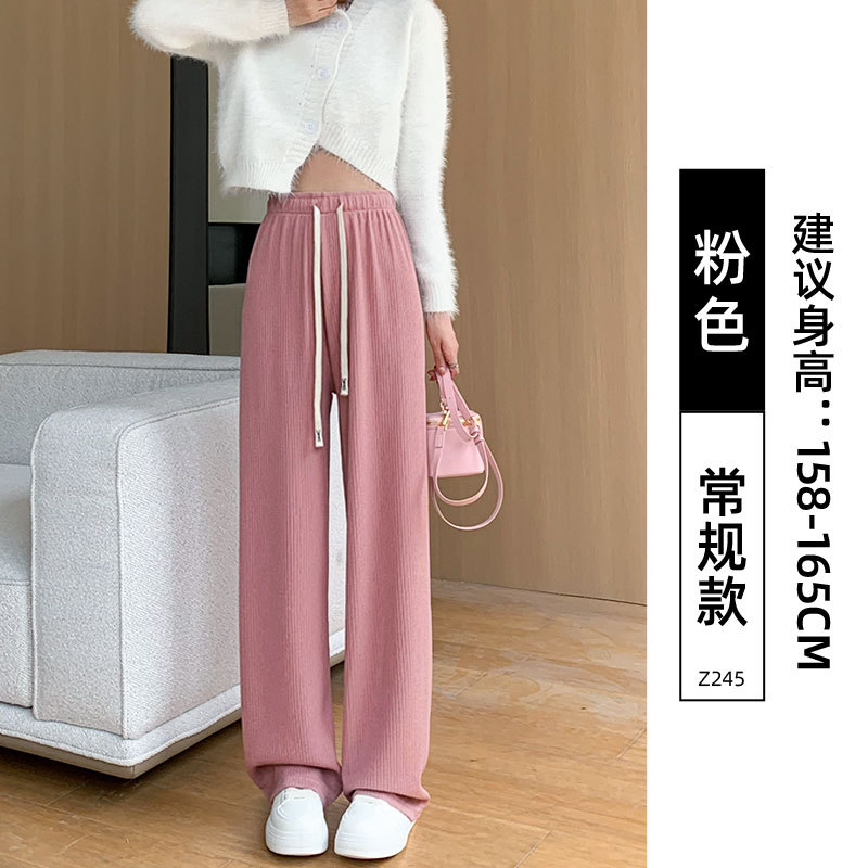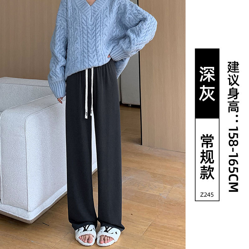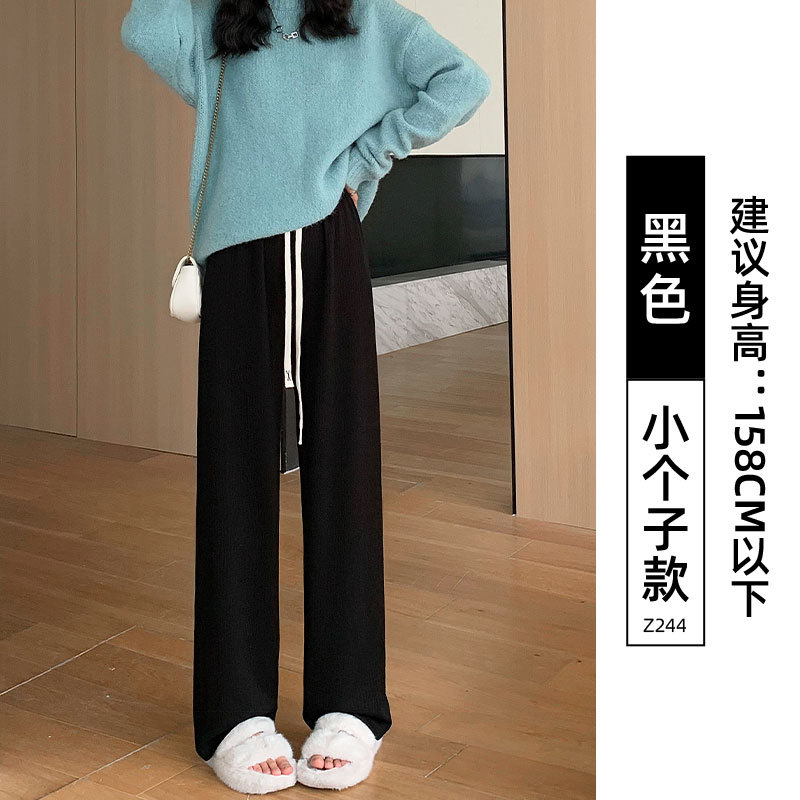 云朵窄版阔腿裤女2024女装春季小个子新款高腰百搭直筒针织休闲裤