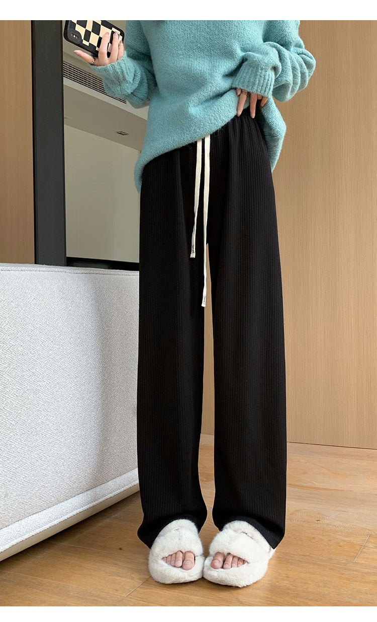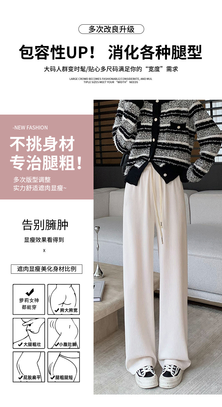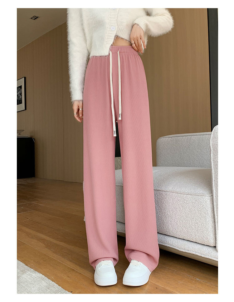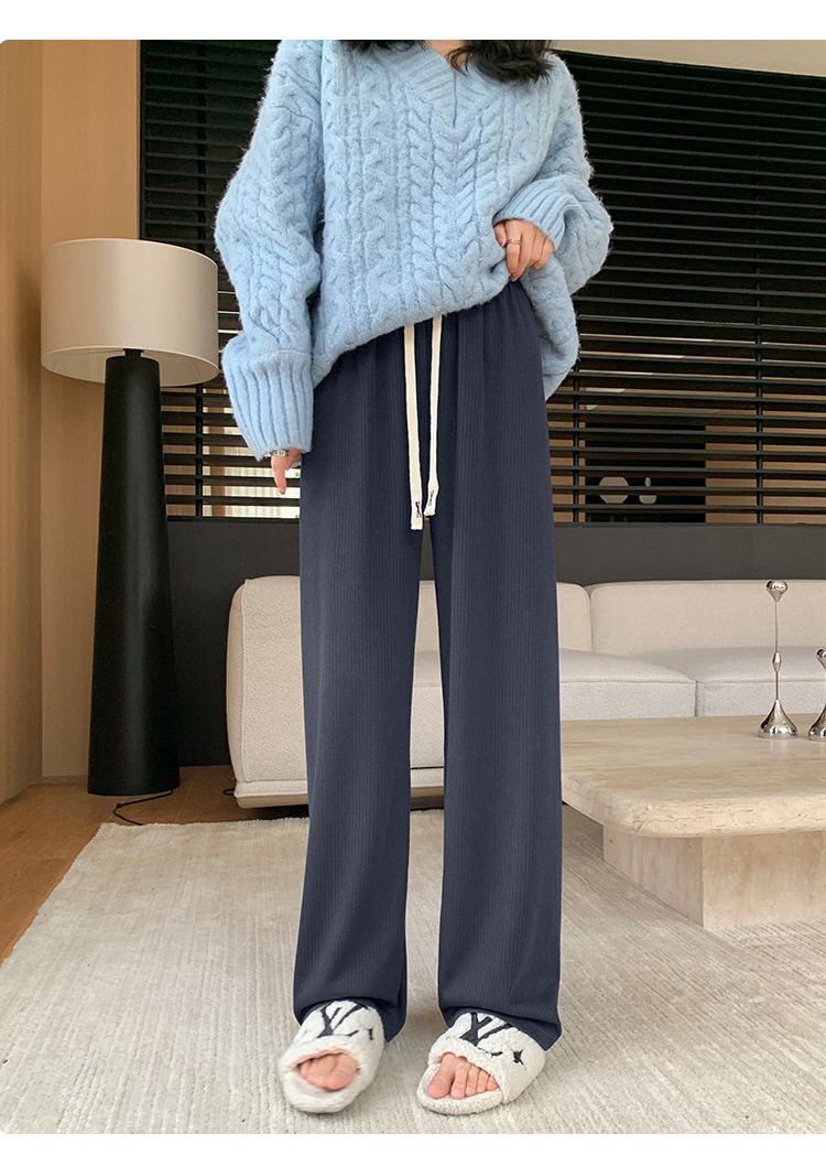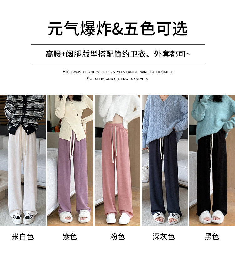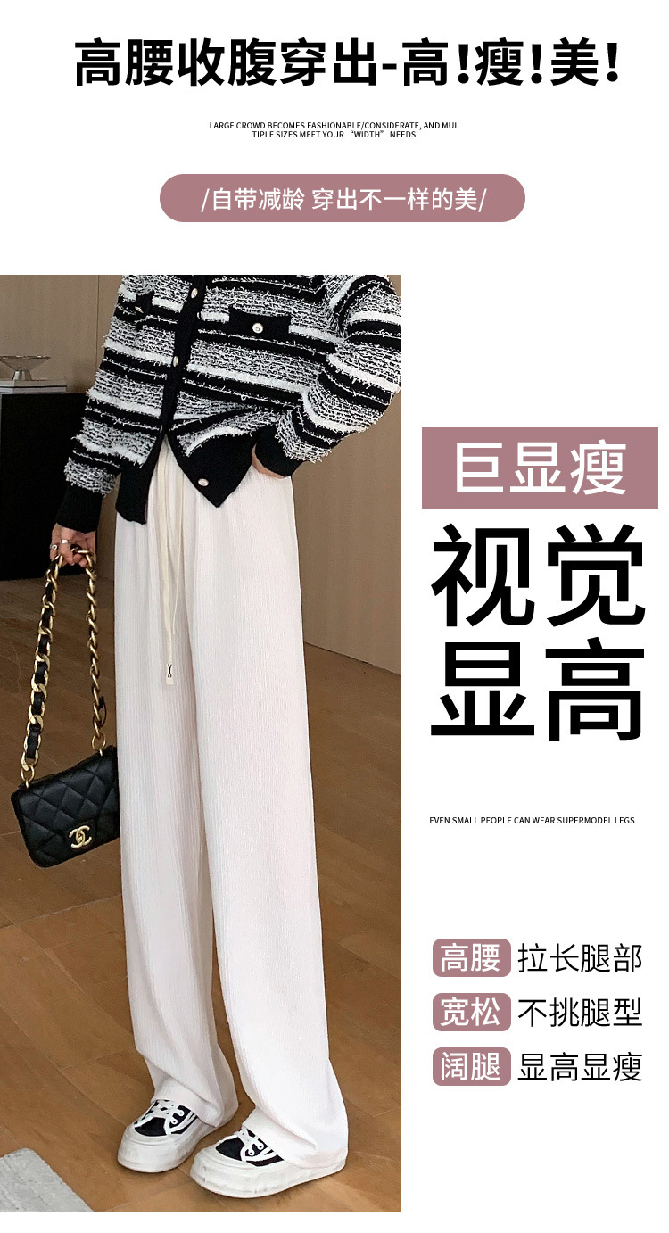 云朵窄版阔腿裤女2024女装春季小个子新款高腰百搭直筒针织休闲裤