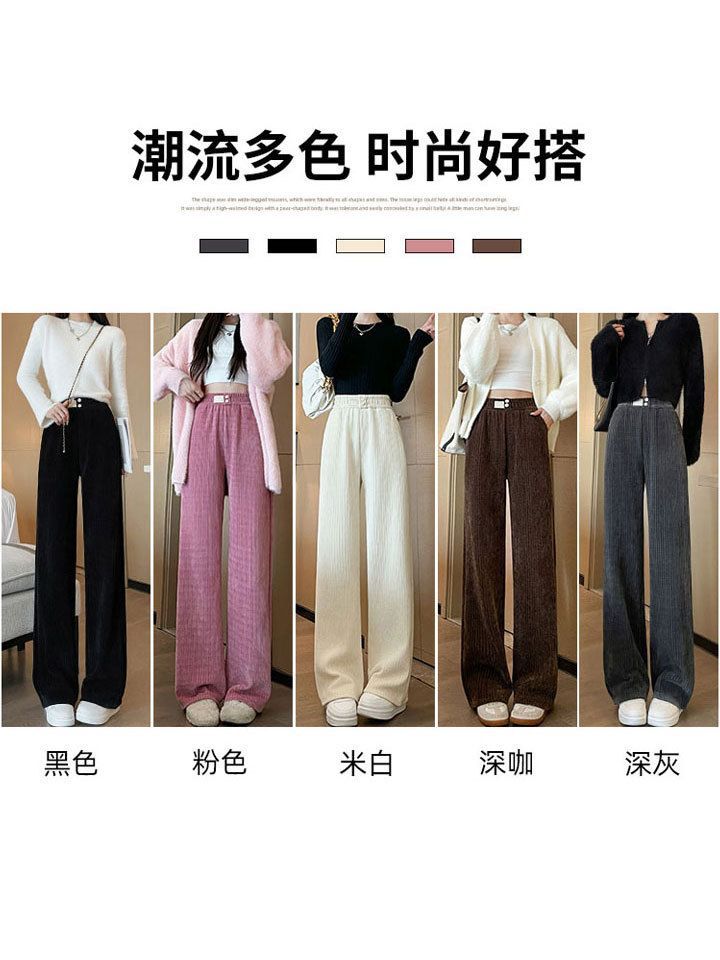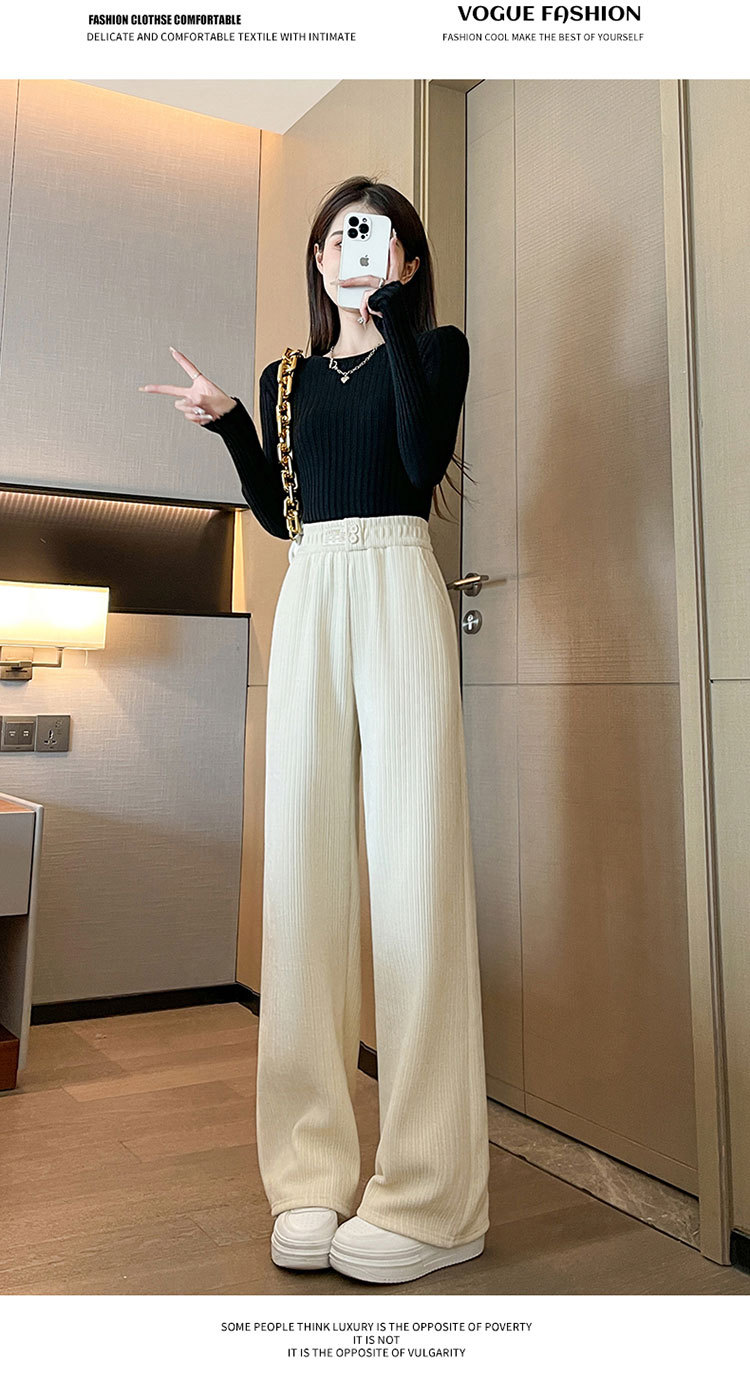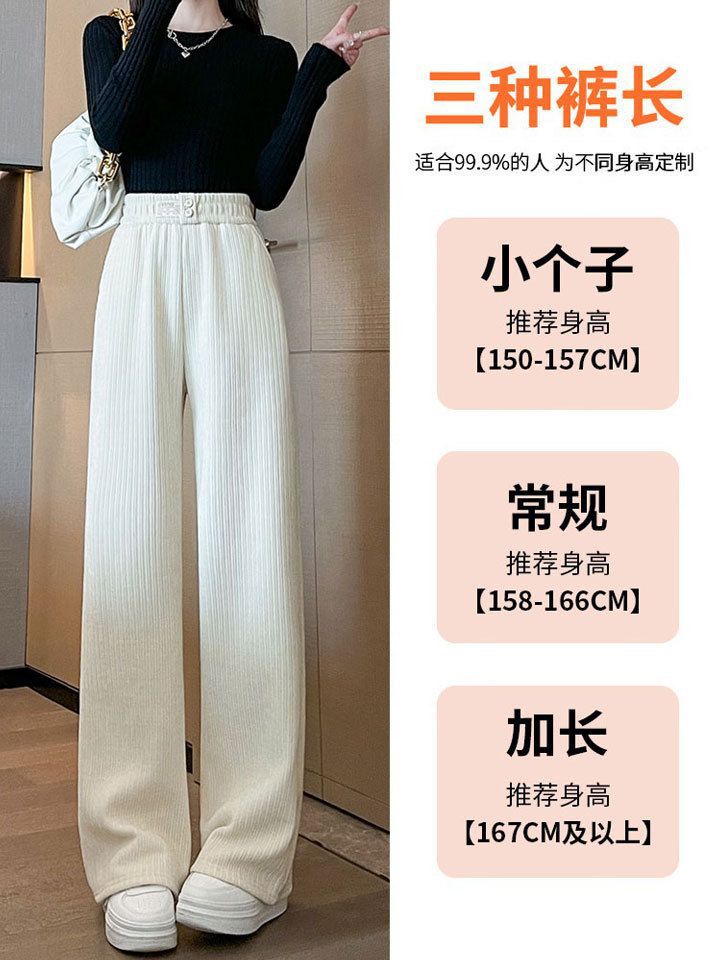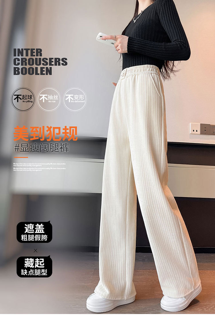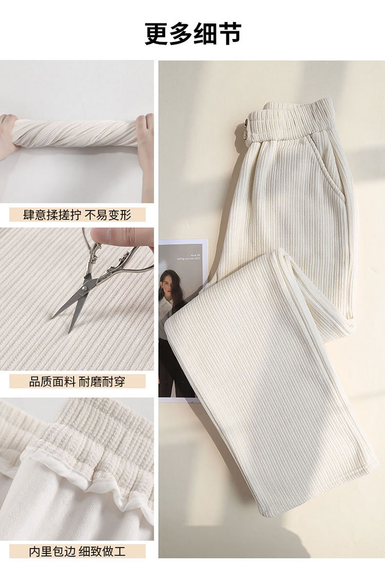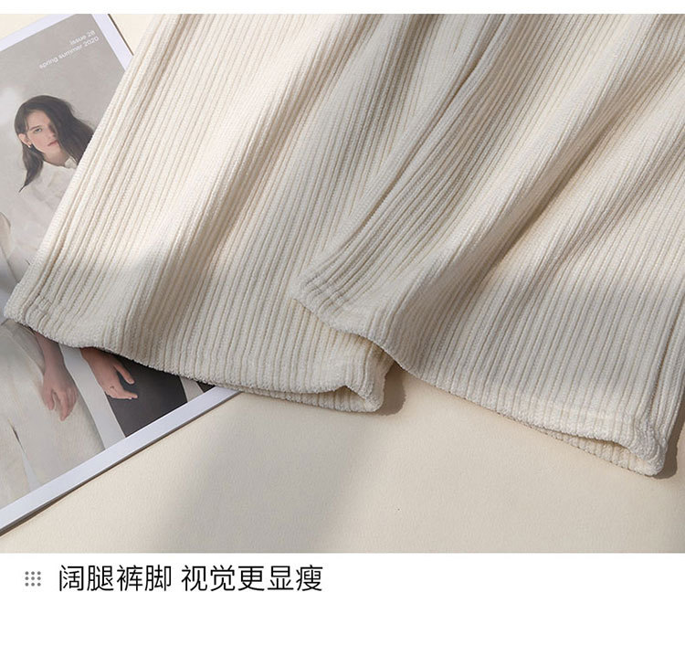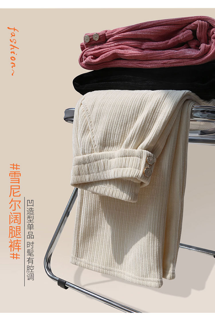米白色雪尼尔阔腿裤子女春秋冬季2024新款直筒针织灯芯绒休闲裤