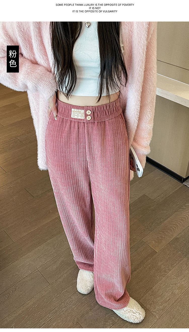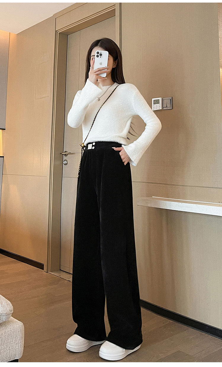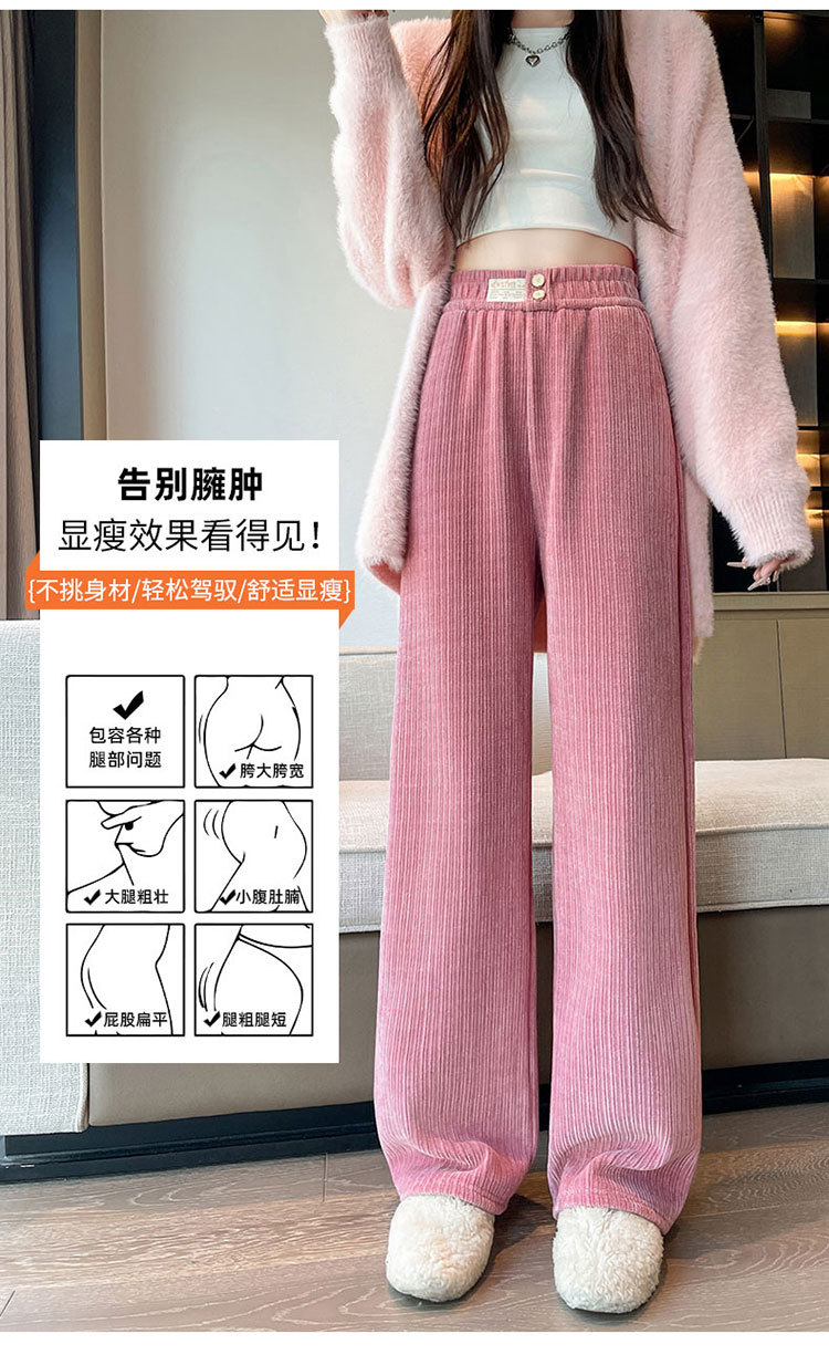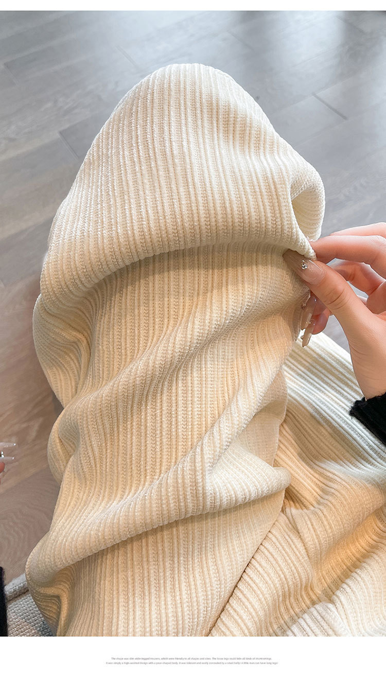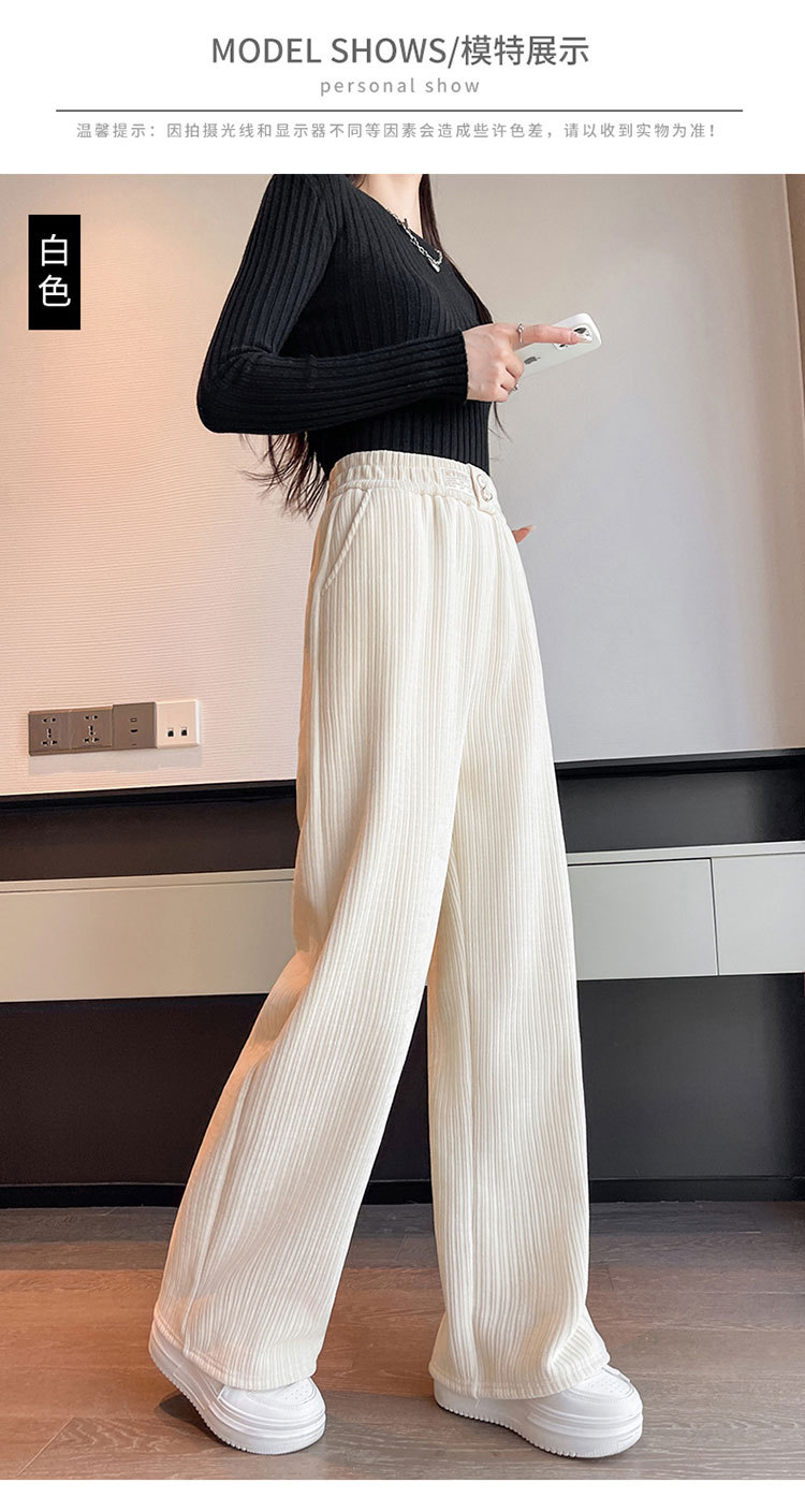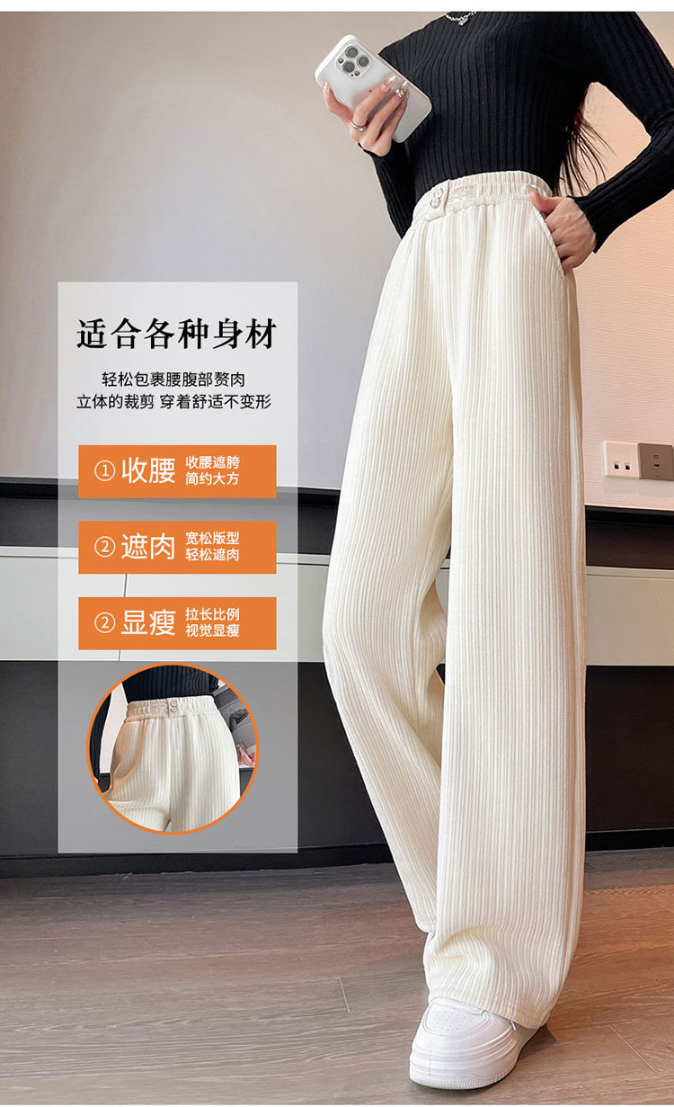 米白色雪尼尔阔腿裤子女春秋冬季2024新款直筒针织灯芯绒休闲裤