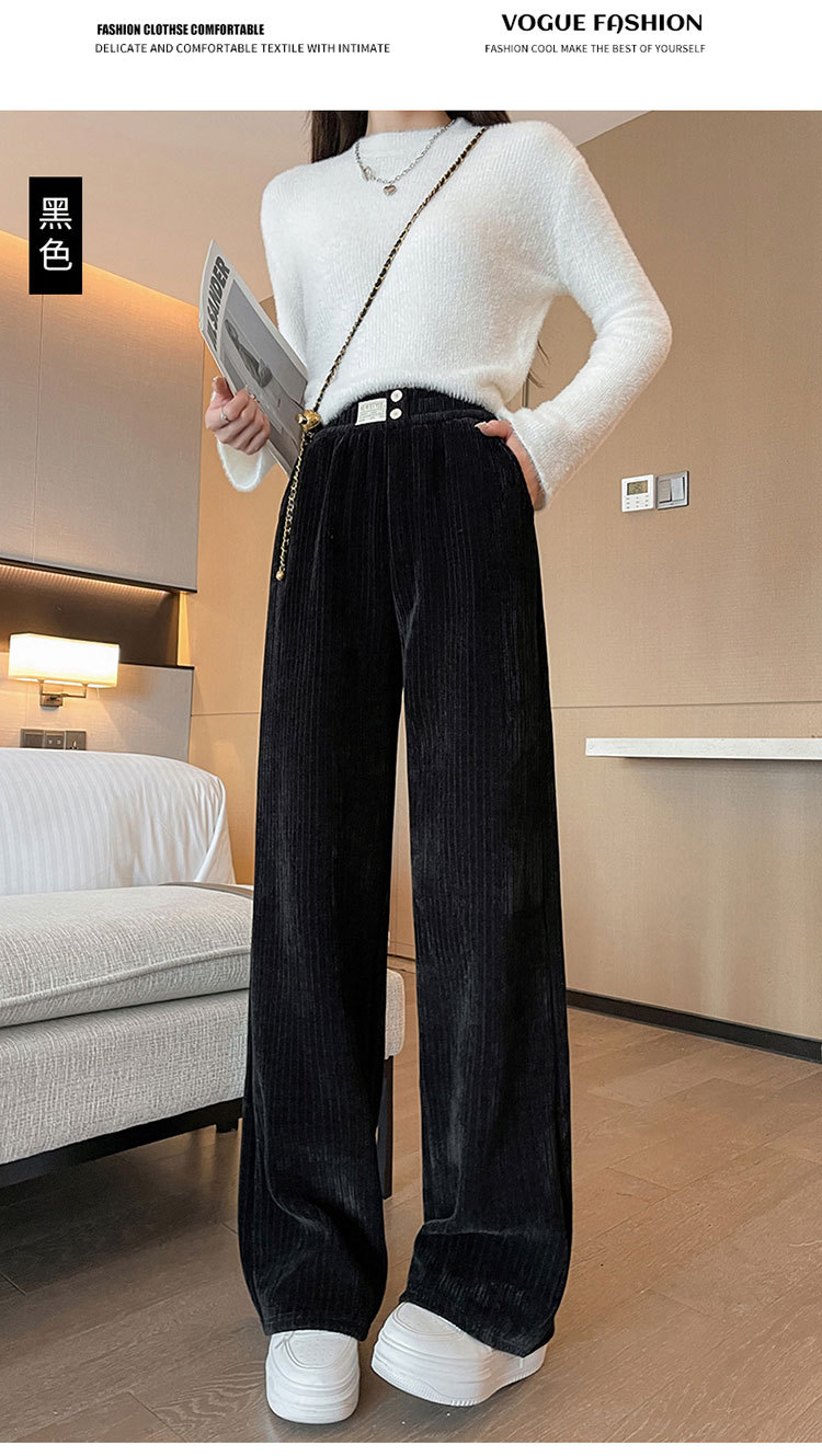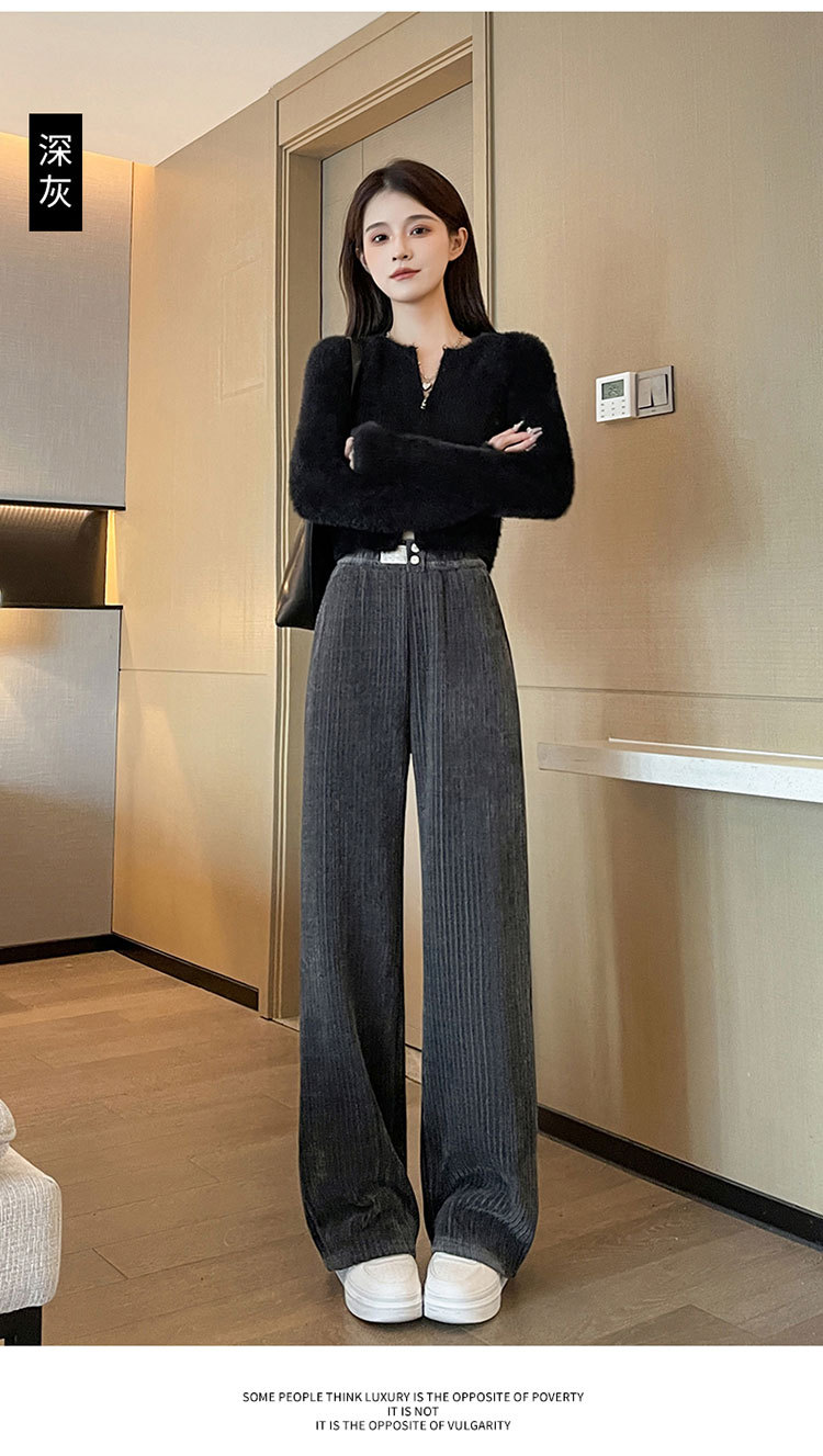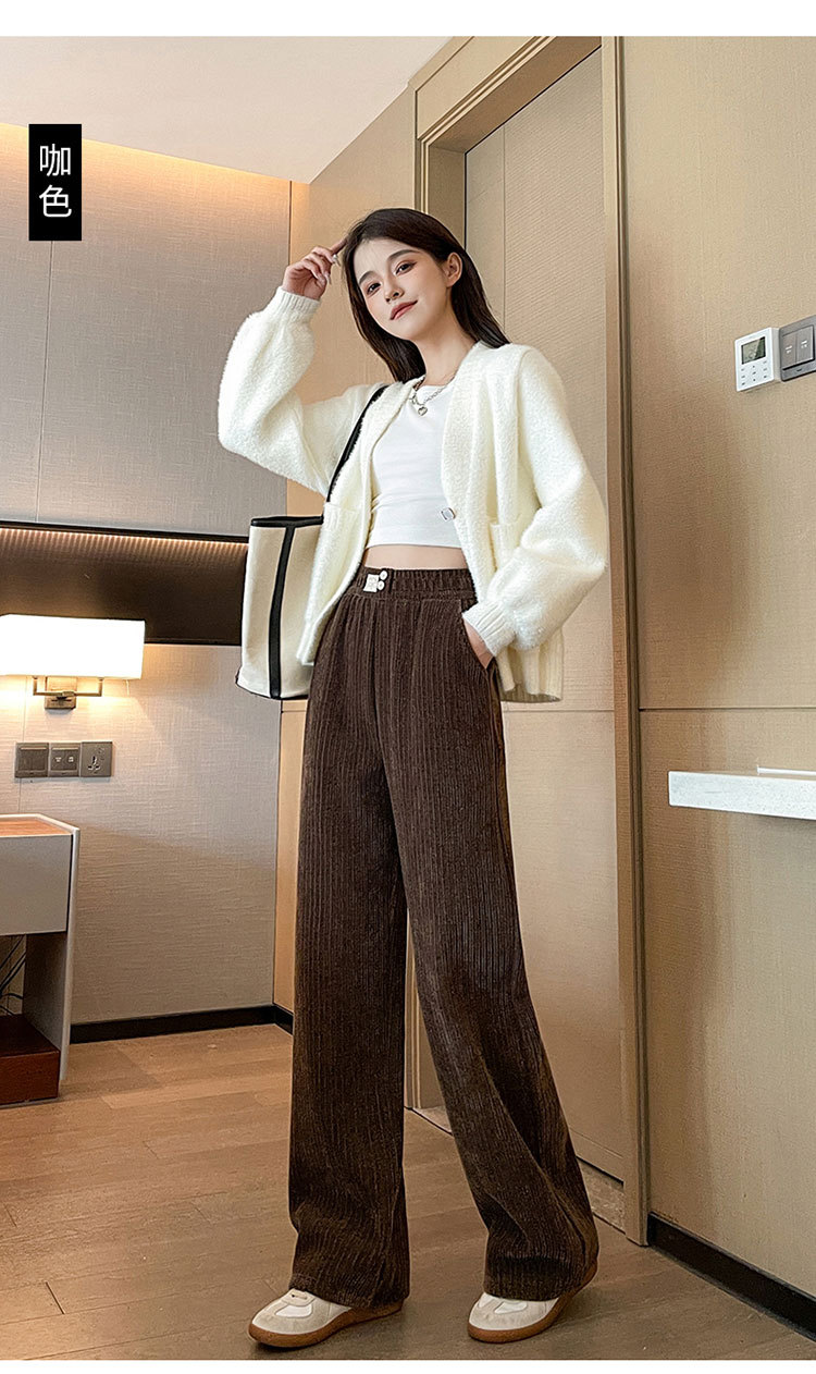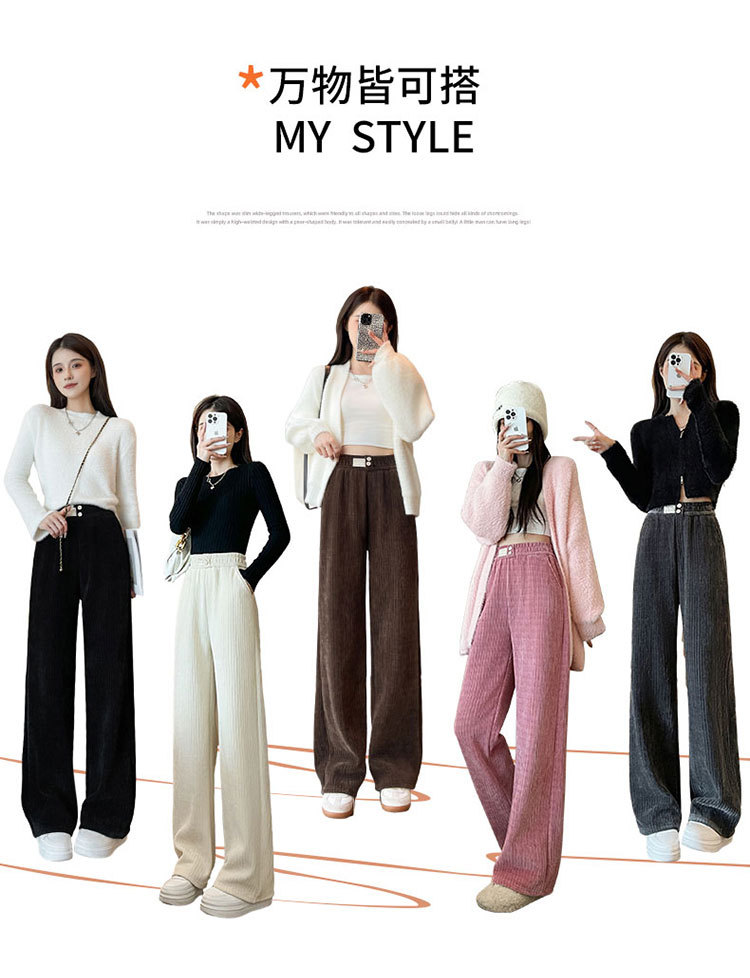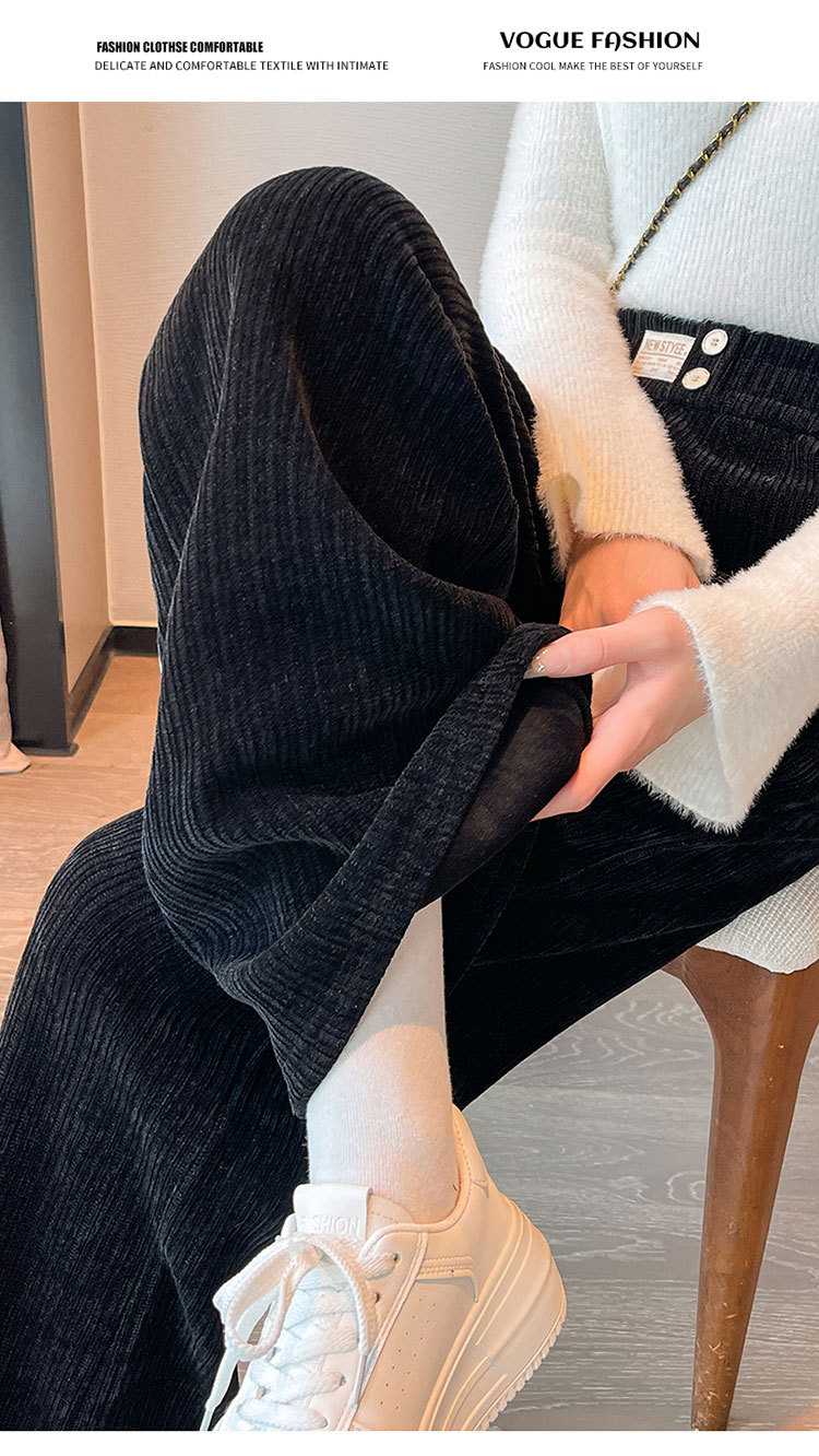 米白色雪尼尔阔腿裤子女春秋冬季2024新款直筒针织灯芯绒休闲裤