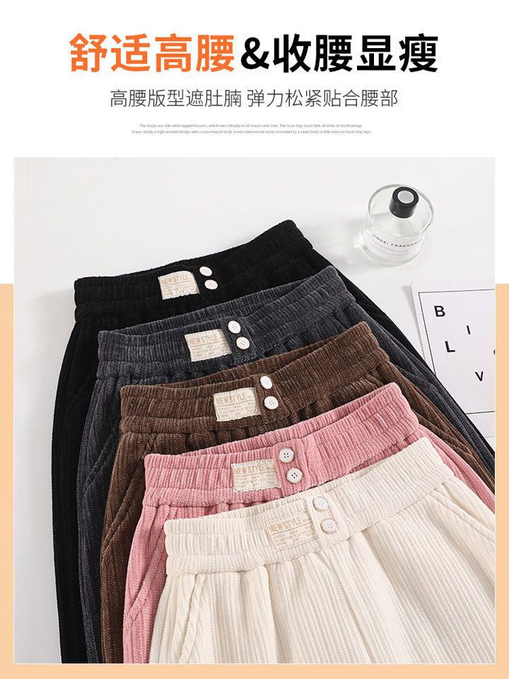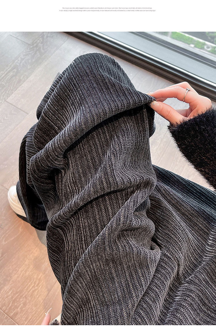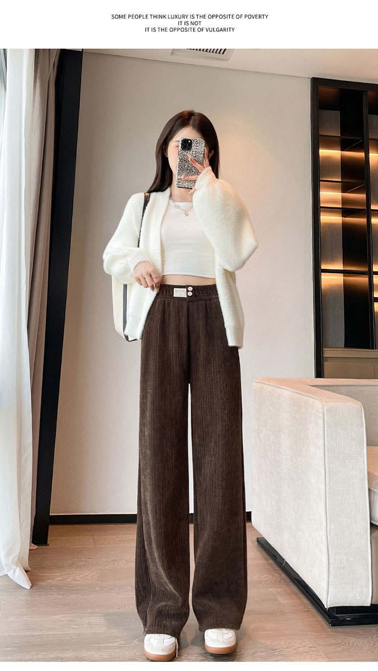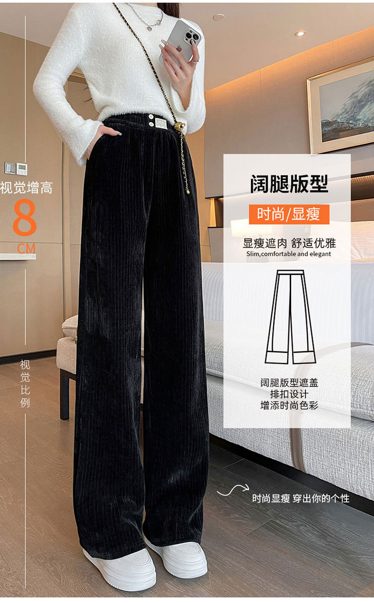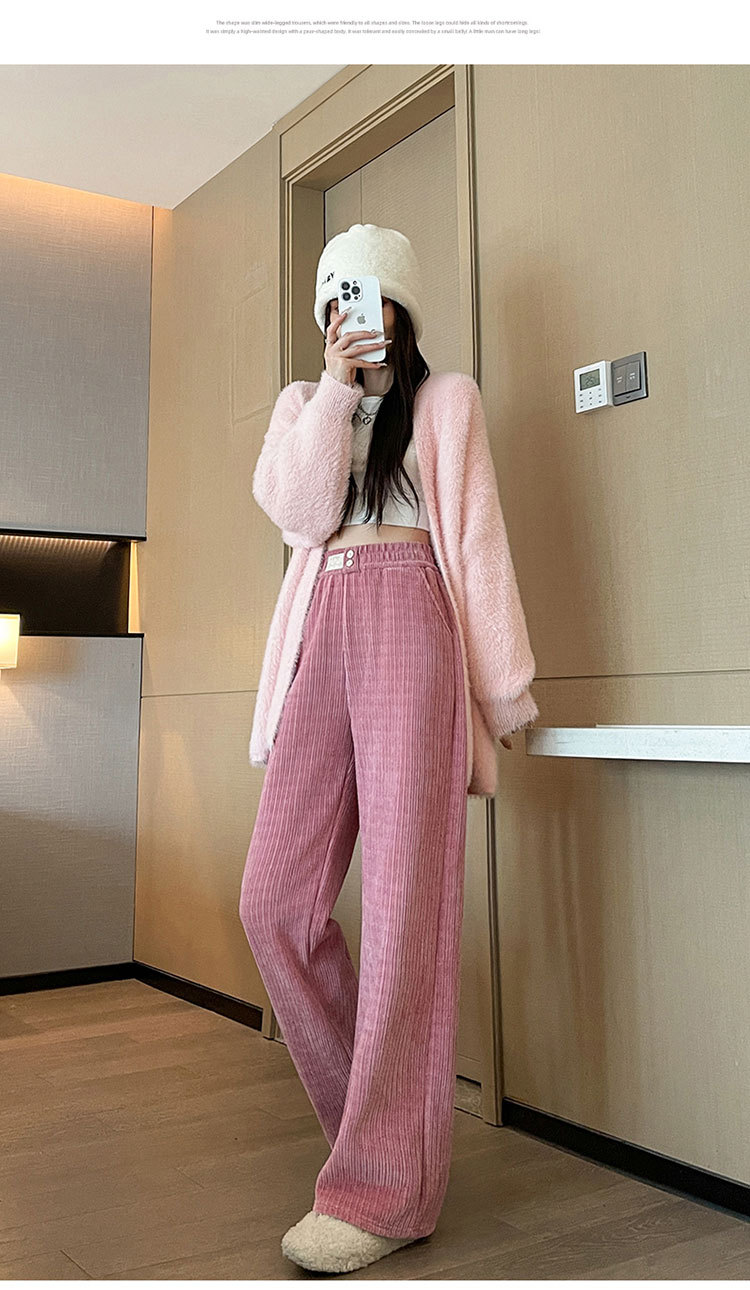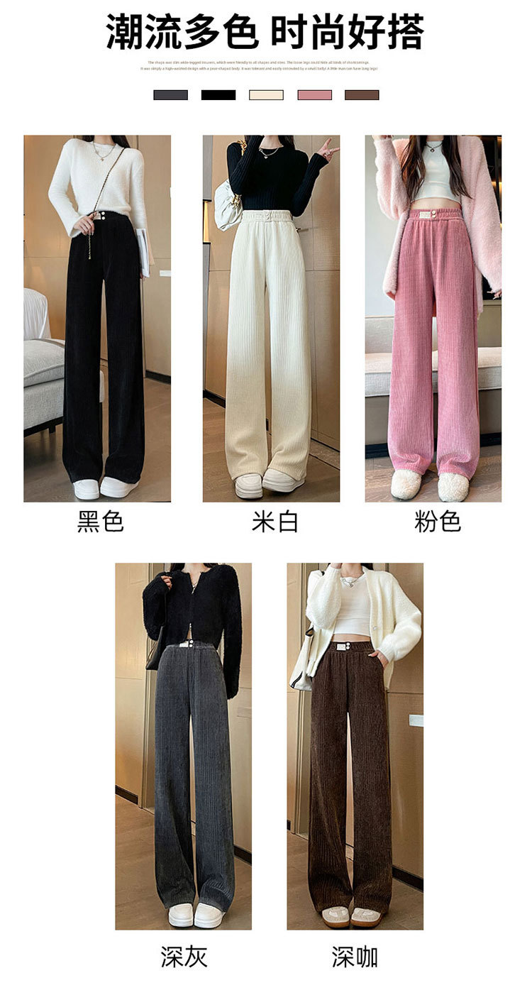 米白色雪尼尔阔腿裤子女春秋冬季2024新款直筒针织灯芯绒休闲裤
